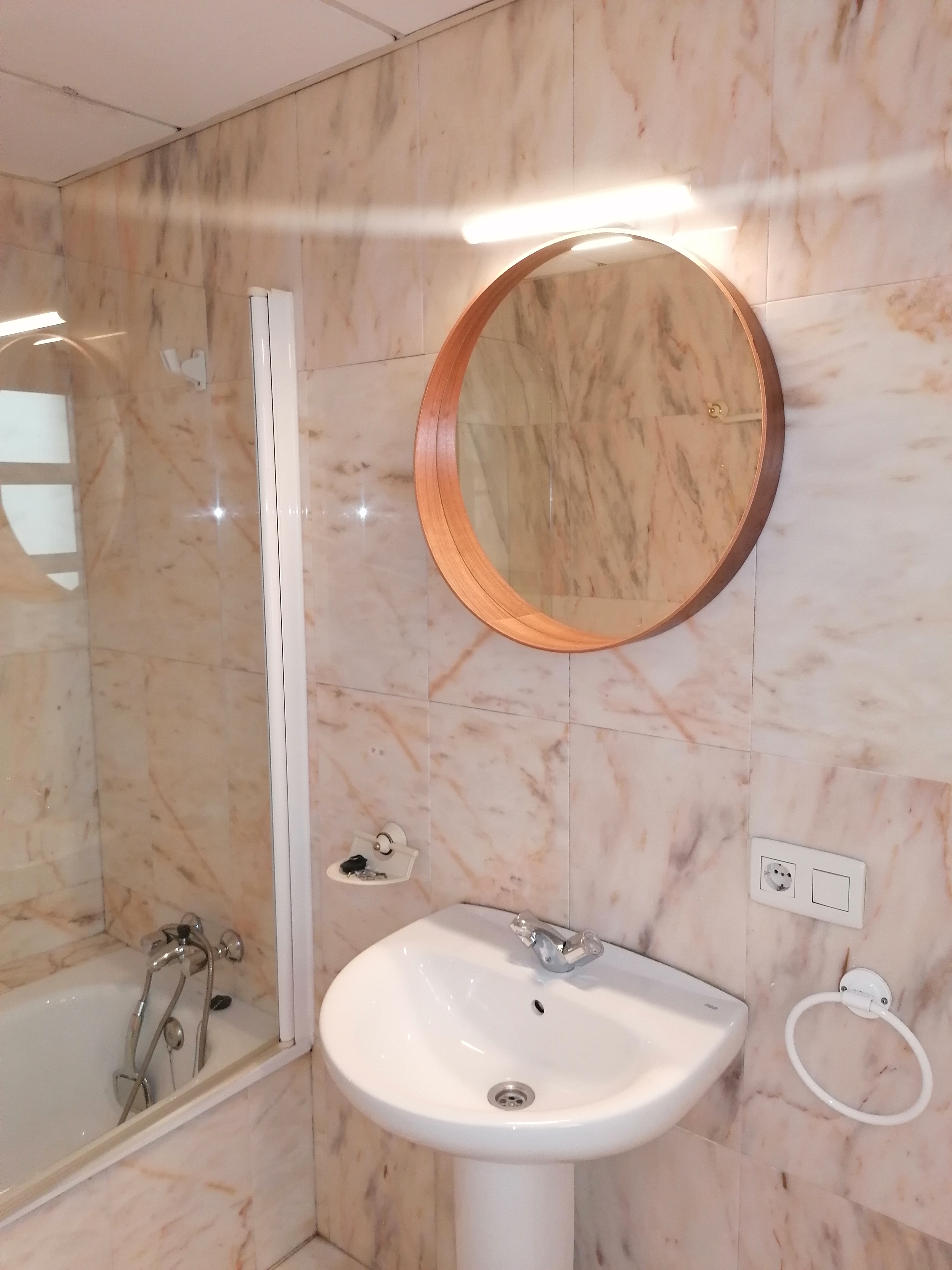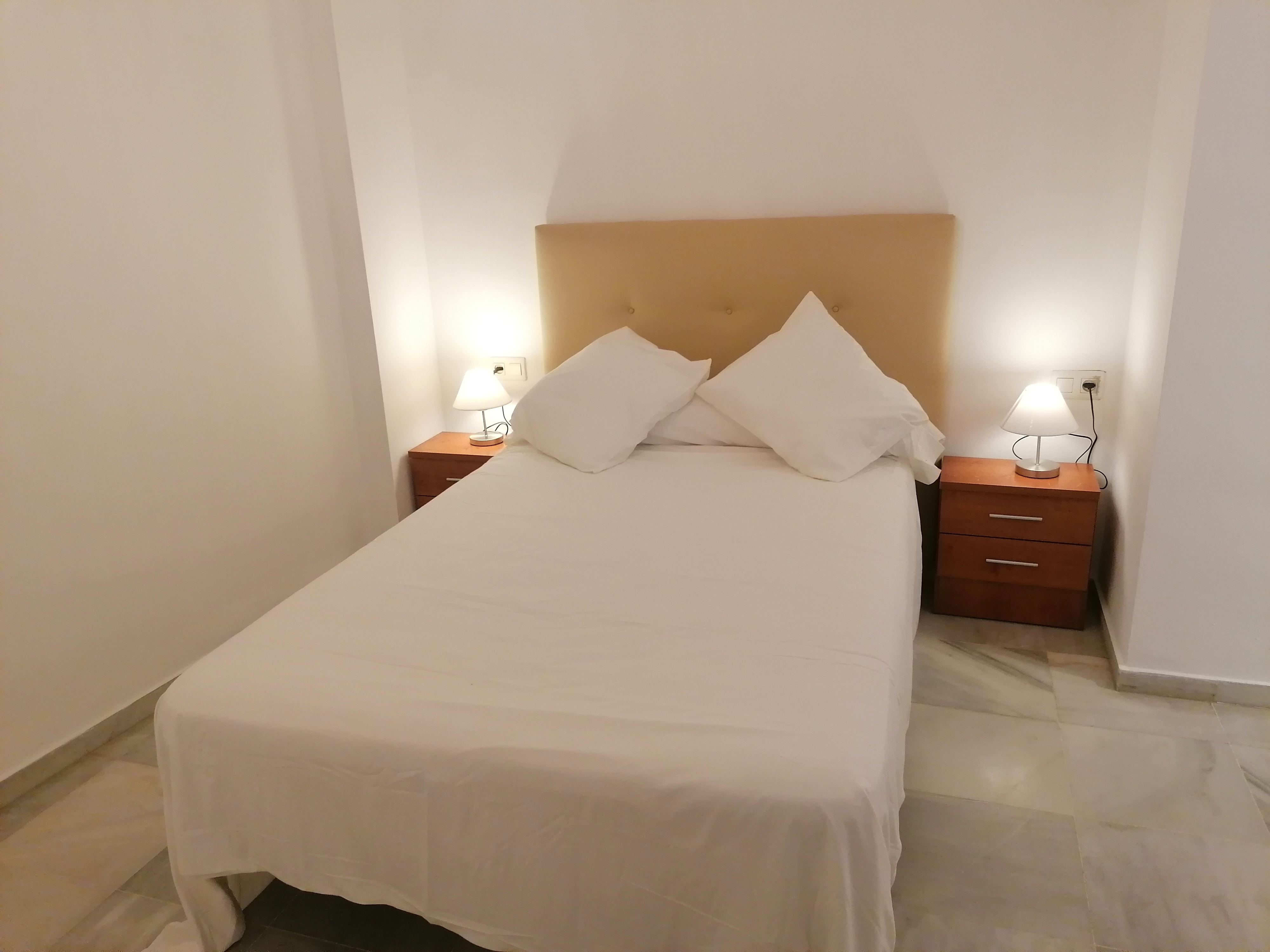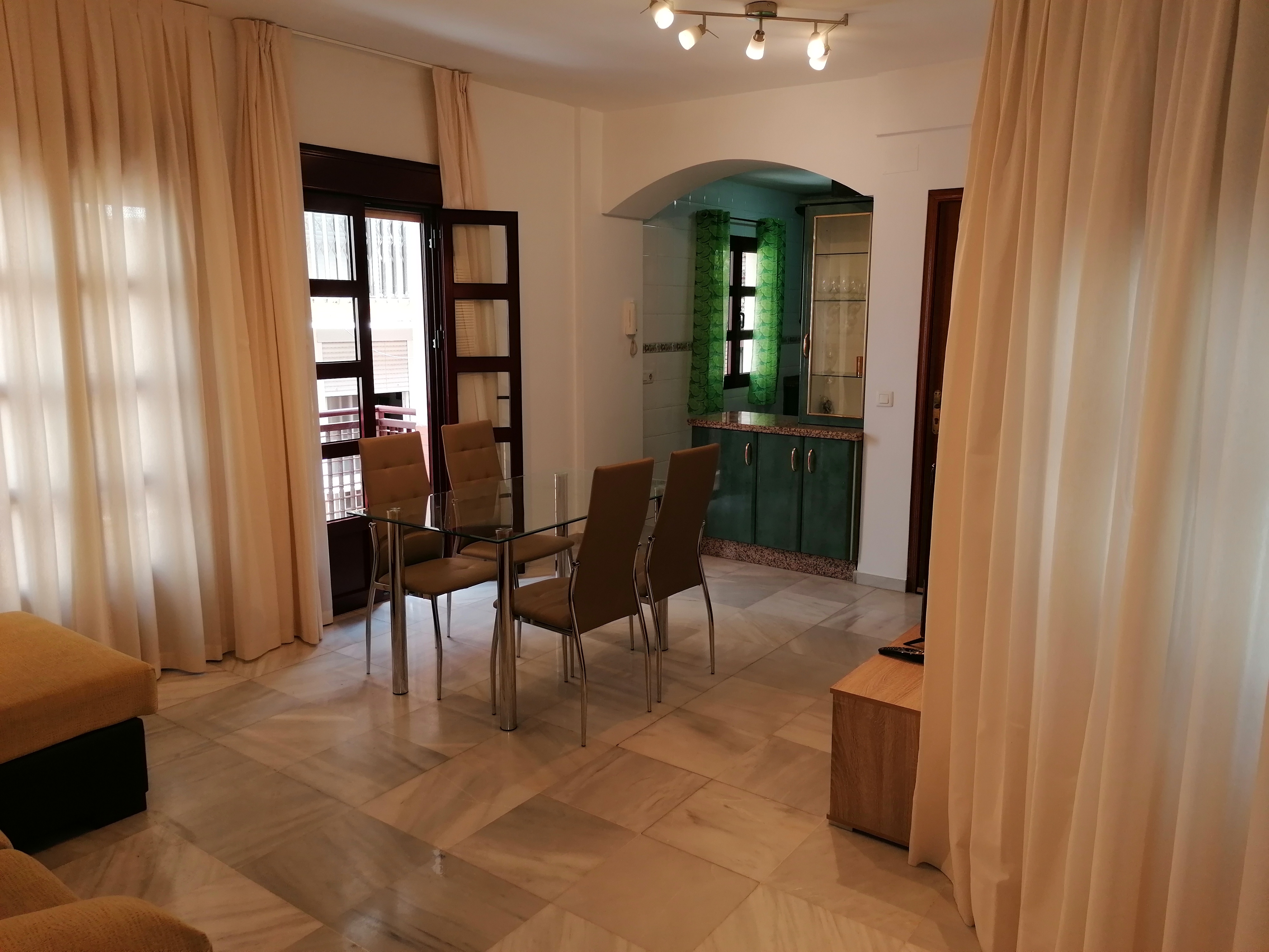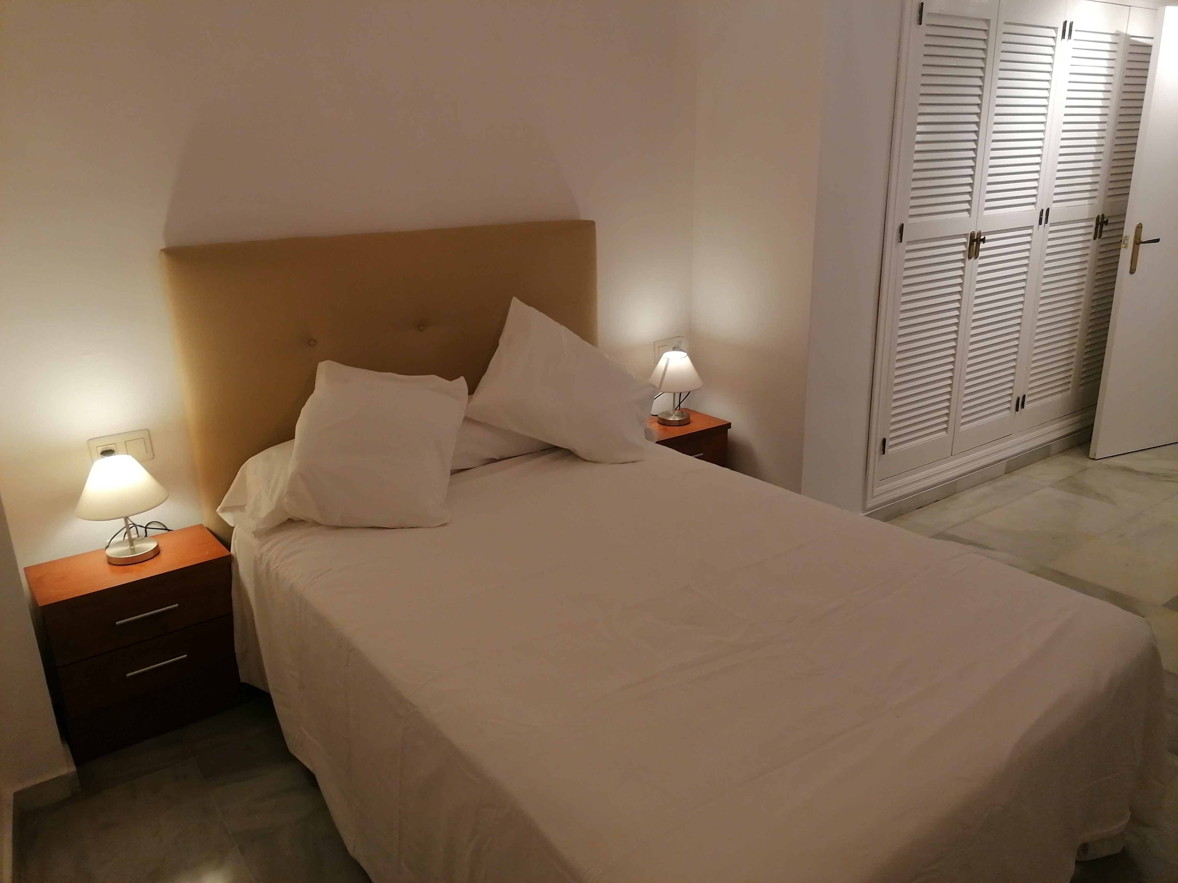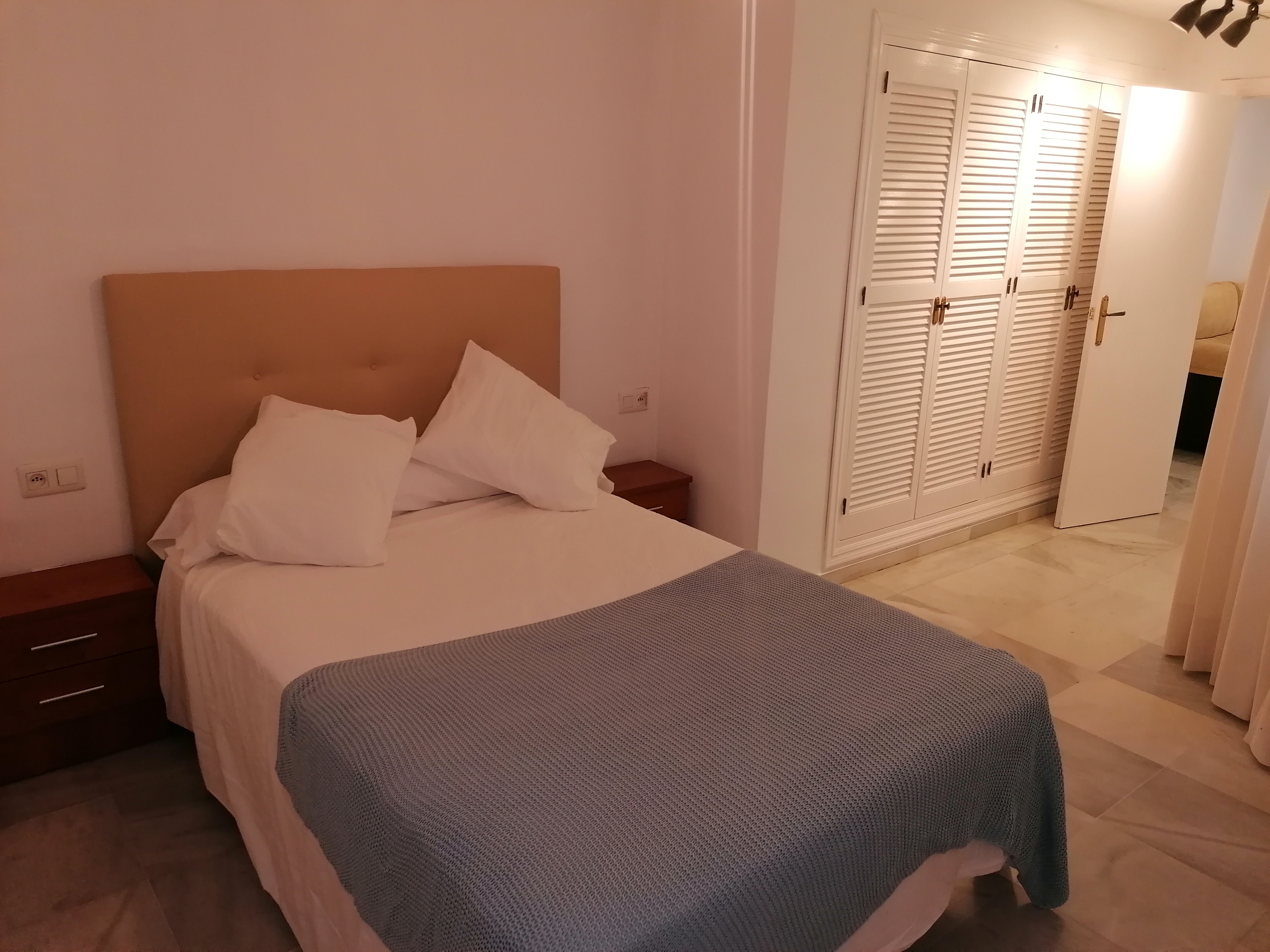Apartamento de 60 m2 de un dormitorio, amplio, bien distribuido en salón comedor exterior, cocina americana, dormitorio con armario empotrado, vitrocerámica, lavavajillas, lavadora, frigorífico, un cuarto de baño en mármol con bañera, dormitorio con armario empotrado, cama de 135 cm, aire acondicionado centralizado y termo eléctrico. Suelos de mármol y ventanas de climalit.