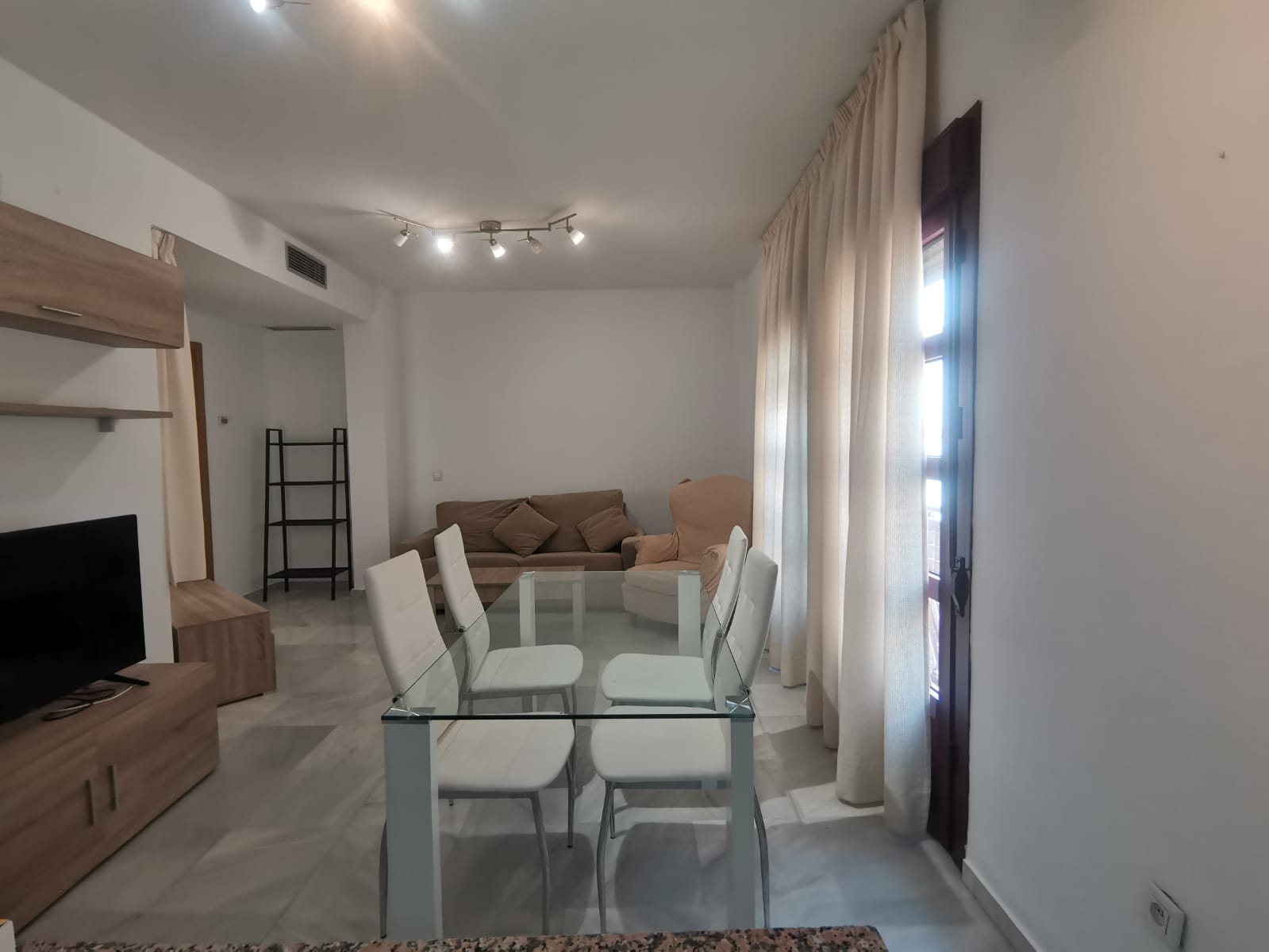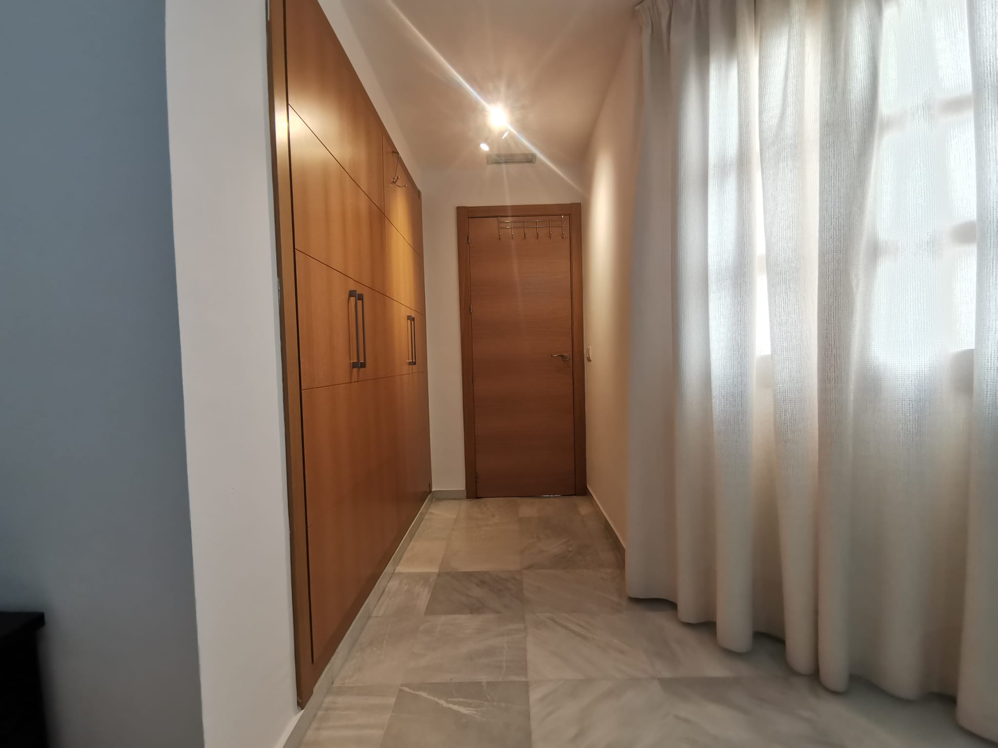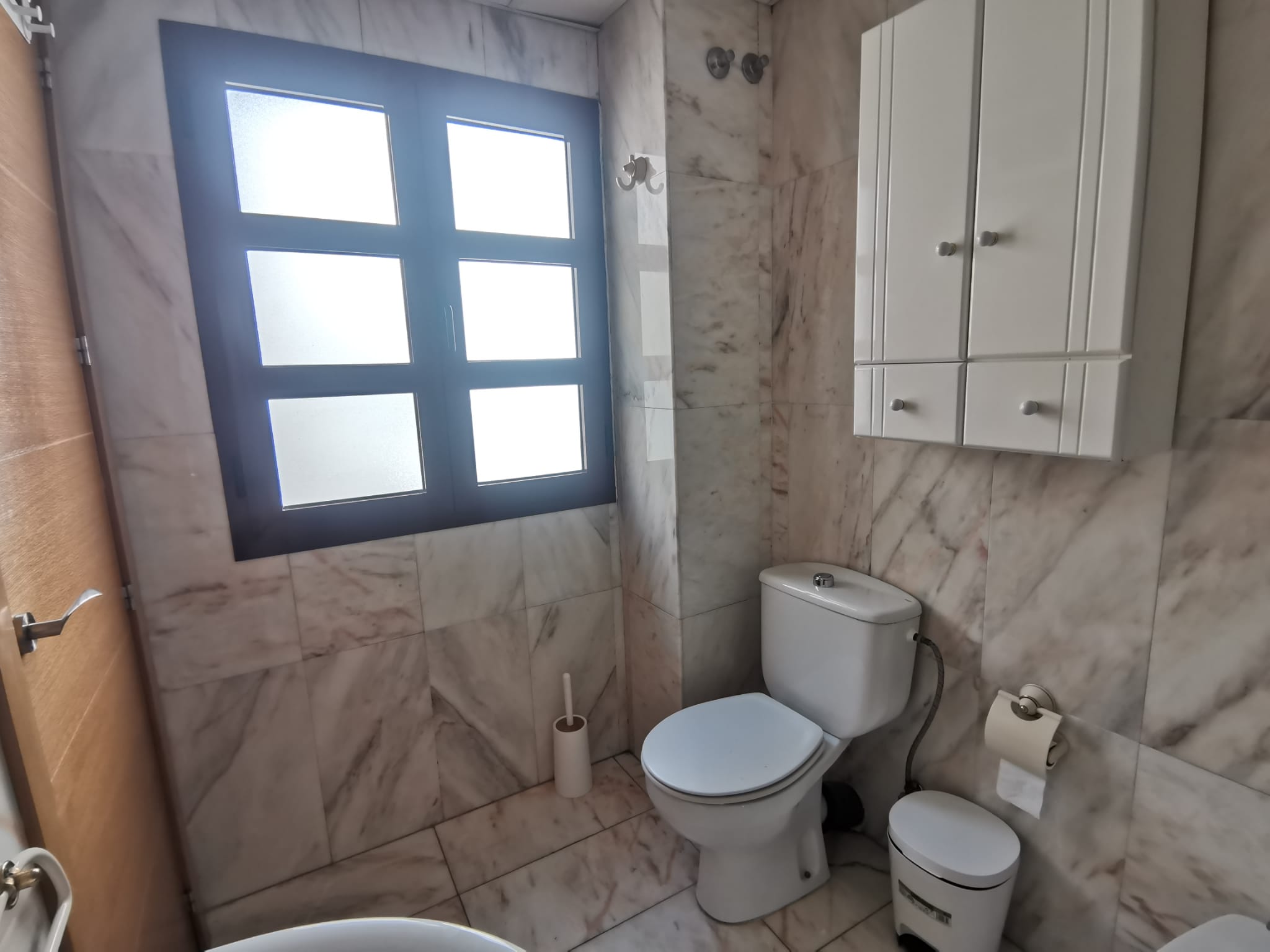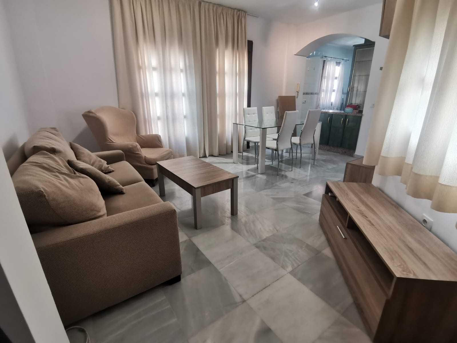 Apartamento de 60 m2 de un dormitorio, amplio, bien distribuido en salón comedor exterior, cocina independiente, dormitorio con armario empotrado, vitrocerámica, lavavajillas, lavadora, frigorífico, un cuarto de baño en mármol con bañera, dormitorio con armario empotrado, cama de 135 cm, aire acondicionado centralizado y termo eléctrico. Carpintería de madera en color cerezo, suelo de mármol y ventanas de climalit.
