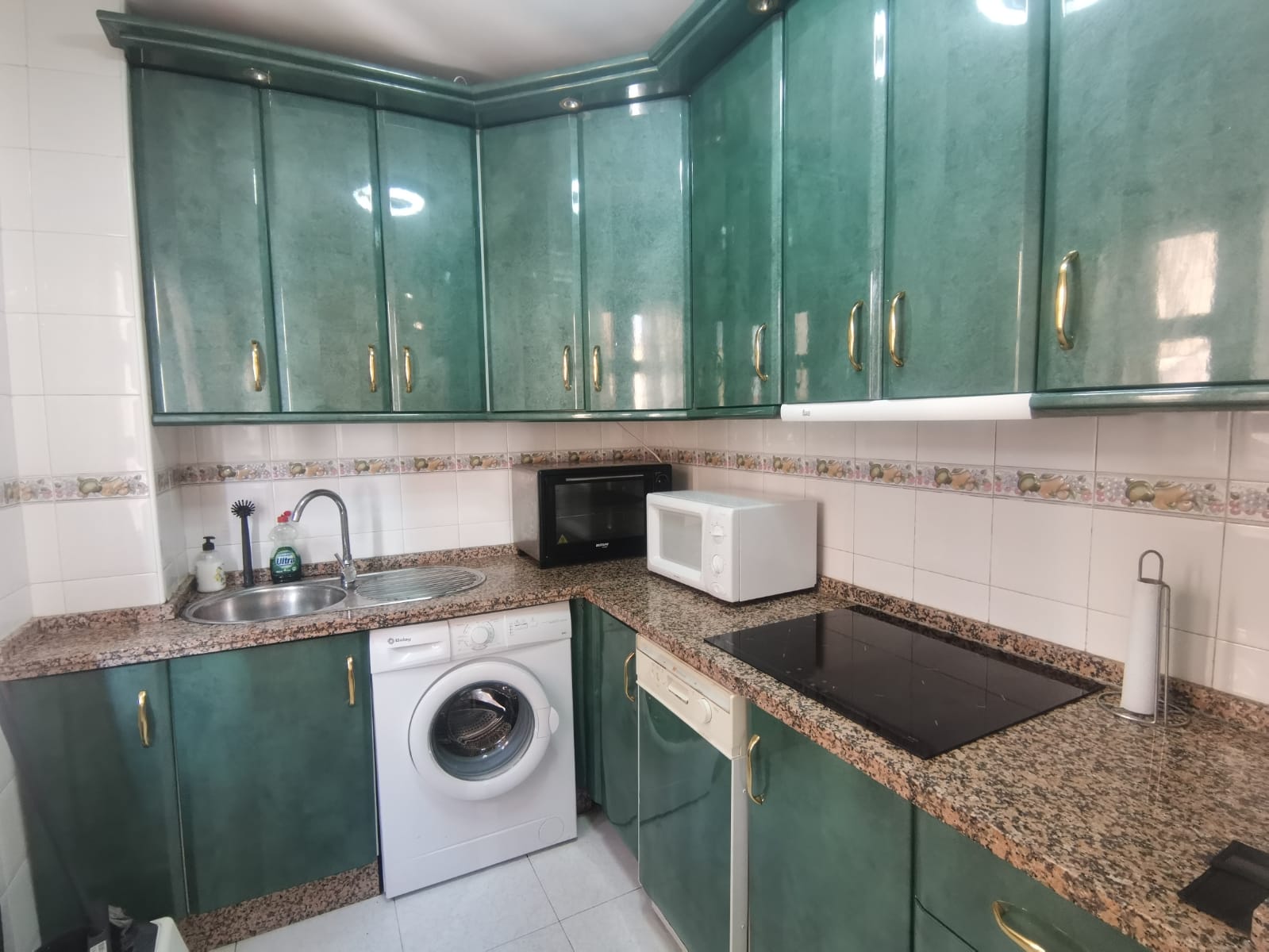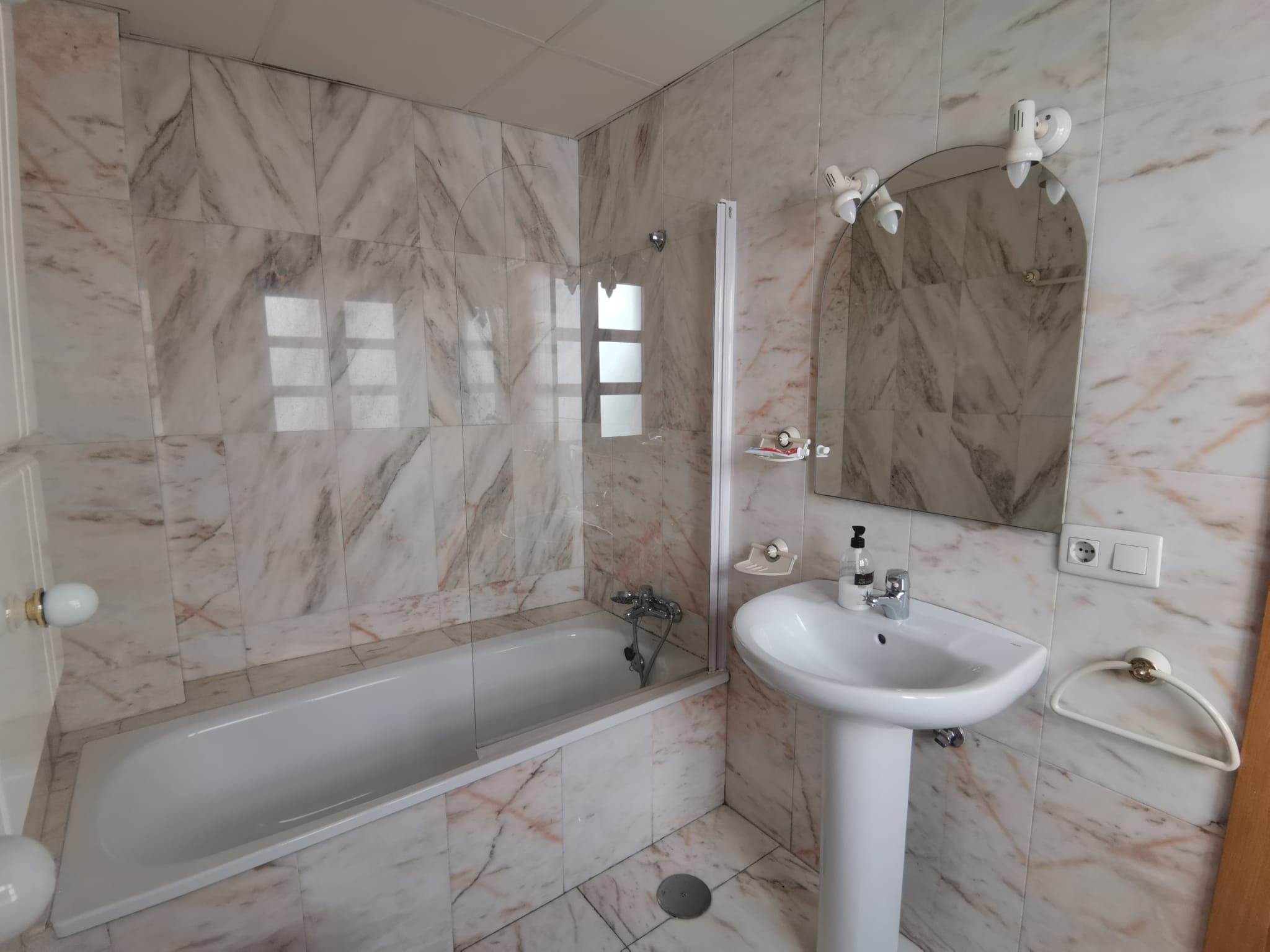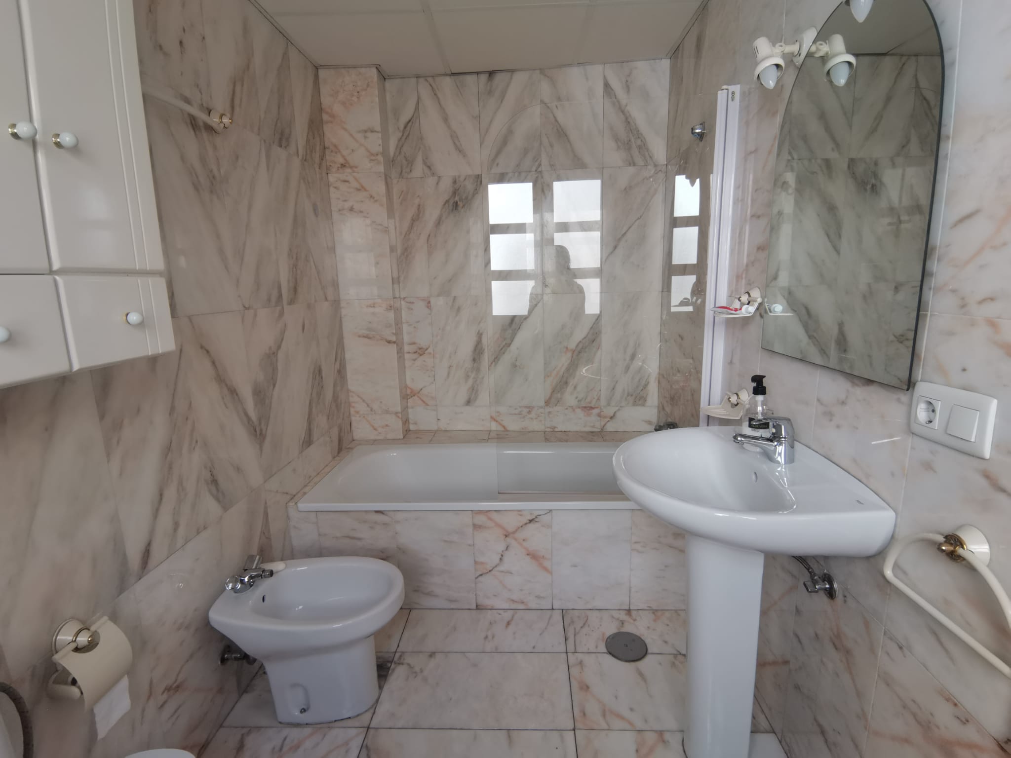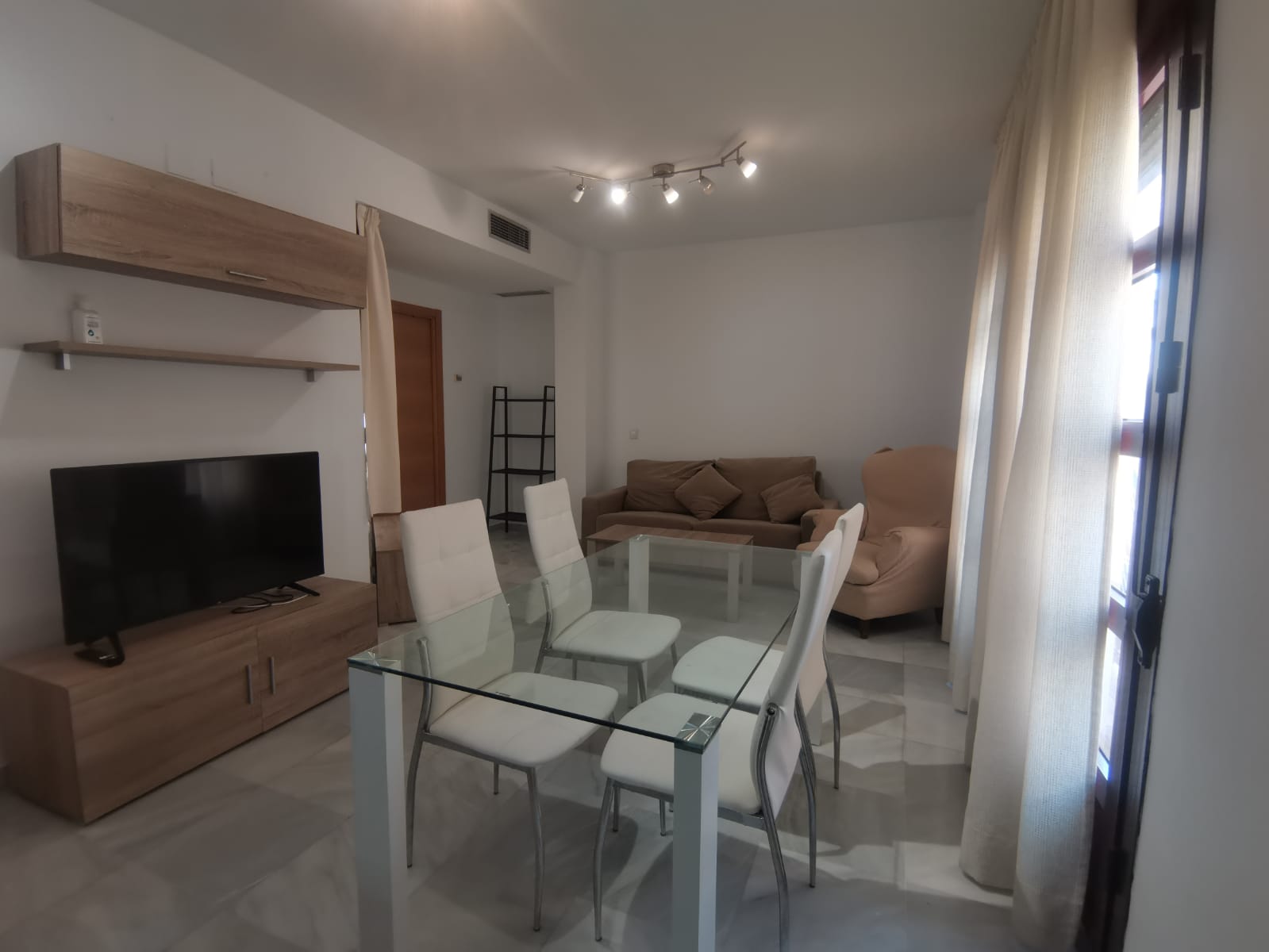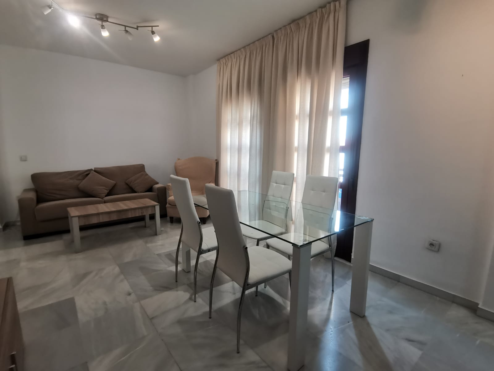 Apartamento de 60 m2 de un dormitorio, amplio, bien distribuido en salón comedor exterior, cocina independiente, dormitorio con armario empotrado, vitrocerámica, lavavajillas, lavadora, frigorífico, un cuarto de baño en mármol con bañera, dormitorio con armario empotrado, cama de 135 cm, aire acondicionado centralizado y termo eléctrico. Carpintería de madera en color cerezo, suelo de mármol y ventanas de climalit.
