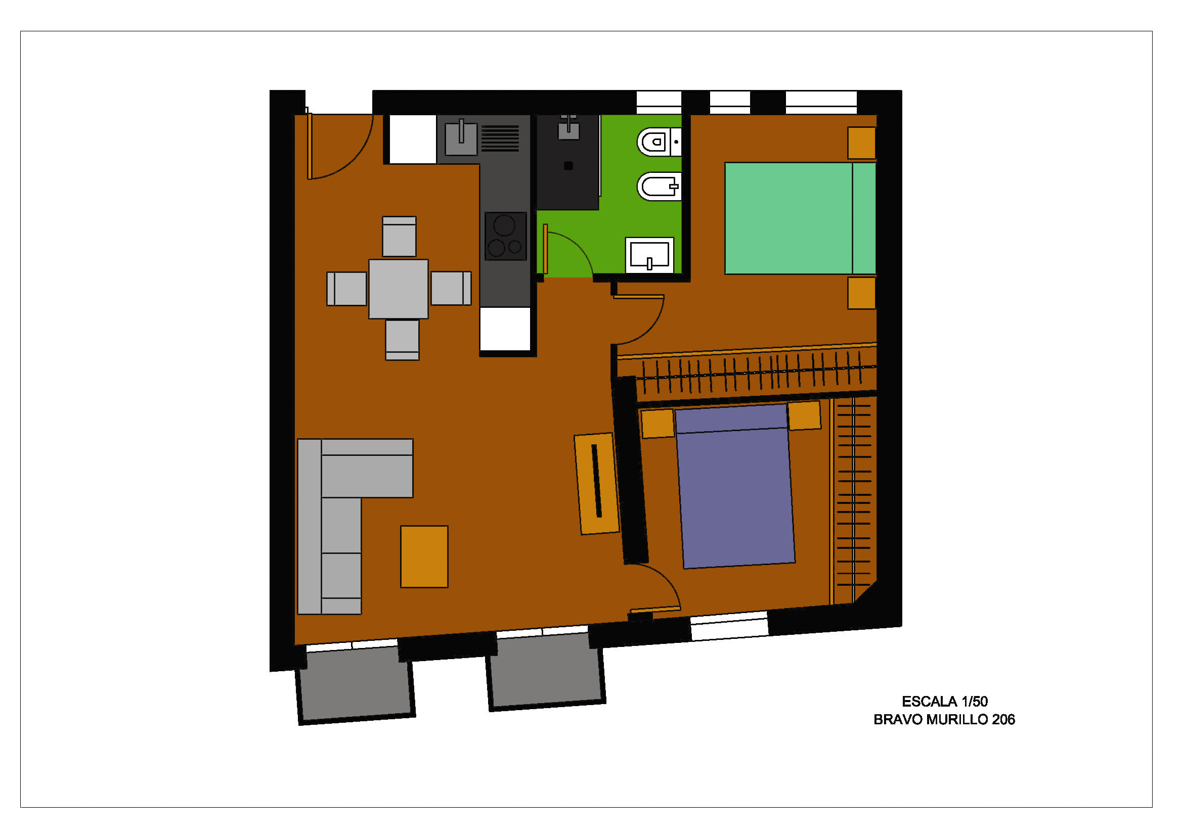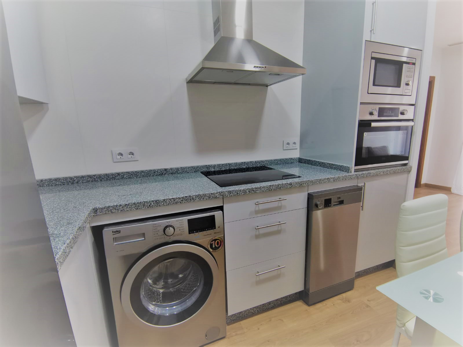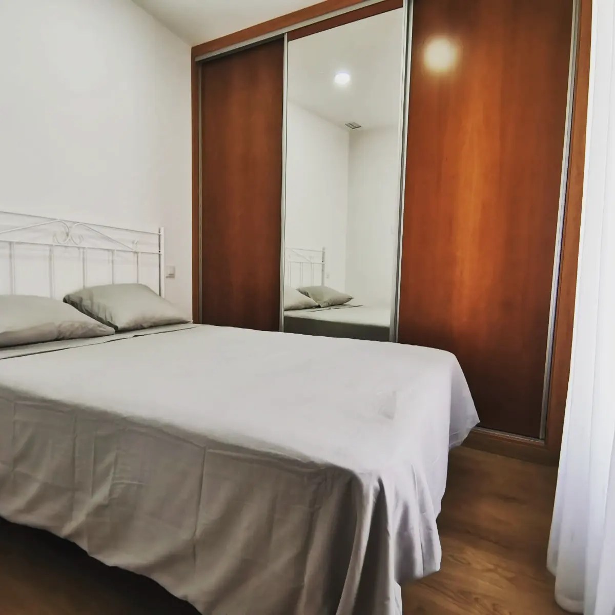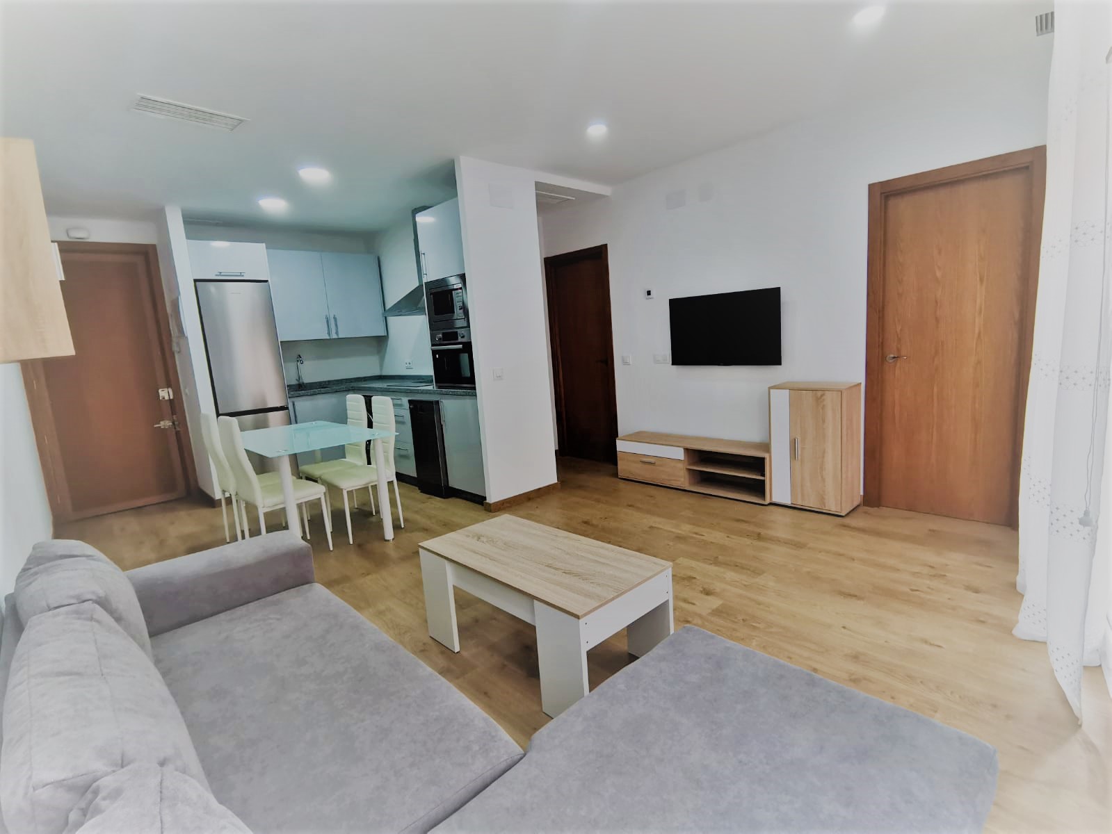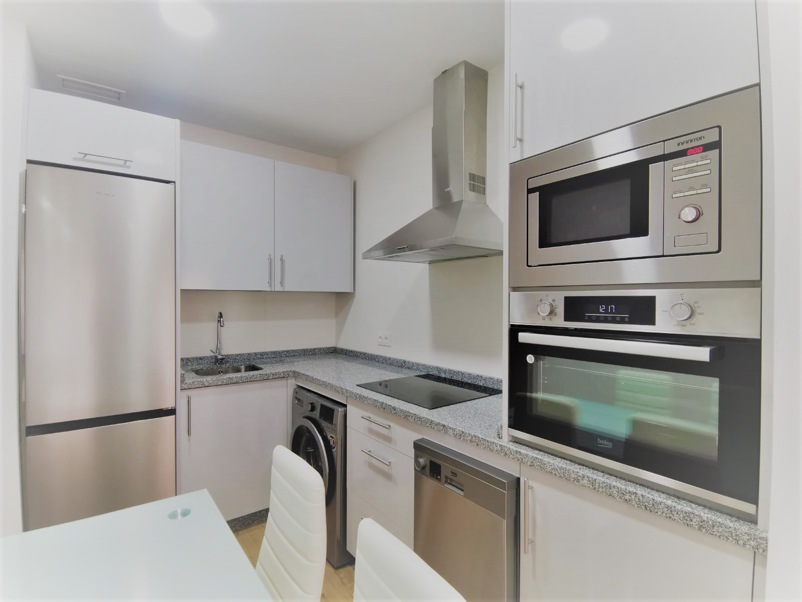 Piso de dos dormitorios, suelos de tarima y un baño. Armarios empotrados en dormitorios, cocina completamente equipada (Frigorífico, lavadora, lavavajillas, vitrocerámica, horno, microondas, campana extractora de humos), smartTV y aire acondicionado centralizado.
