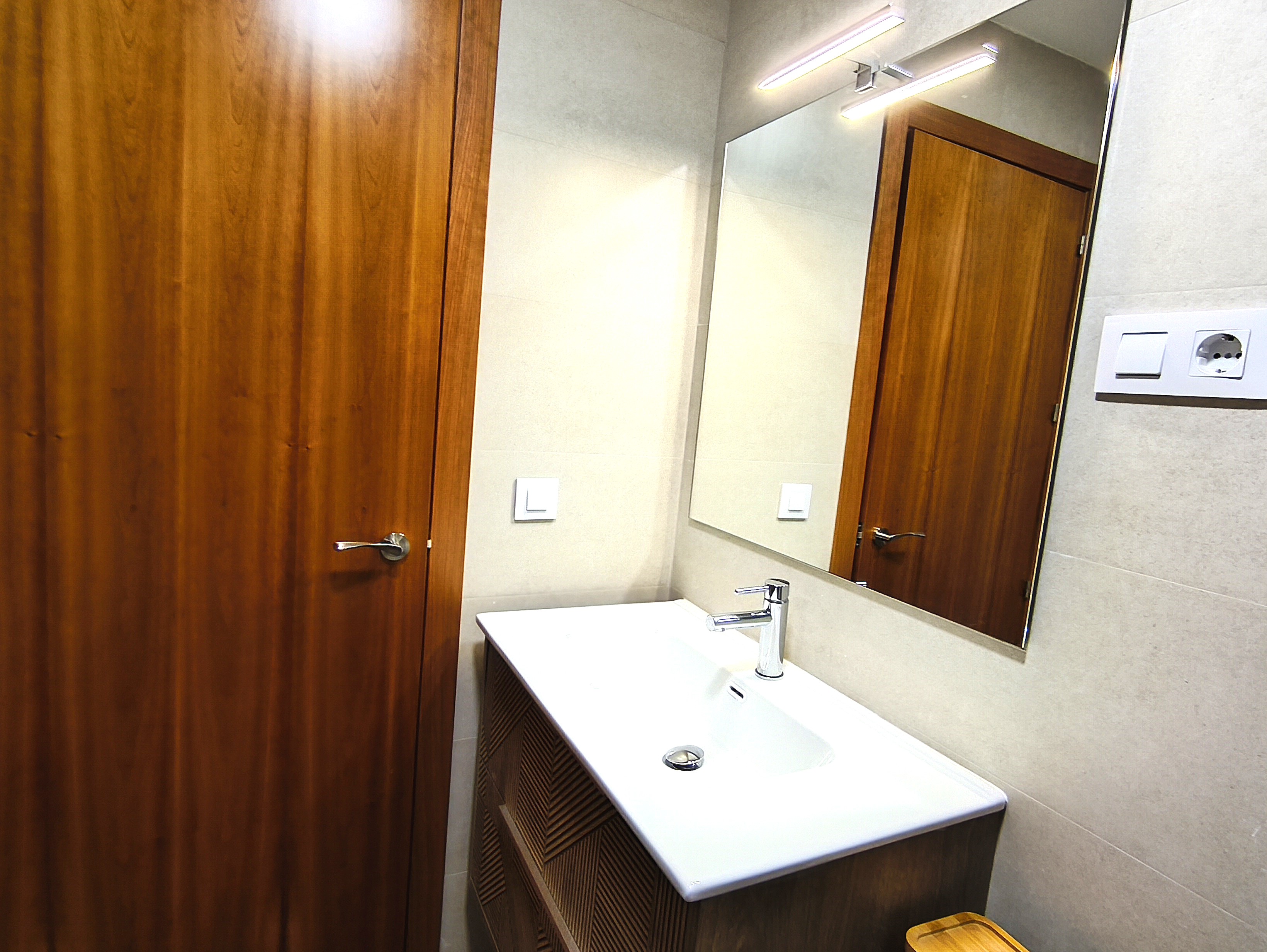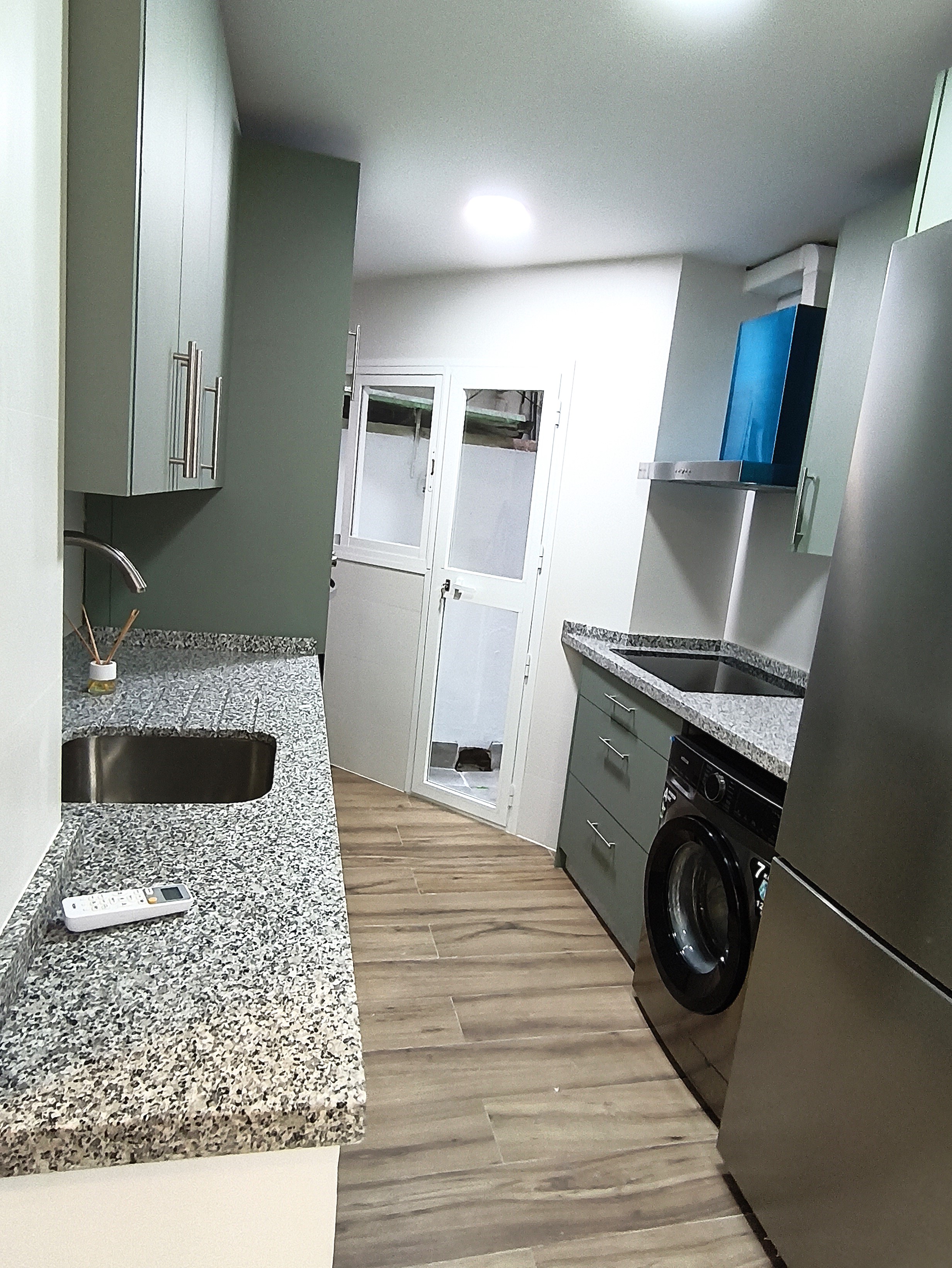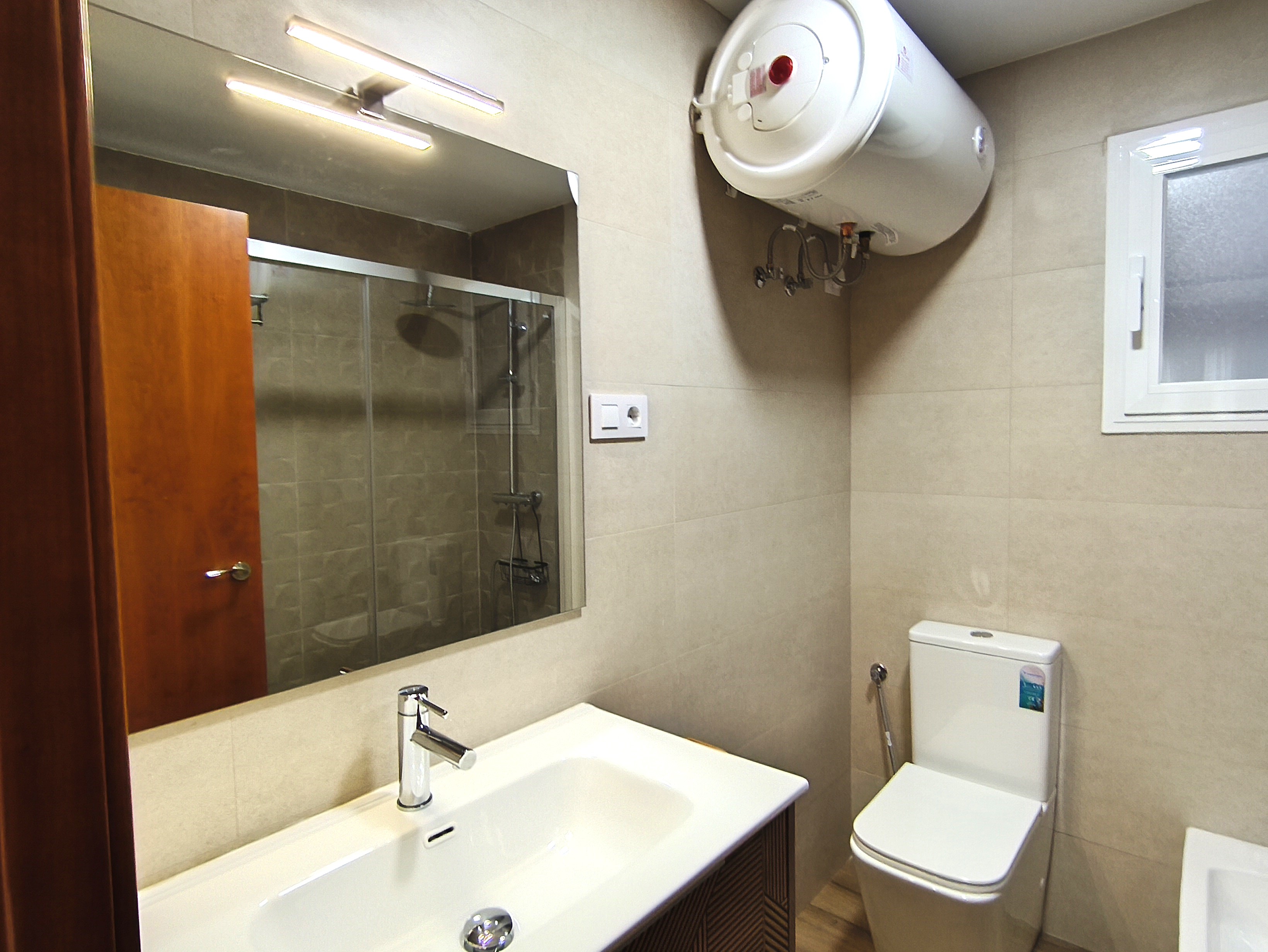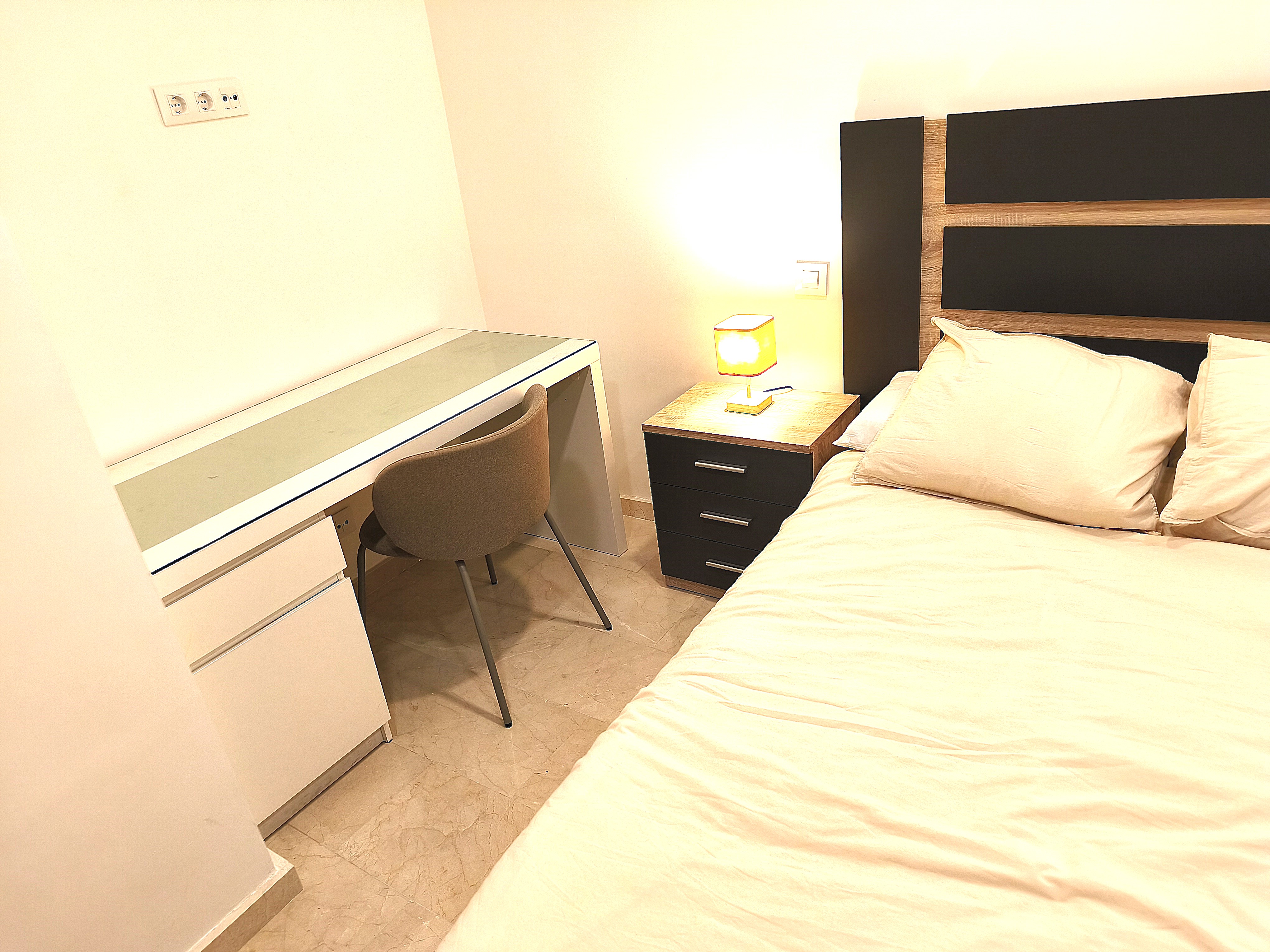 Piso de dos dormitorios y 65 m2 con calidades de primera, suelos de mármol crema marfil, cocina americana y salón, baño, dos amplios dormitorios con armarios empotrados, patio de uso privado y parking en superficie.