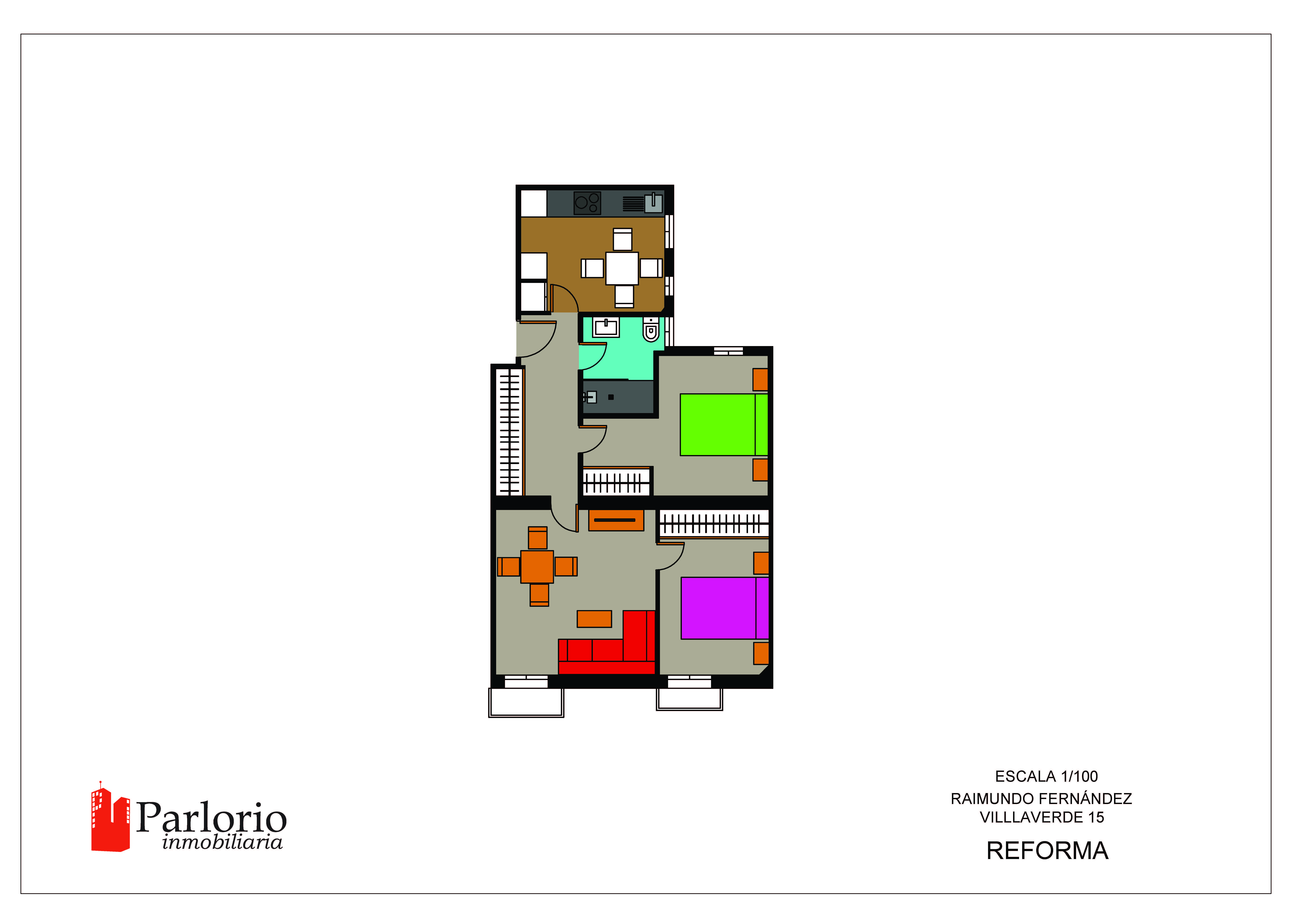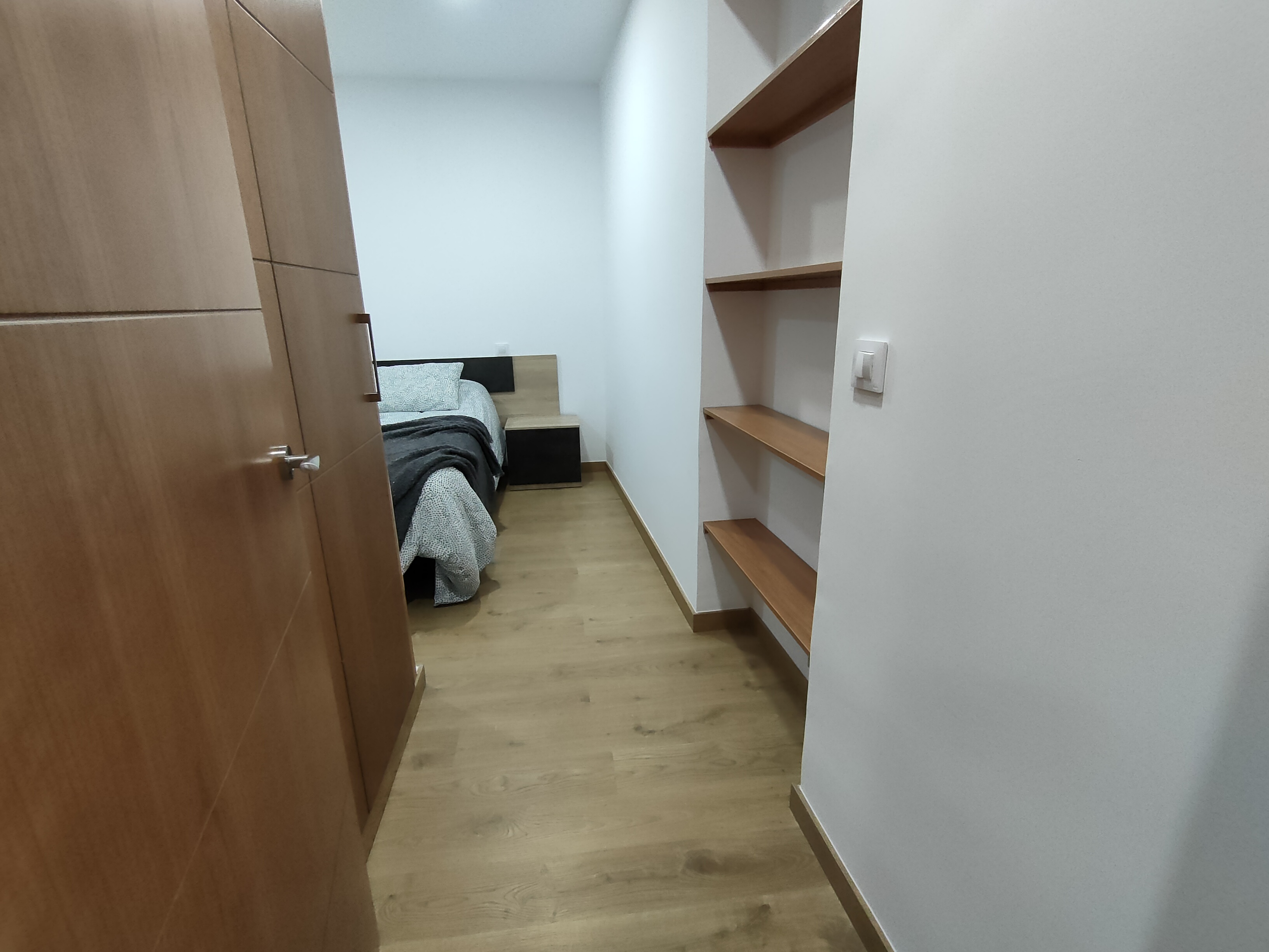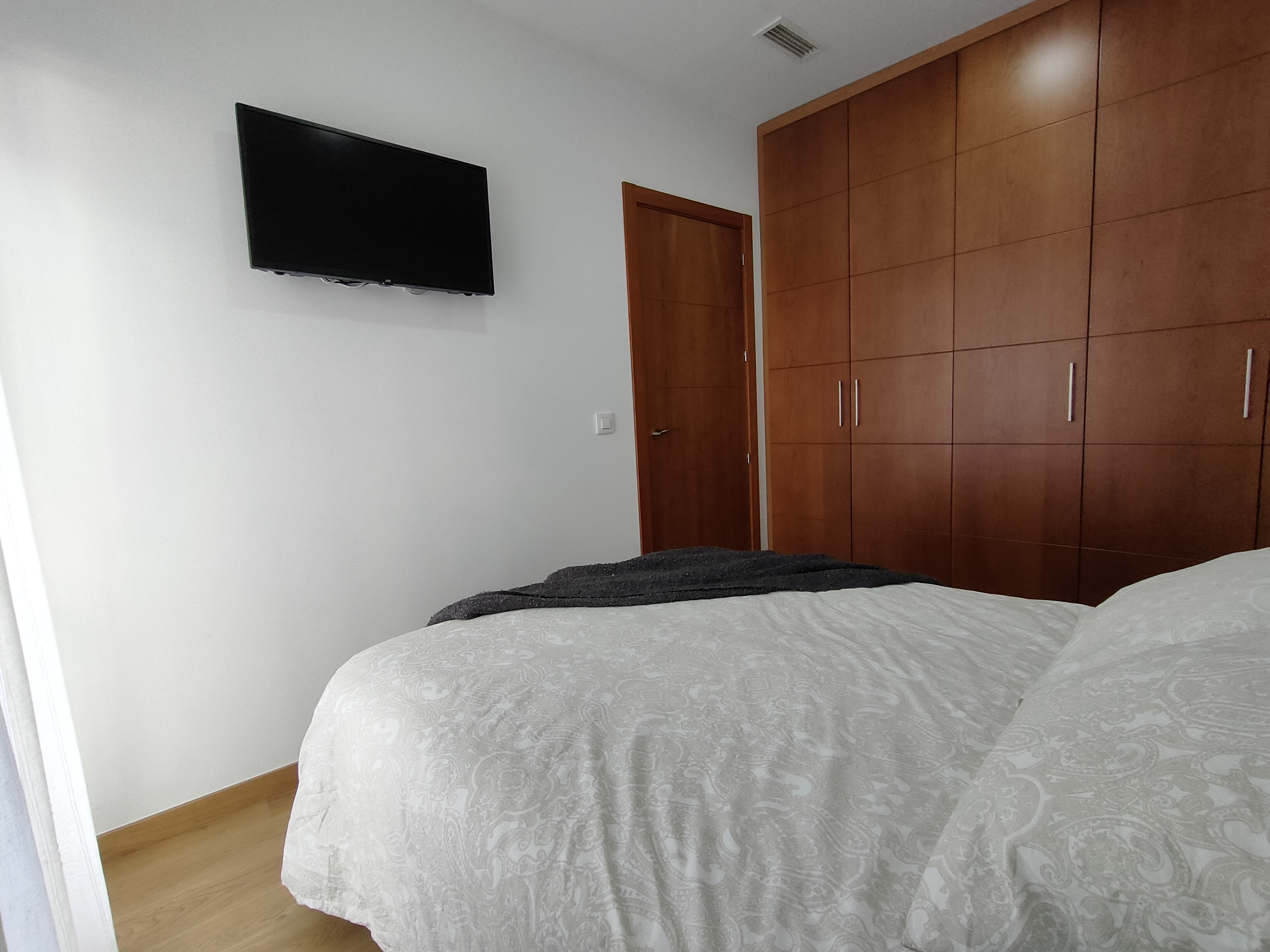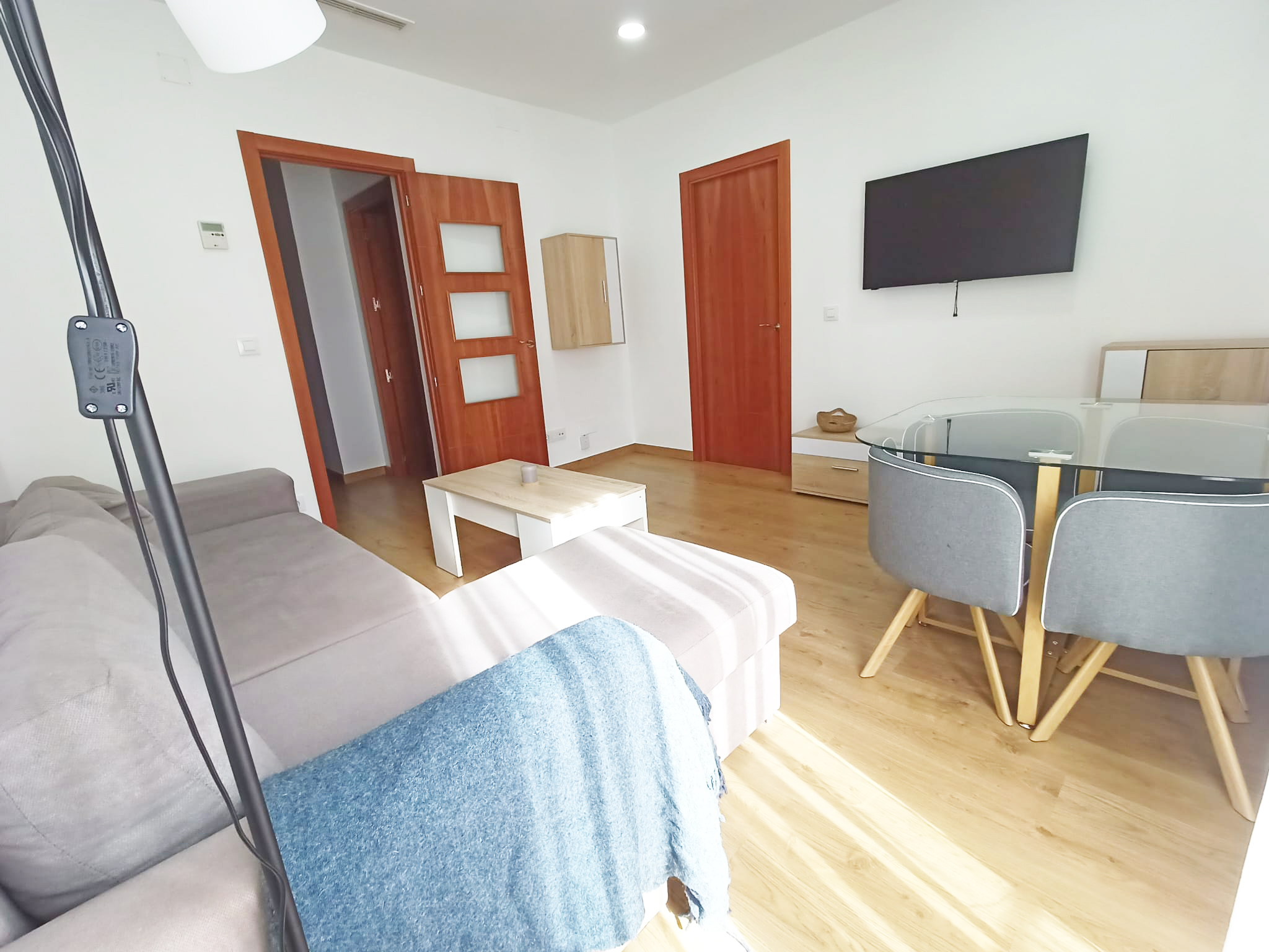 Piso de dos dormitorios y 74 m2, suelos de tarima y un baño.
