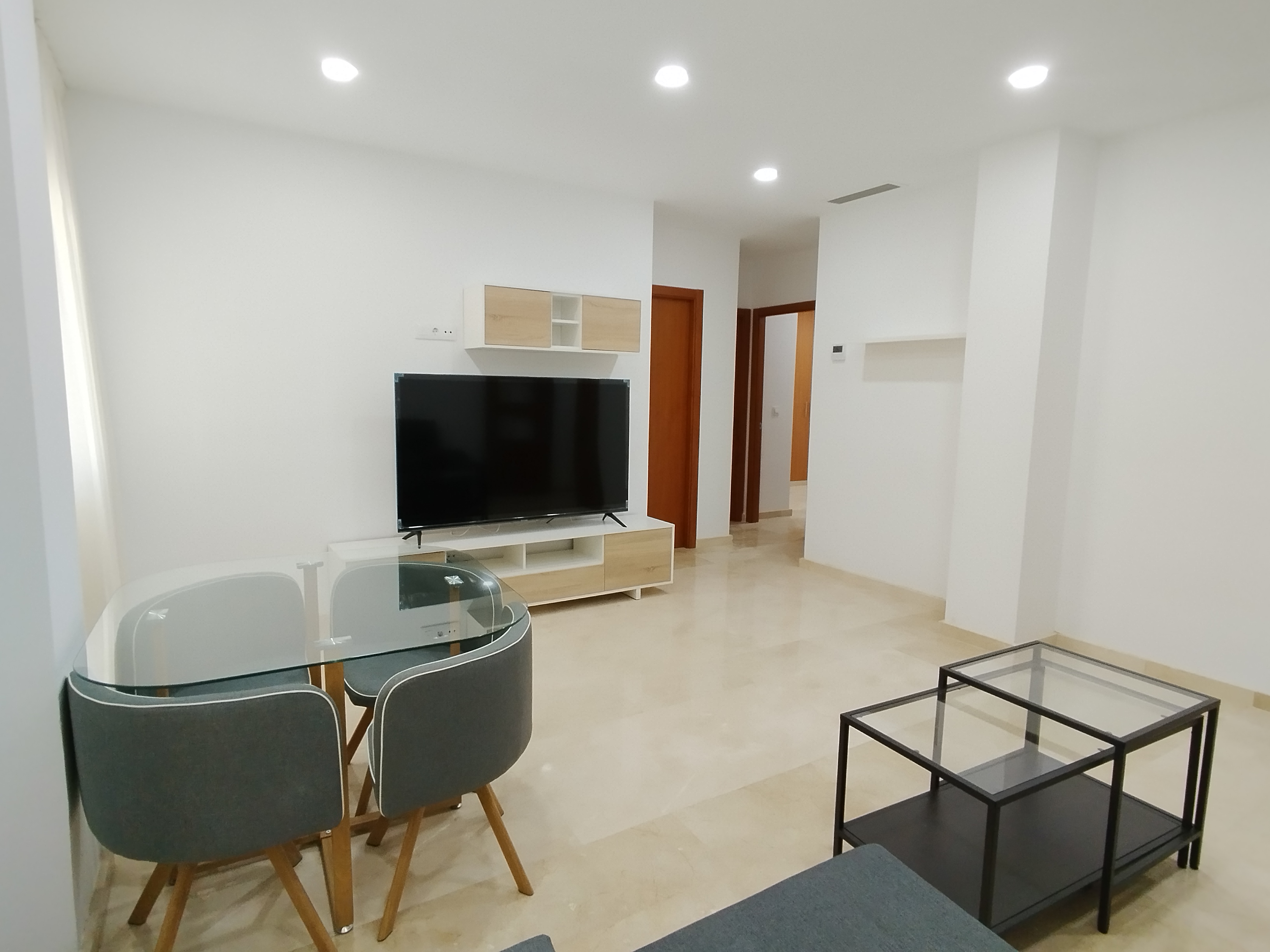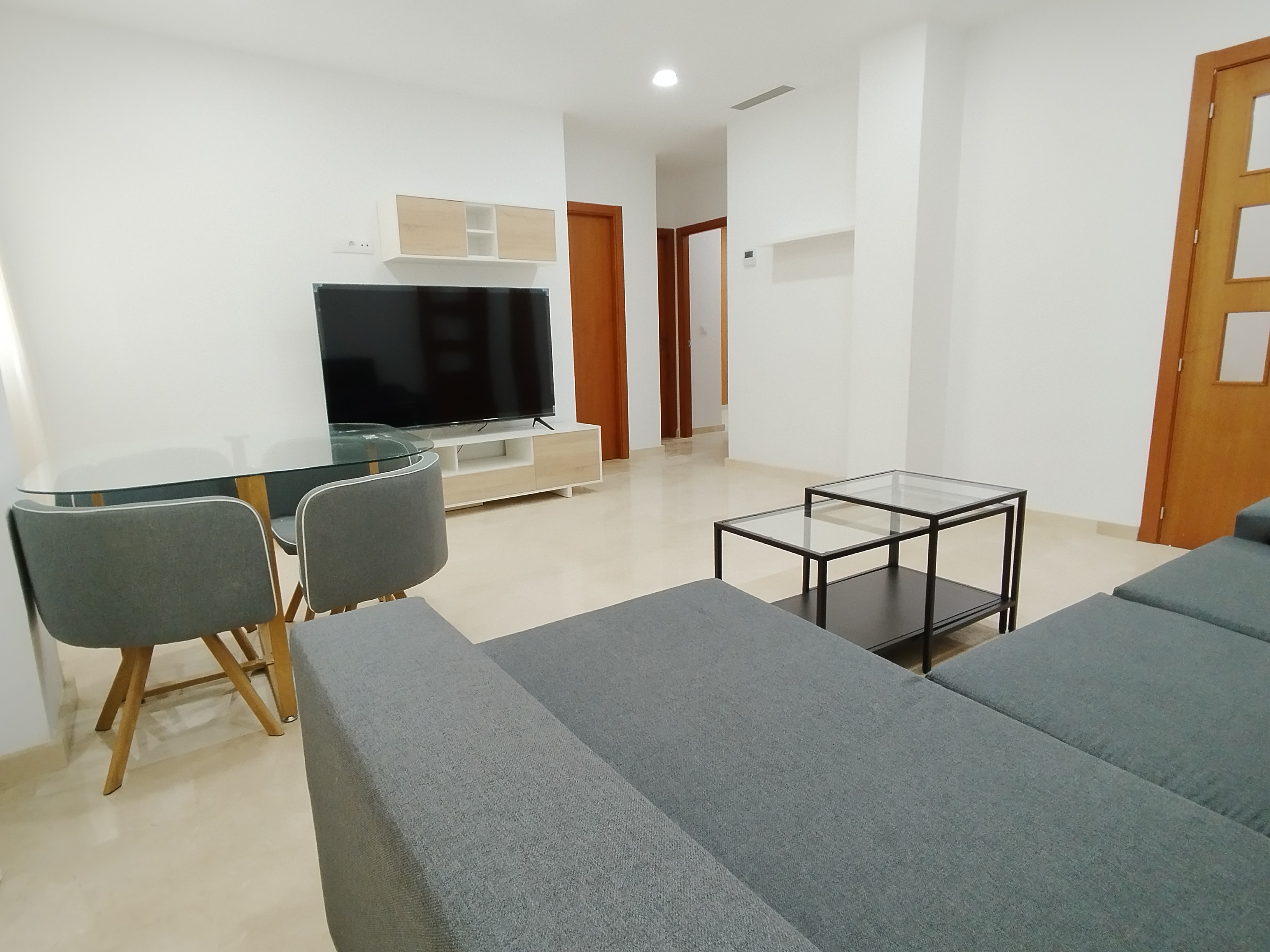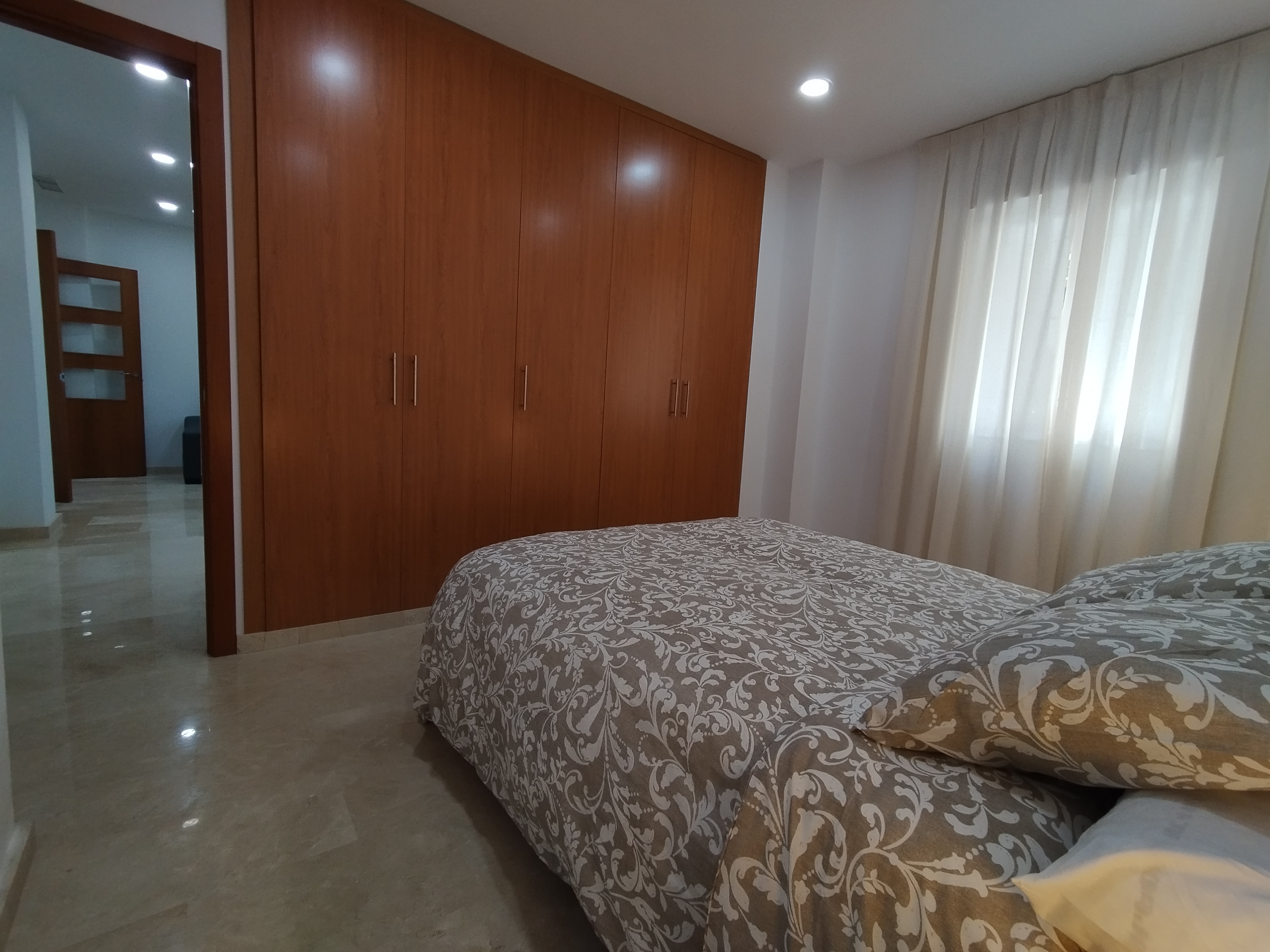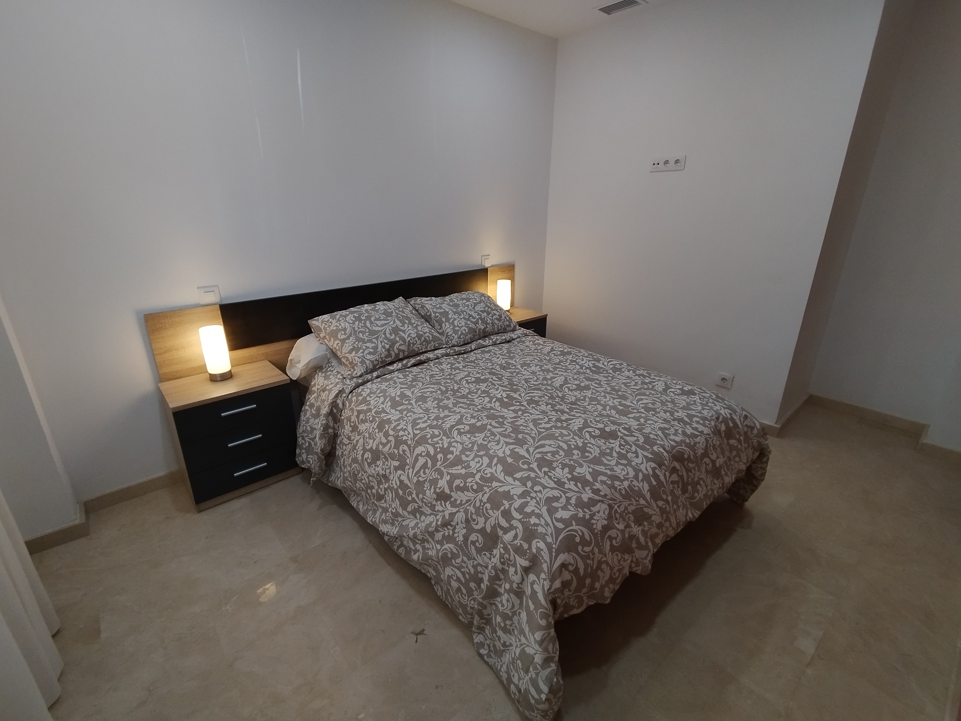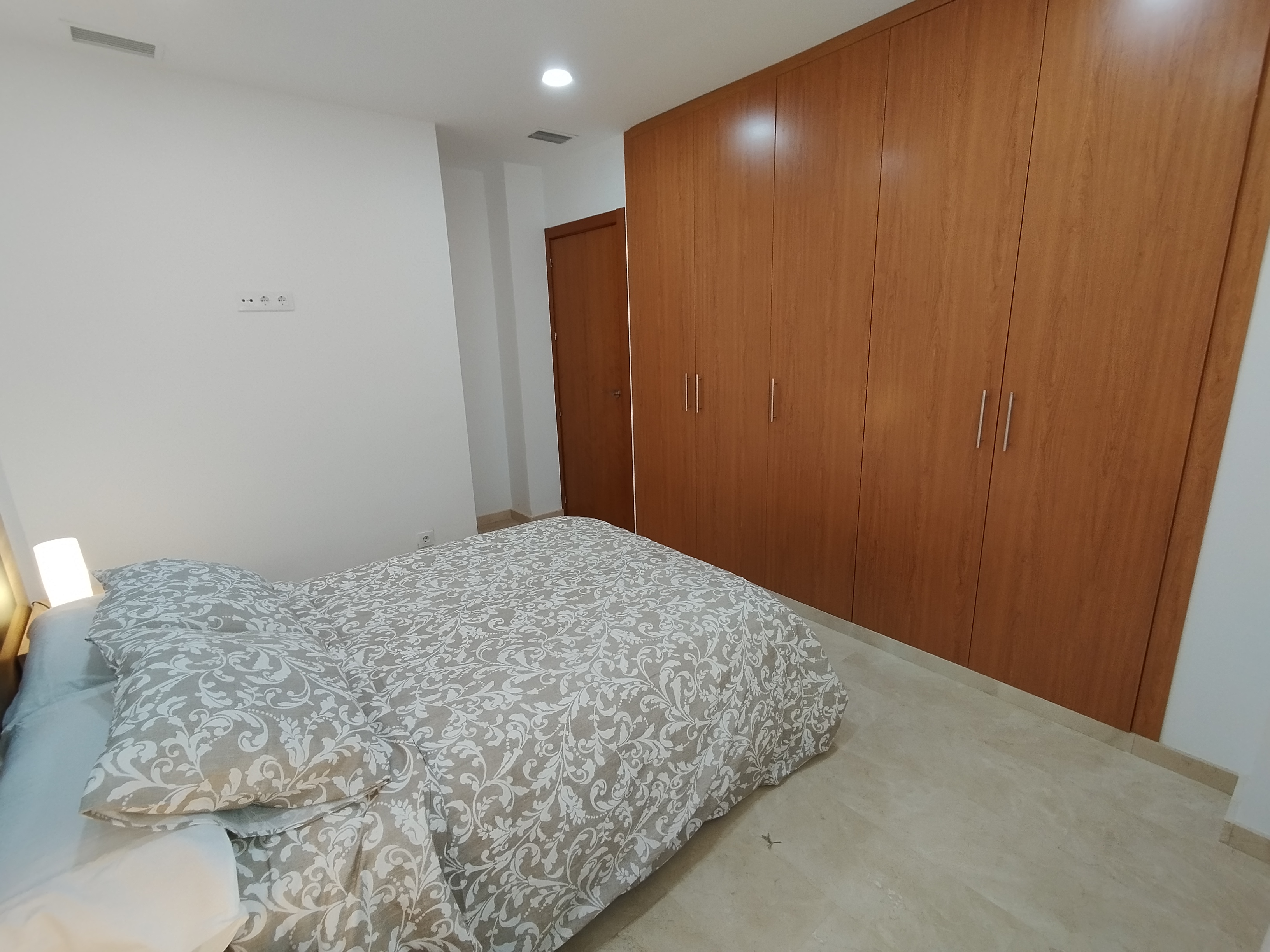 Apartamento de 75 m2 de dos dormitorio, amplio, bien distribuido en salón comedor, amplia cocina independiente, dormitorio con armario empotrado, vitrocerámica, lavavajillas, lavadora, frigorífico, un cuarto de baño, dormitorio con armario empotrado, patio, cama de 135 cm, aire acondicionado centralizado y termo eléctrico. Carpintería de madera en color cerezo, suelo de mármol y ventanas de climalit.