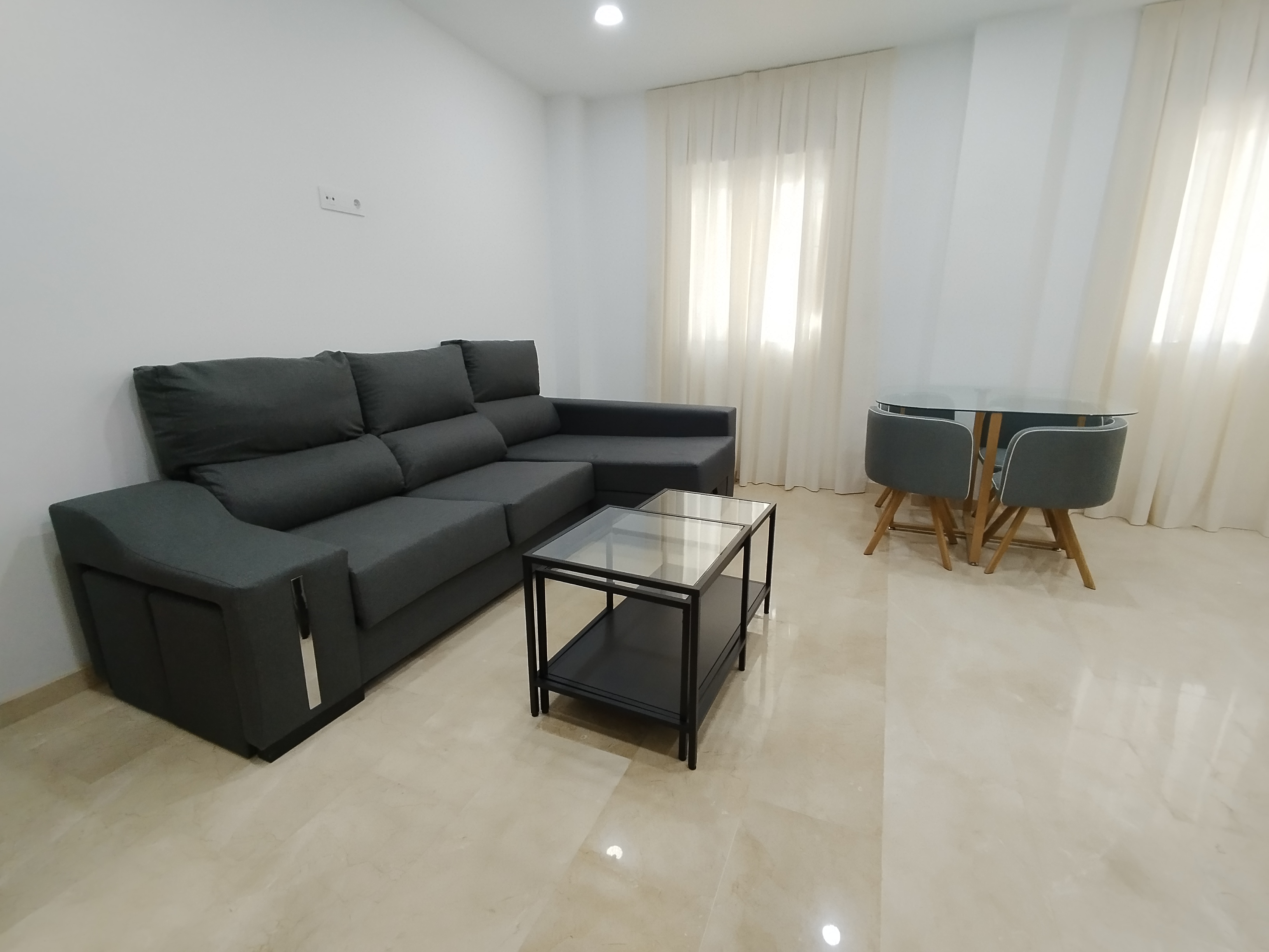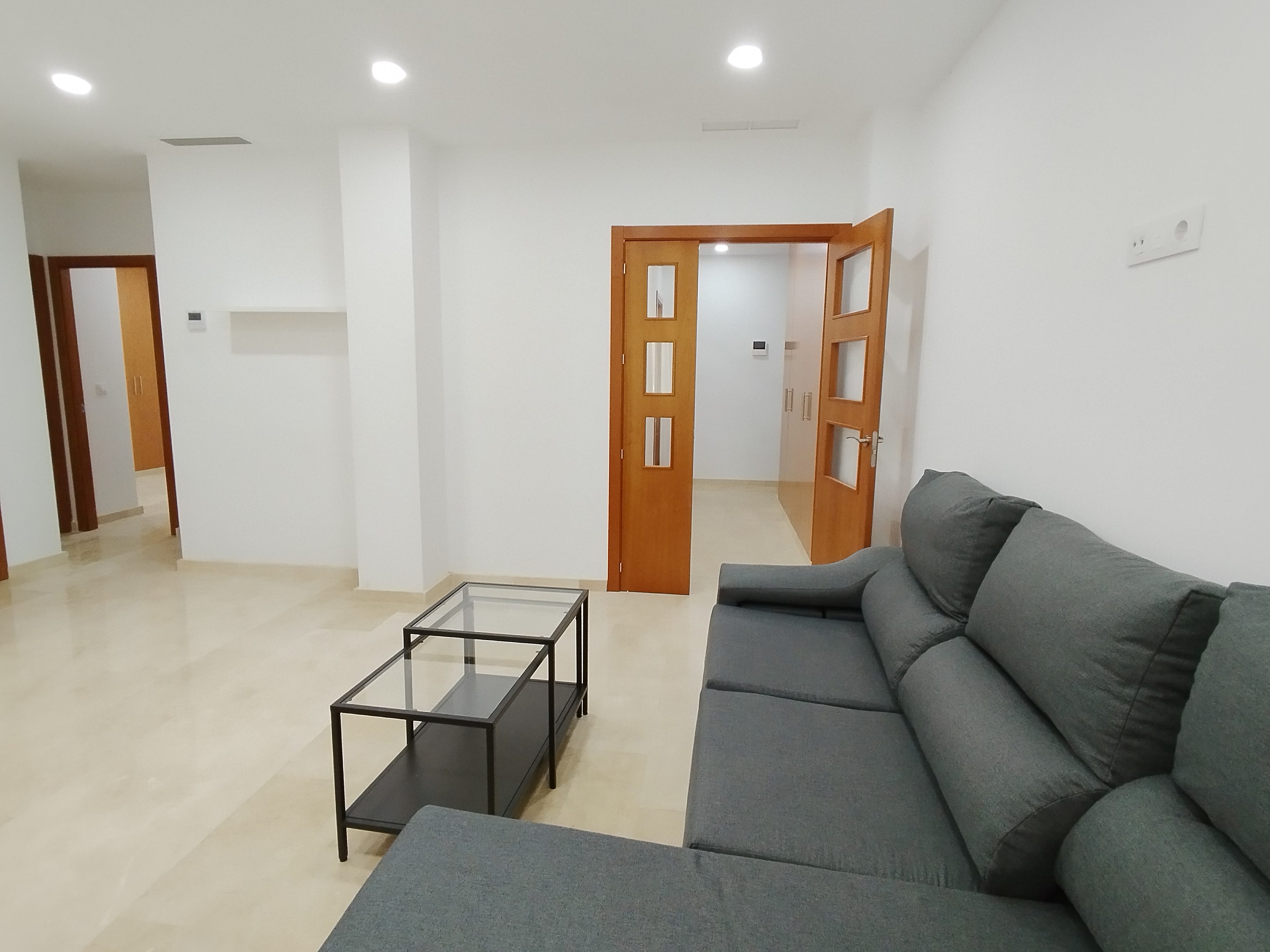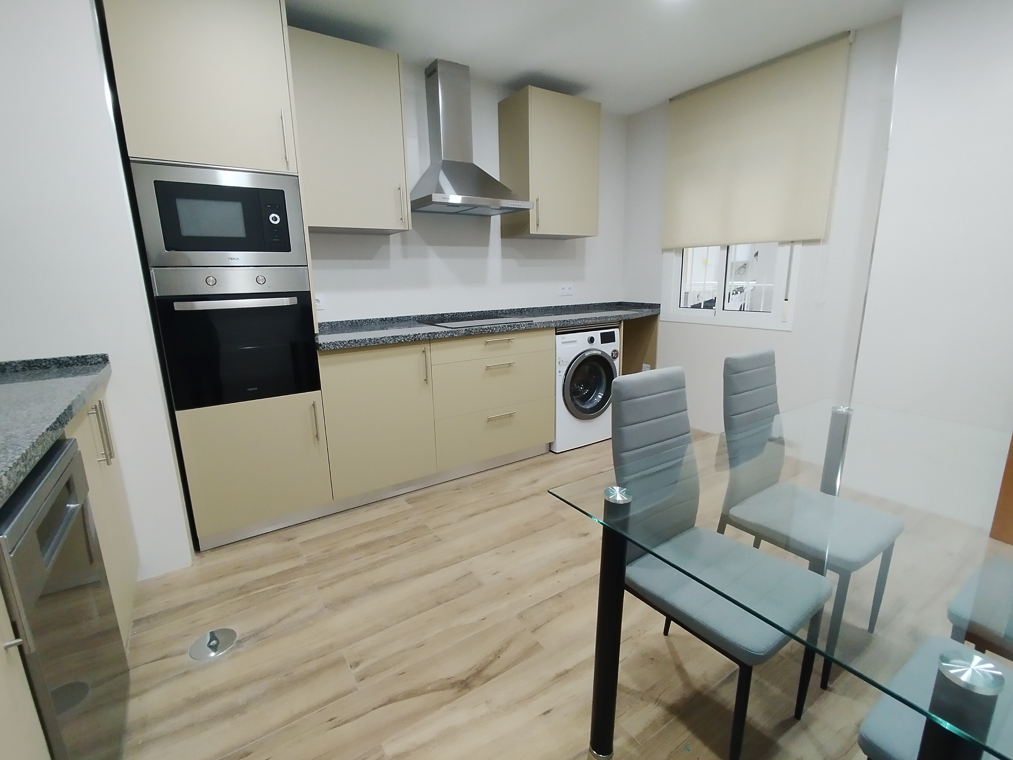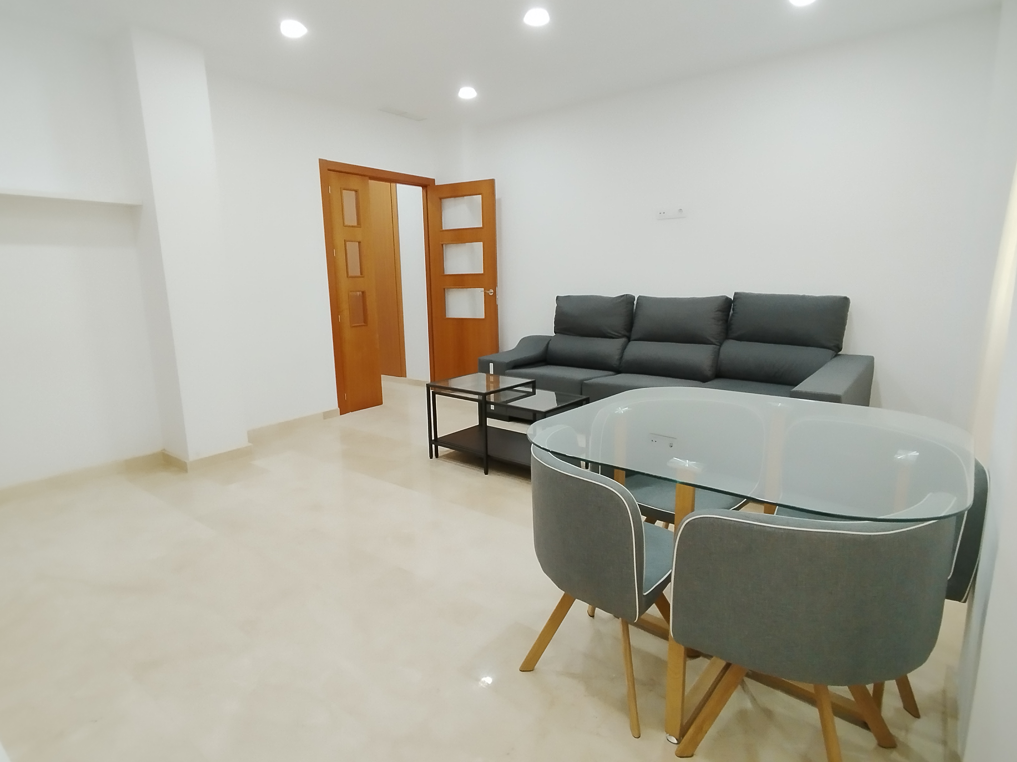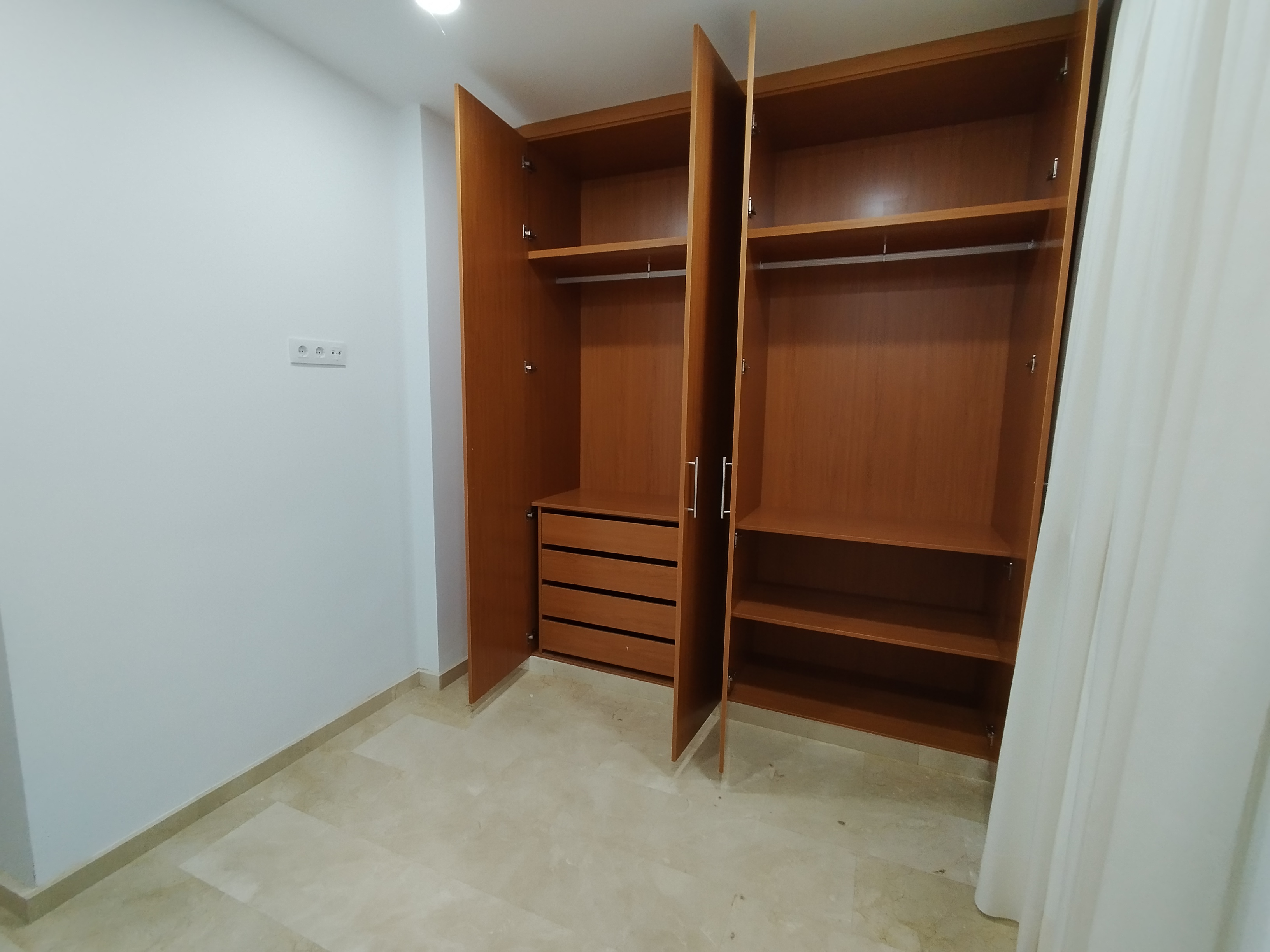 Apartamento de 75 m2 de dos dormitorio, amplio, bien distribuido en salón comedor, amplia cocina independiente, dormitorio con armario empotrado, vitrocerámica, lavavajillas, lavadora, frigorífico, un cuarto de baño, dormitorio con armario empotrado, patio, cama de 135 cm, aire acondicionado centralizado y termo eléctrico. Carpintería de madera en color cerezo, suelo de mármol y ventanas de climalit.