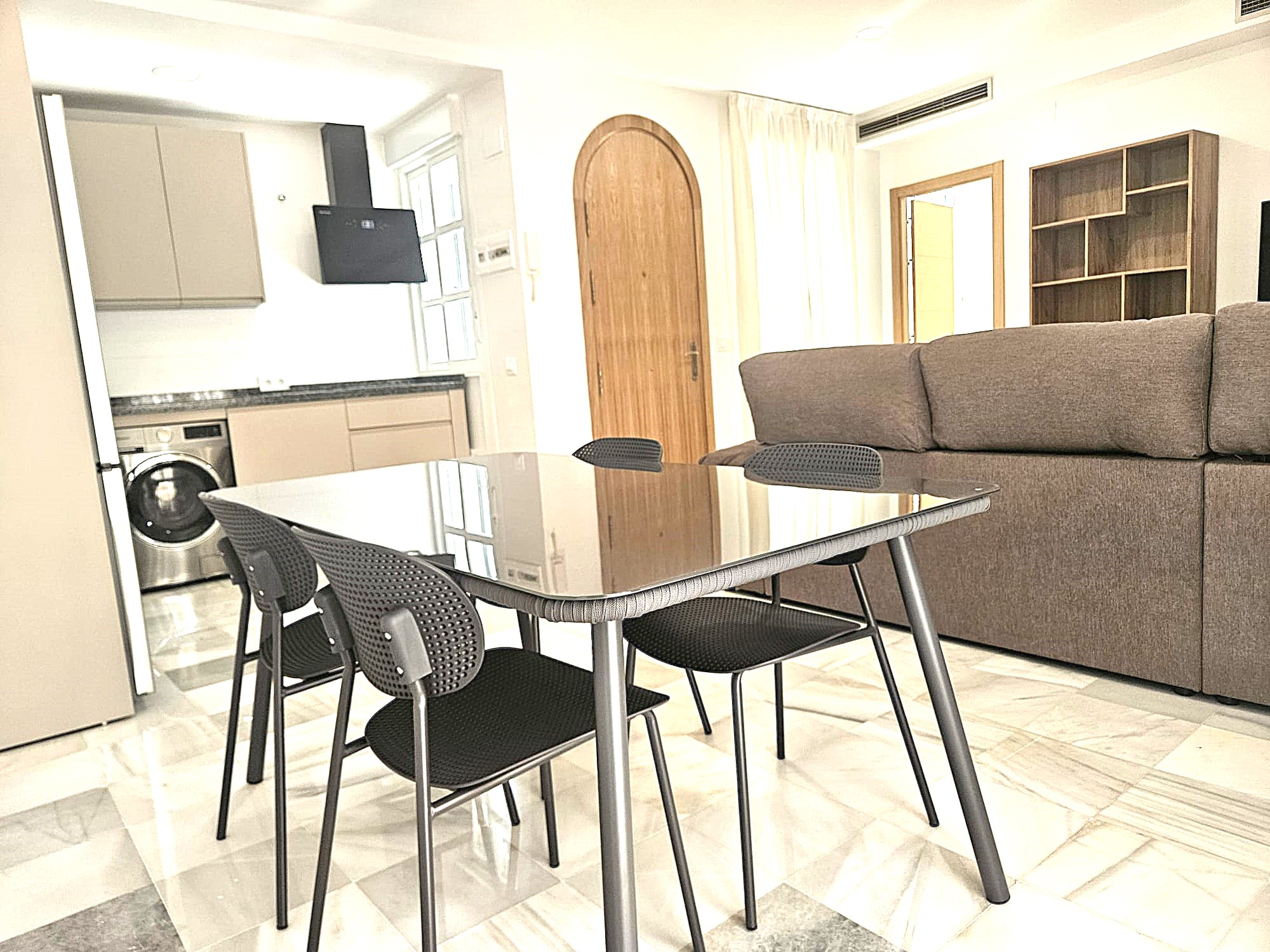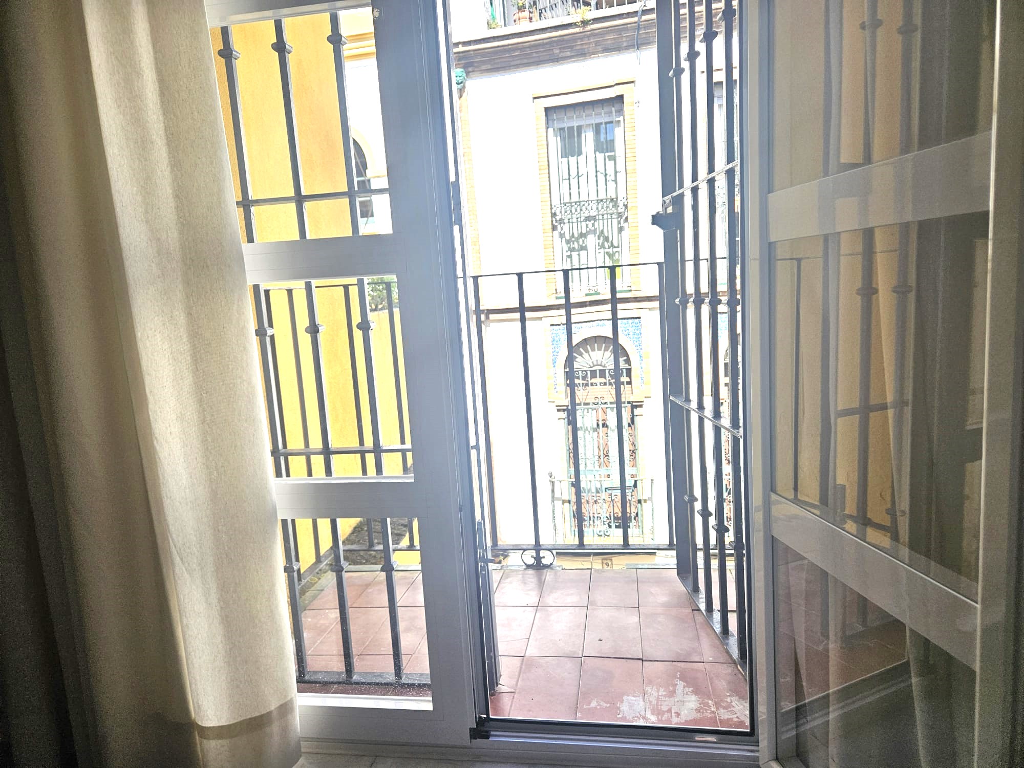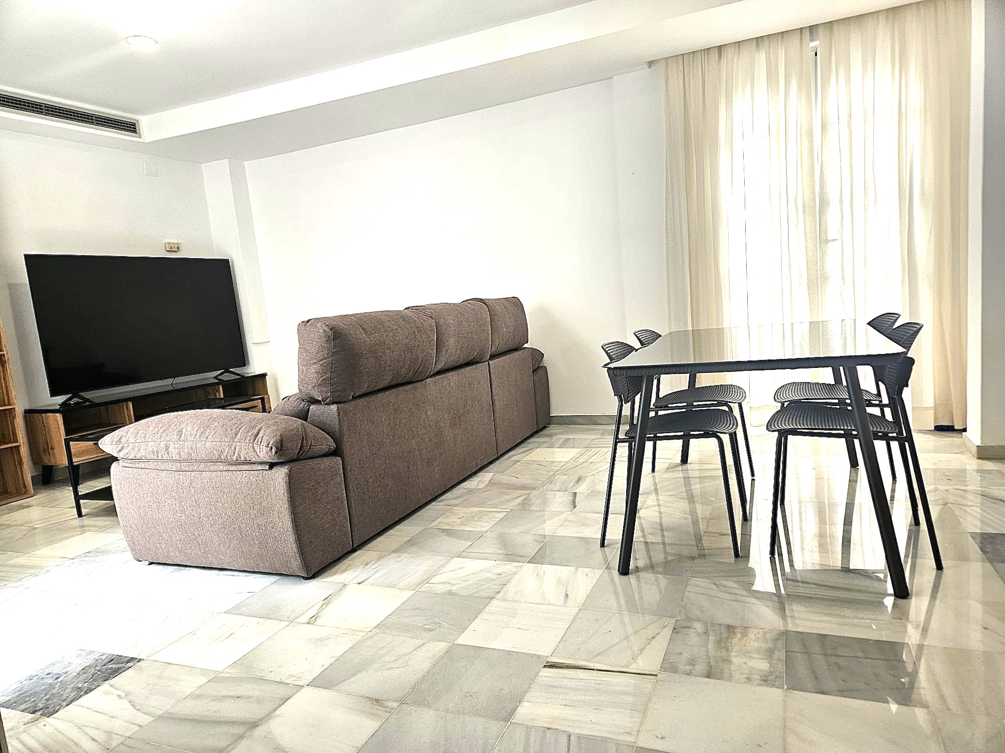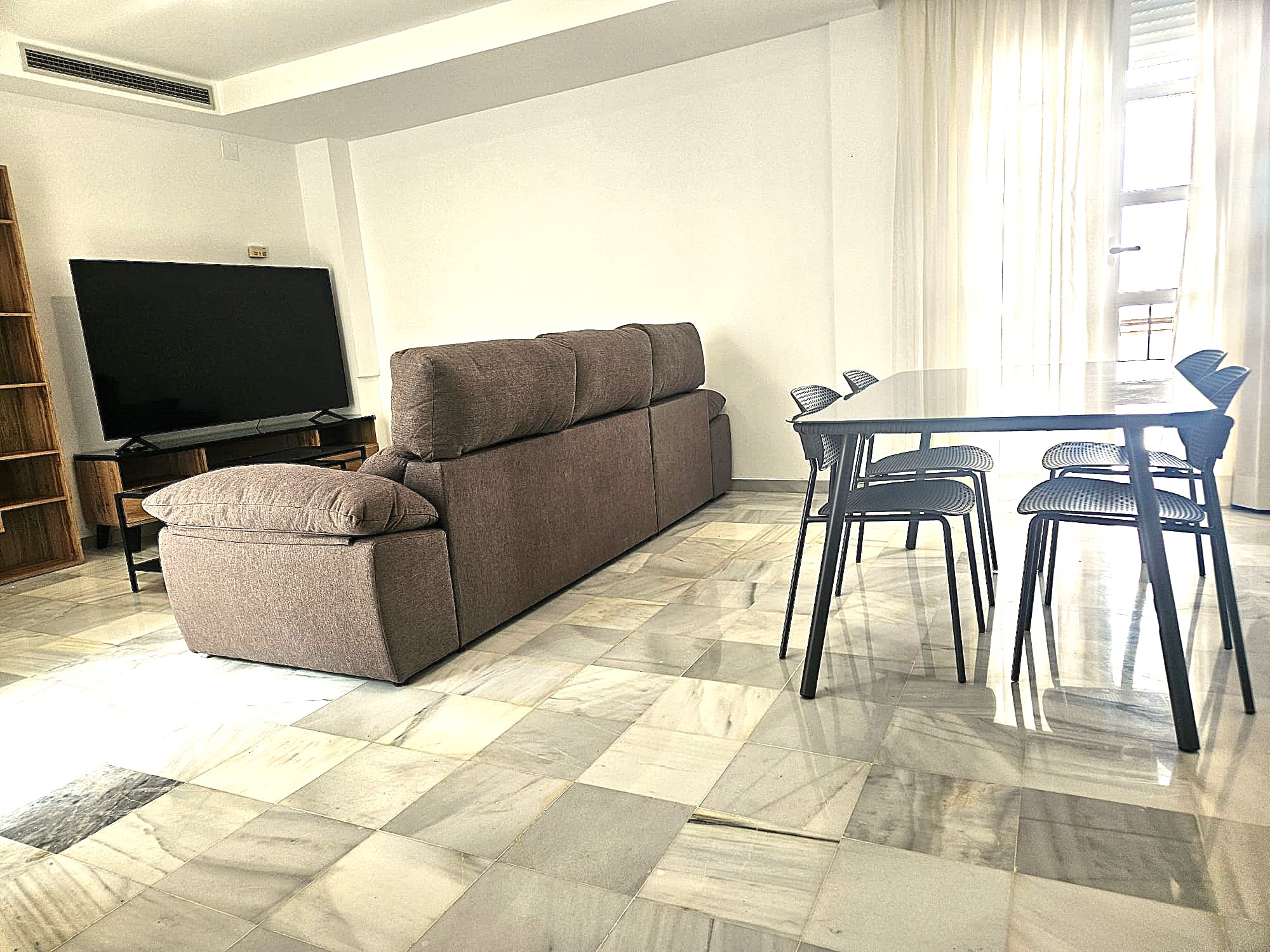 Amplio apartamento de un dormitorio, 78 metros cuadrados, solería de mármol y aire acondicionado centralizado. Situado en pleno centro de la ciudad, muy cercano a la Plaza de la Encarnación («Las Setas»). Bien comunicado por la cercanía de varias paradas de autobuses. Zona de gran oferta turística, comercial y hostelera.