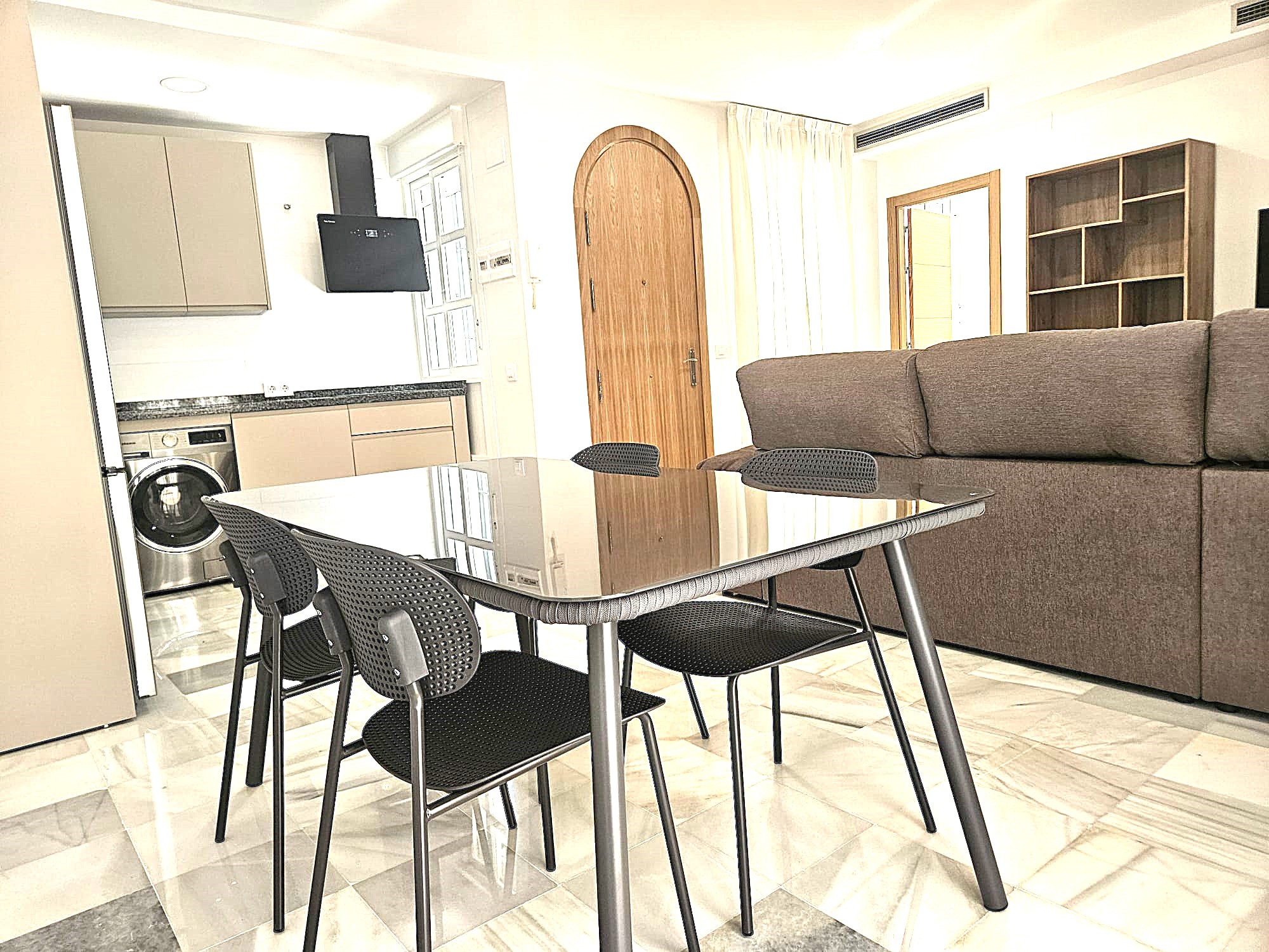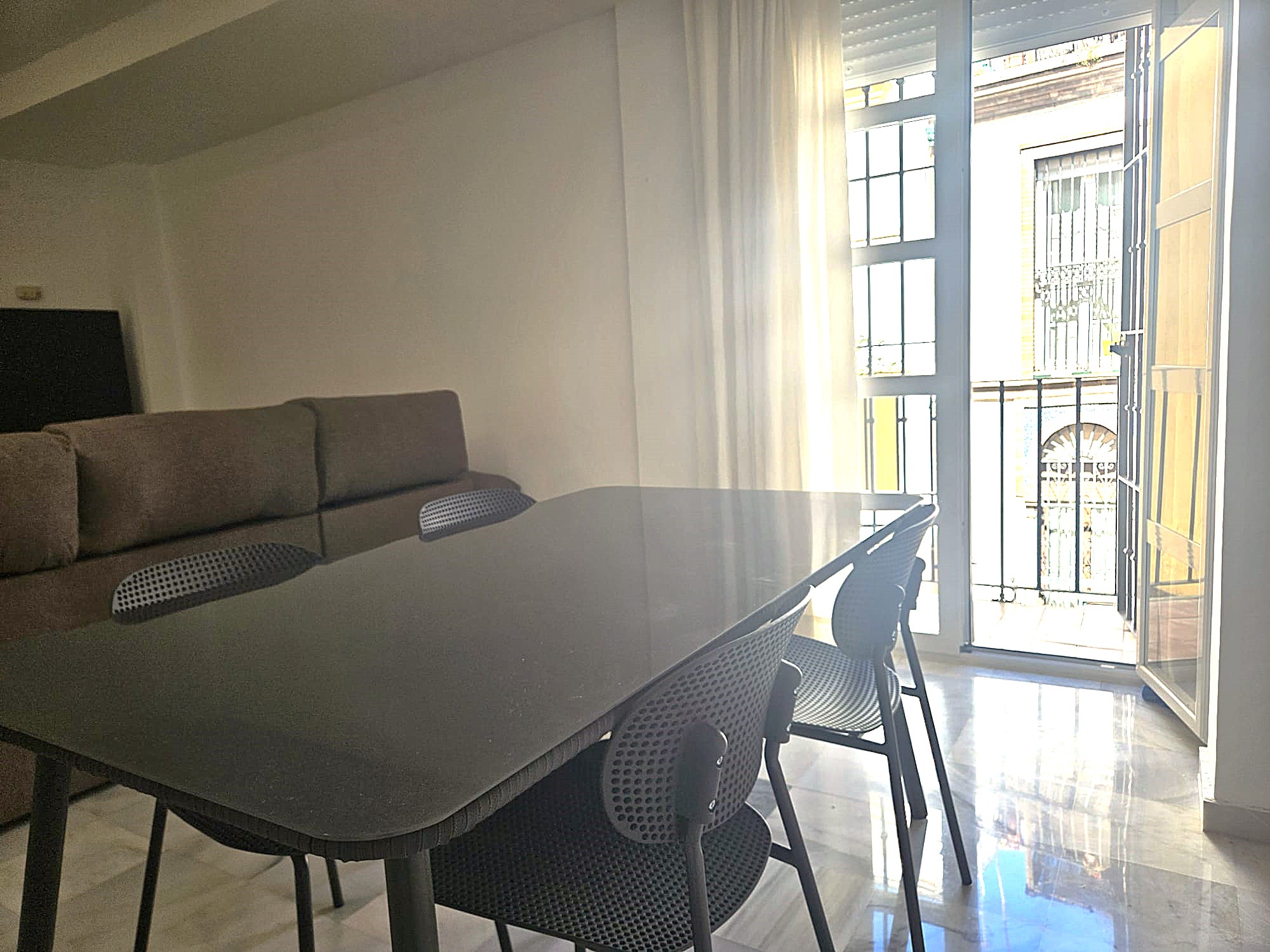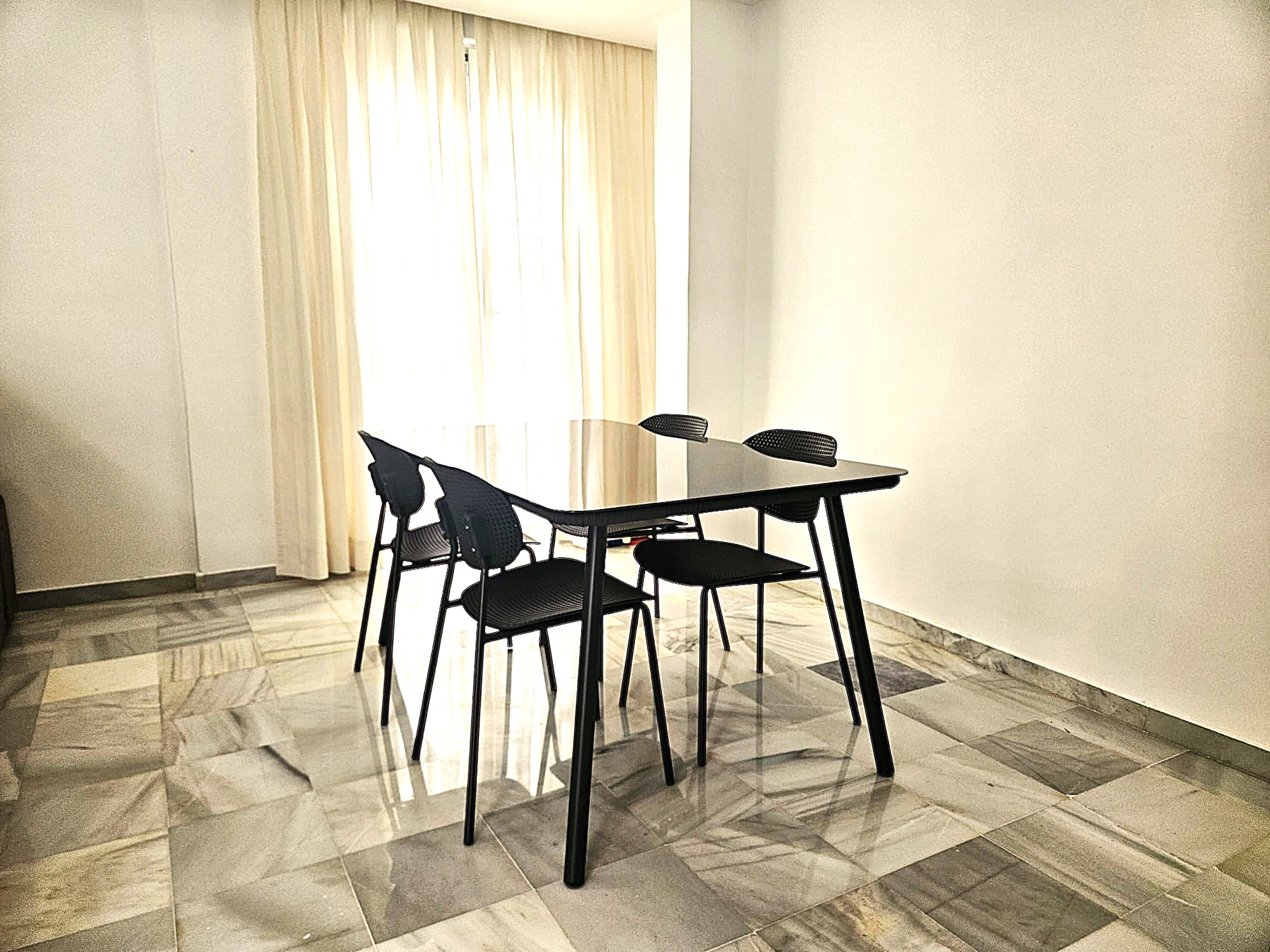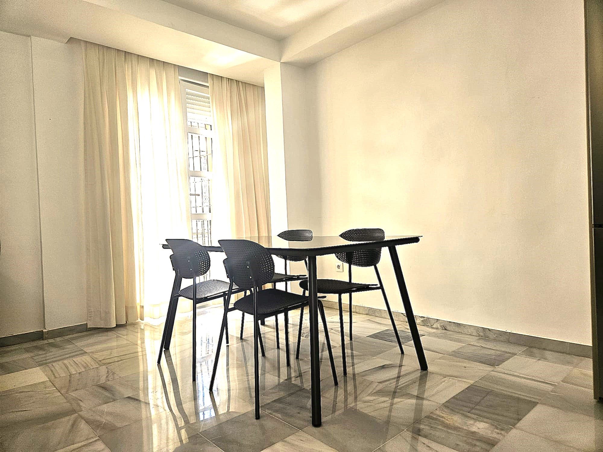 Amplio apartamento de un dormitorio, 78 metros cuadrados, solería de mármol y aire acondicionado centralizado. Situado en pleno centro de la ciudad, muy cercano a la Plaza de la Encarnación («Las Setas»). Bien comunicado por la cercanía de varias paradas de autobuses. Zona de gran oferta turística, comercial y hostelera.