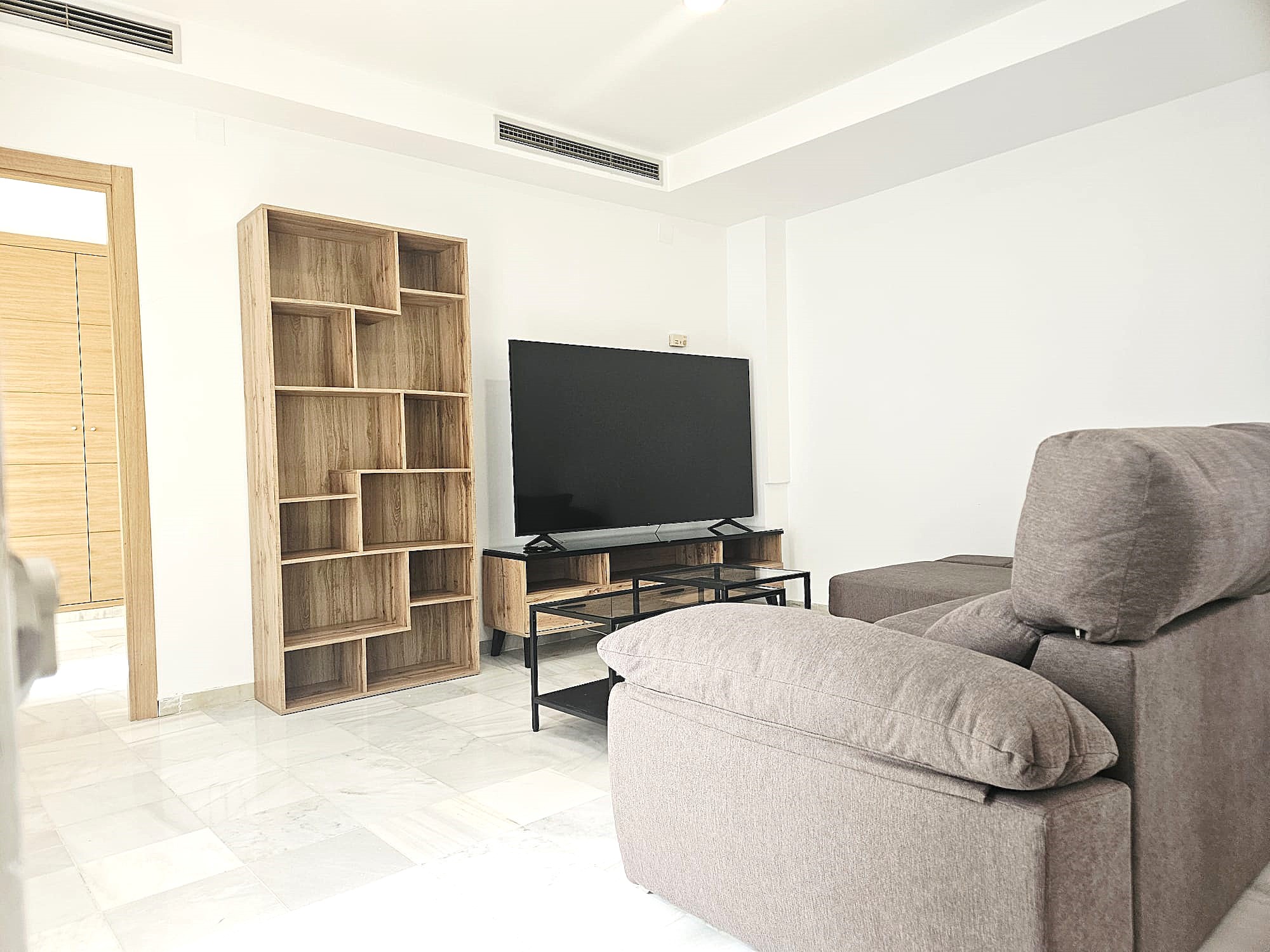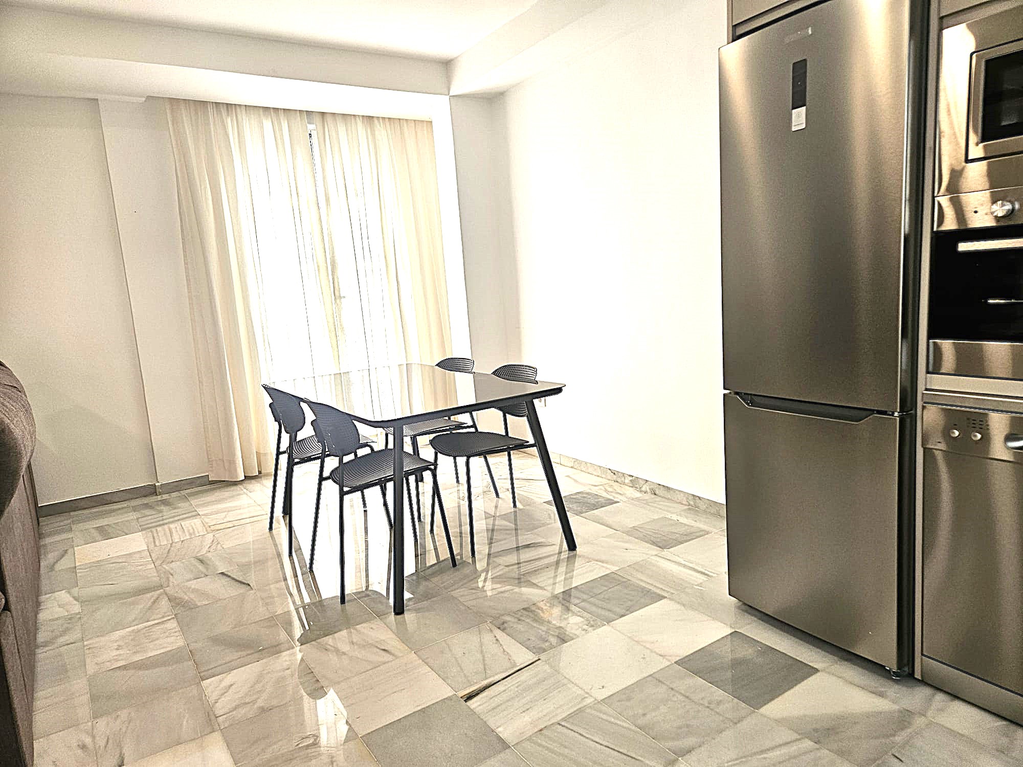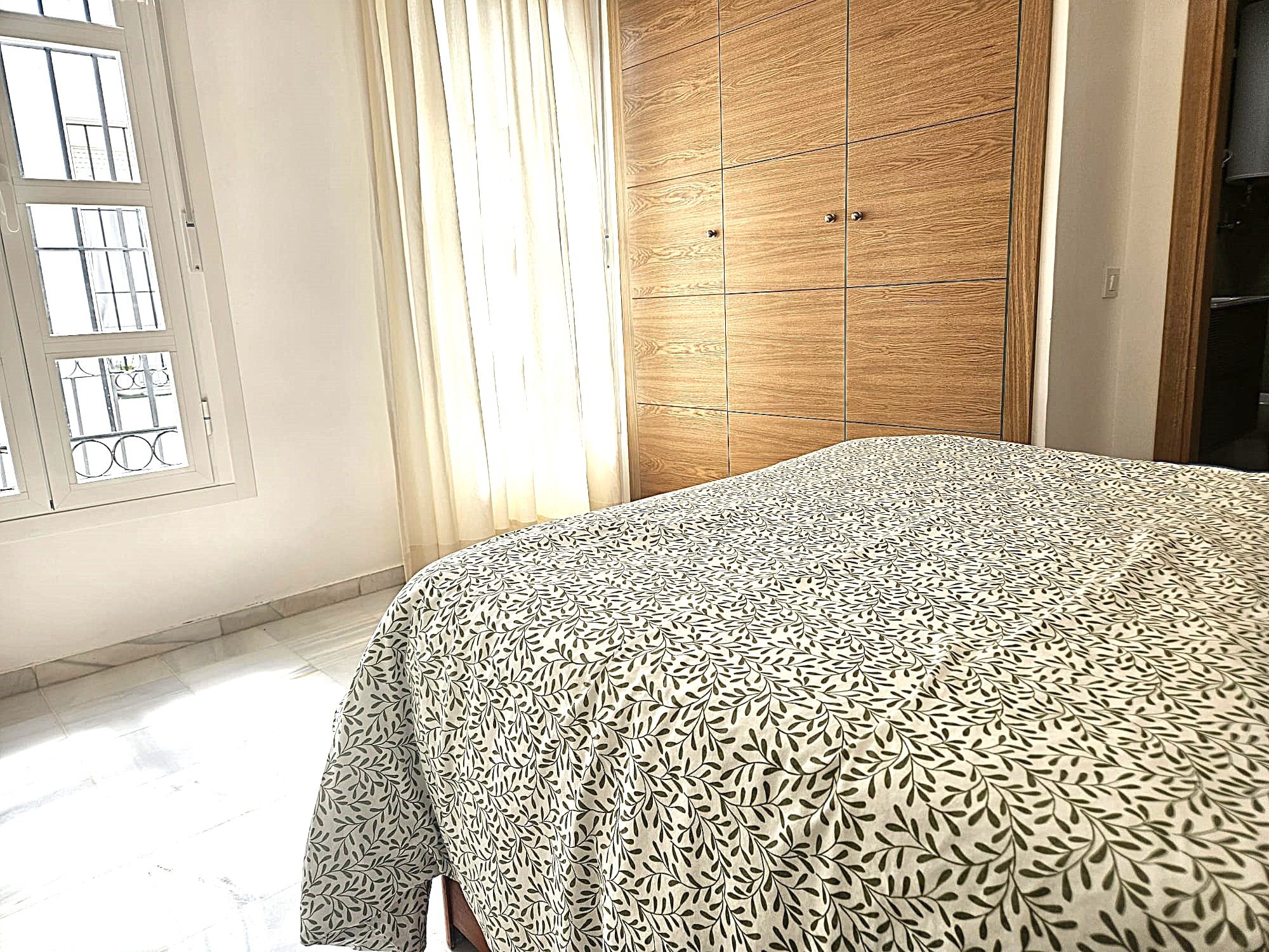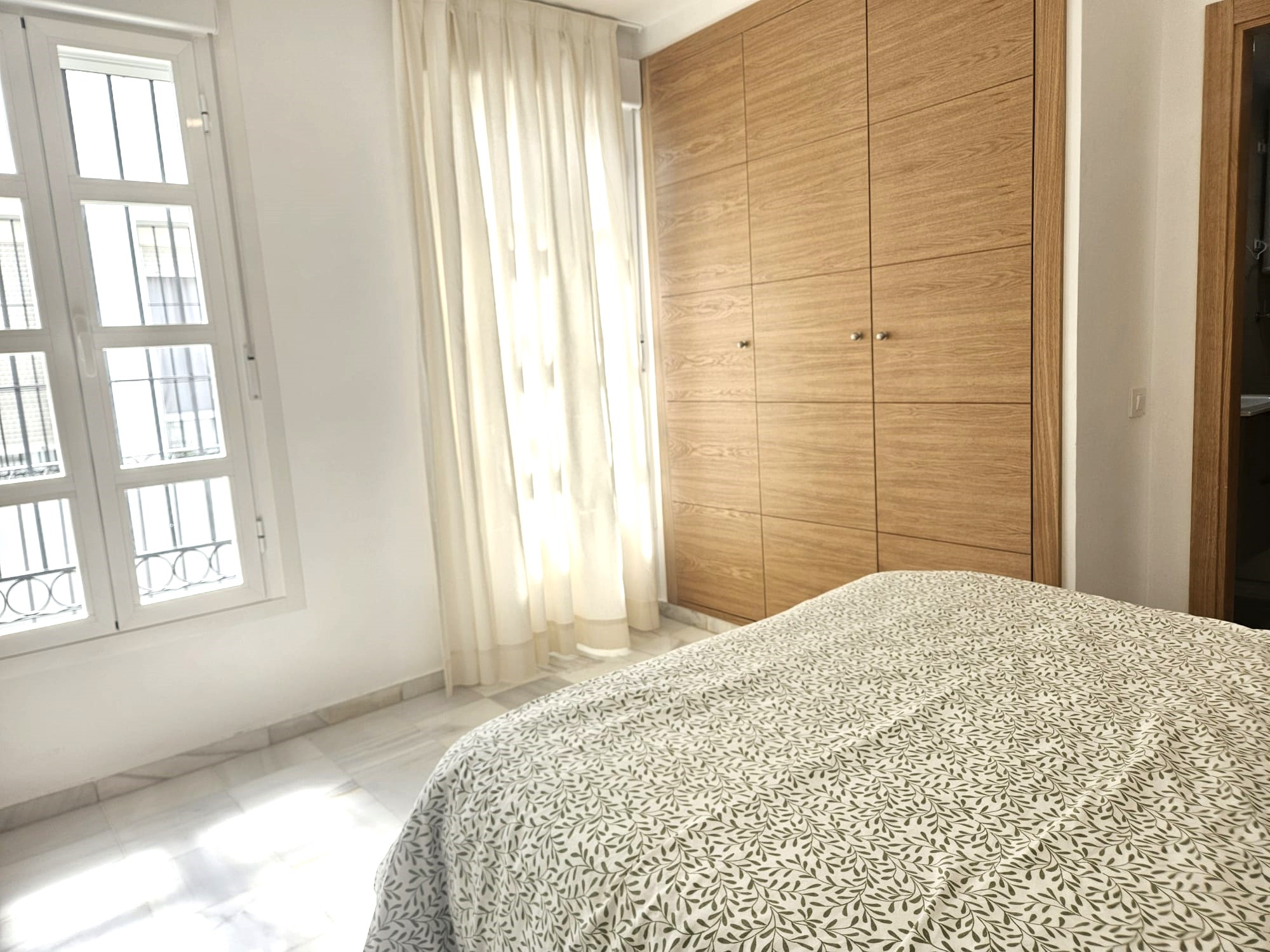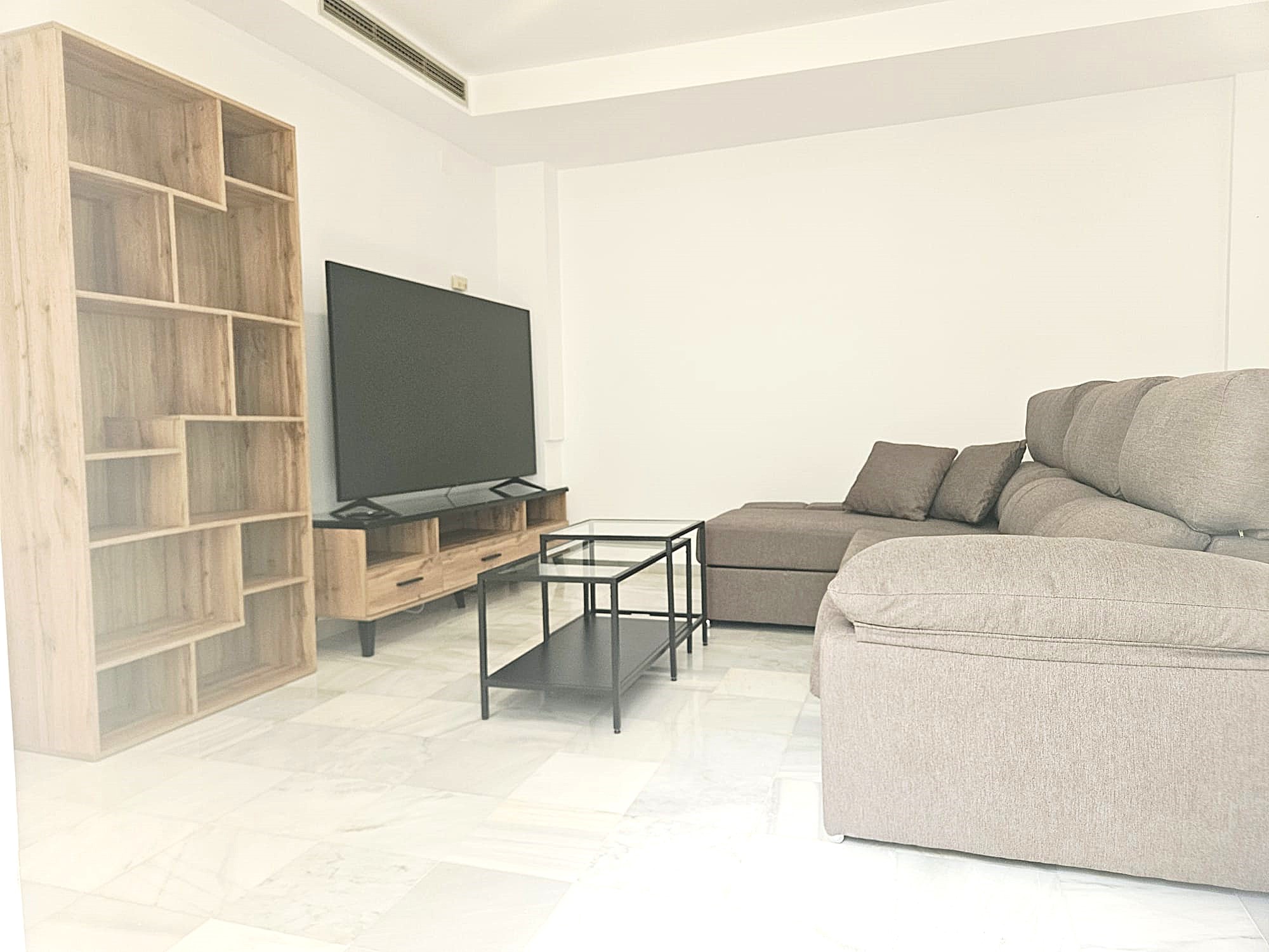 Amplio apartamento de un dormitorio, 78 metros cuadrados, solería de mármol y aire acondicionado centralizado. Situado en pleno centro de la ciudad, muy cercano a la Plaza de la Encarnación («Las Setas»). Bien comunicado por la cercanía de varias paradas de autobuses. Zona de gran oferta turística, comercial y hostelera.