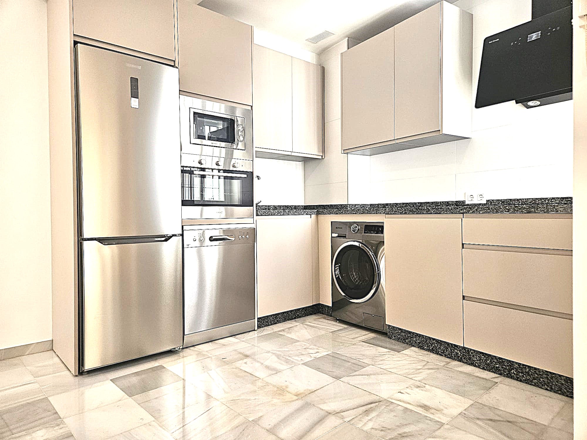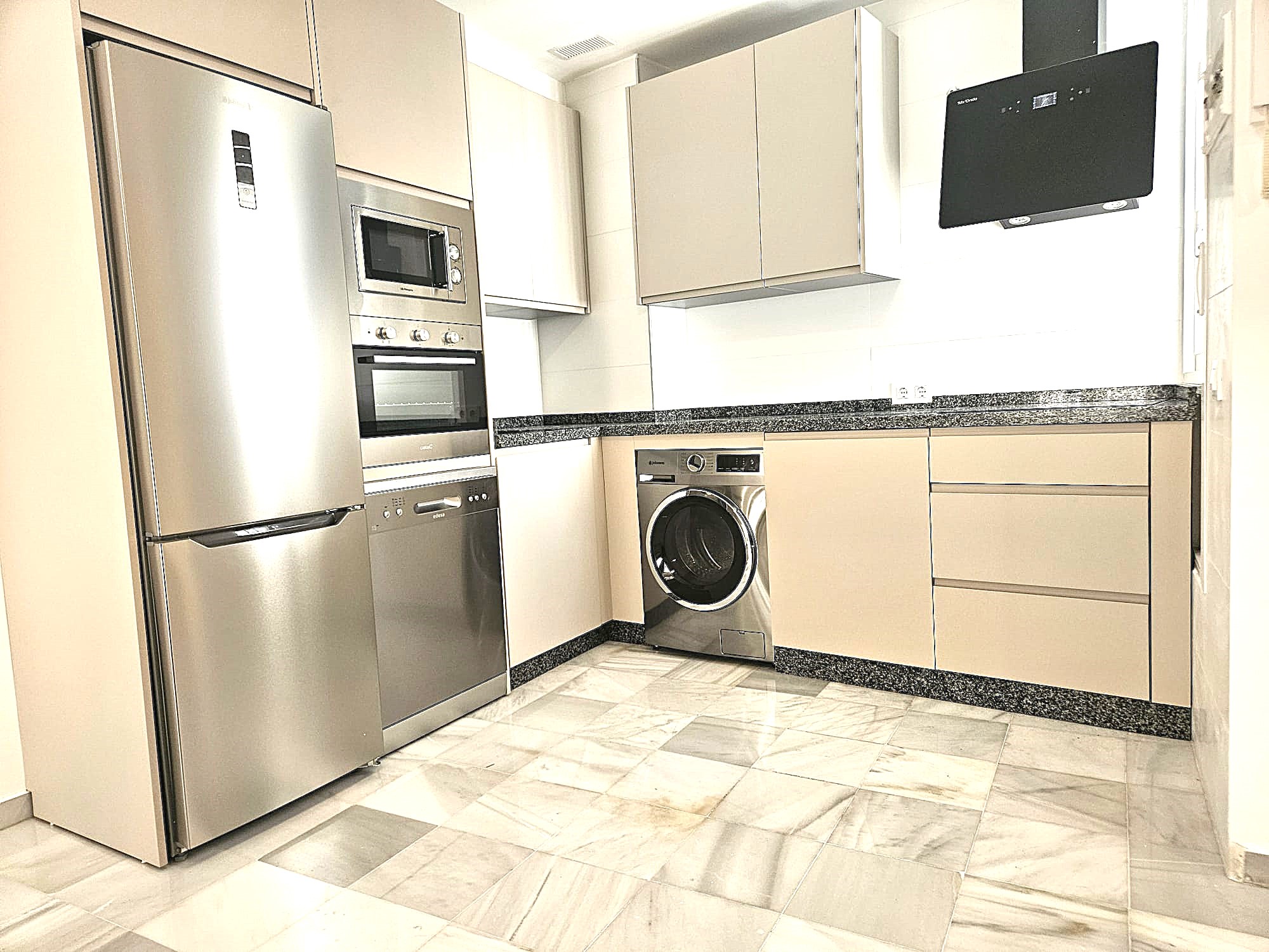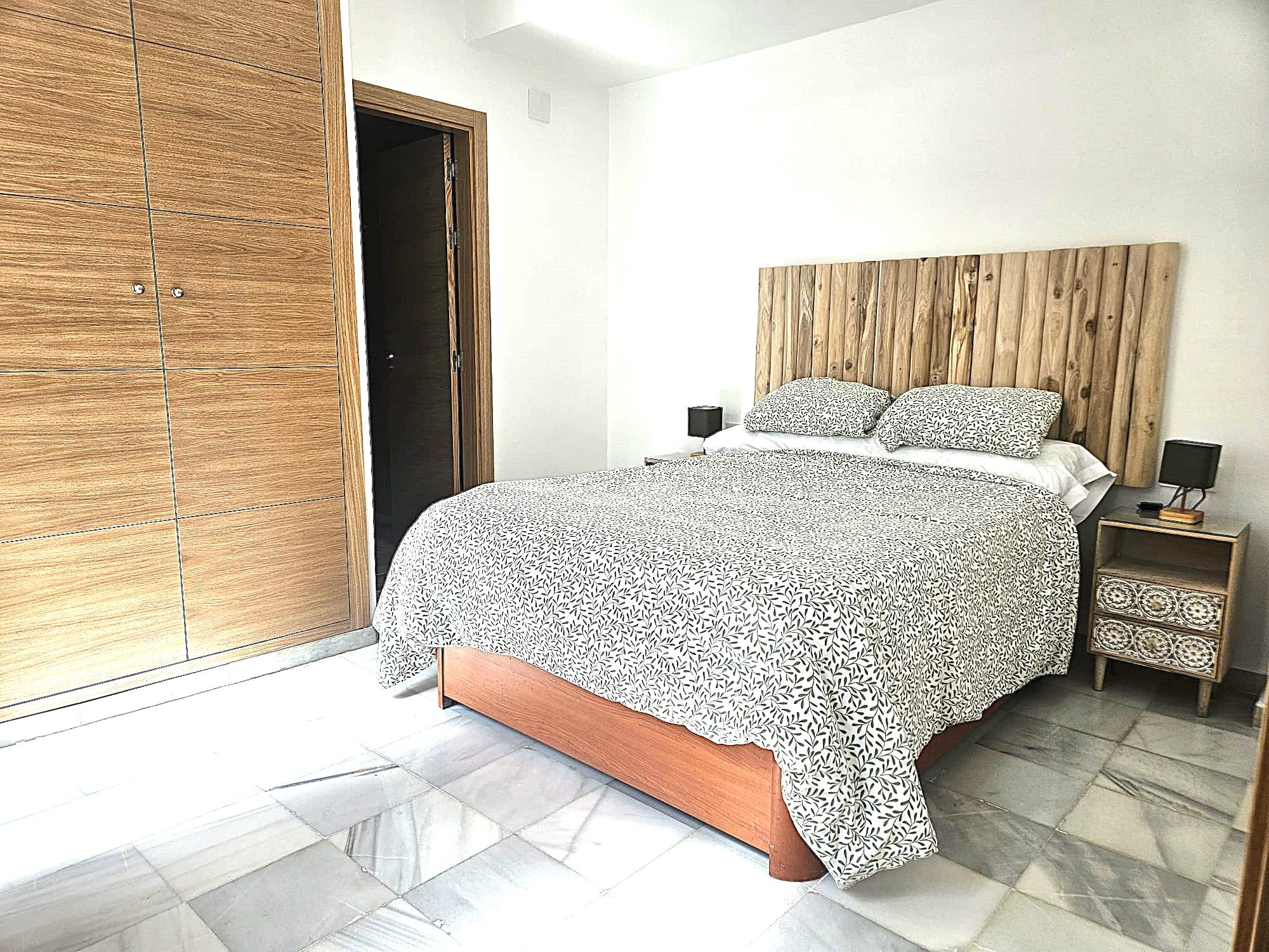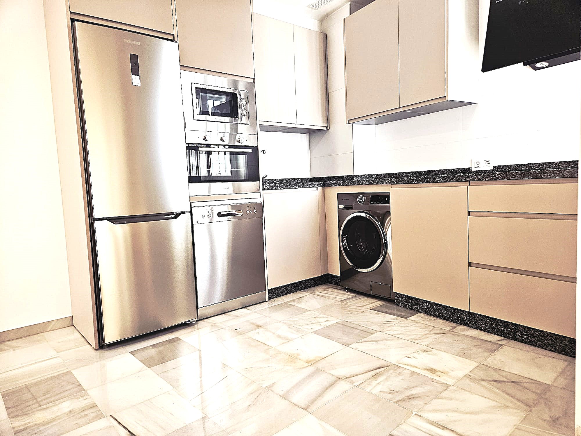 Amplio apartamento de un dormitorio, 78 metros cuadrados, solería de mármol y aire acondicionado centralizado. Situado en pleno centro de la ciudad, muy cercano a la Plaza de la Encarnación («Las Setas»). Bien comunicado por la cercanía de varias paradas de autobuses. Zona de gran oferta turística, comercial y hostelera.