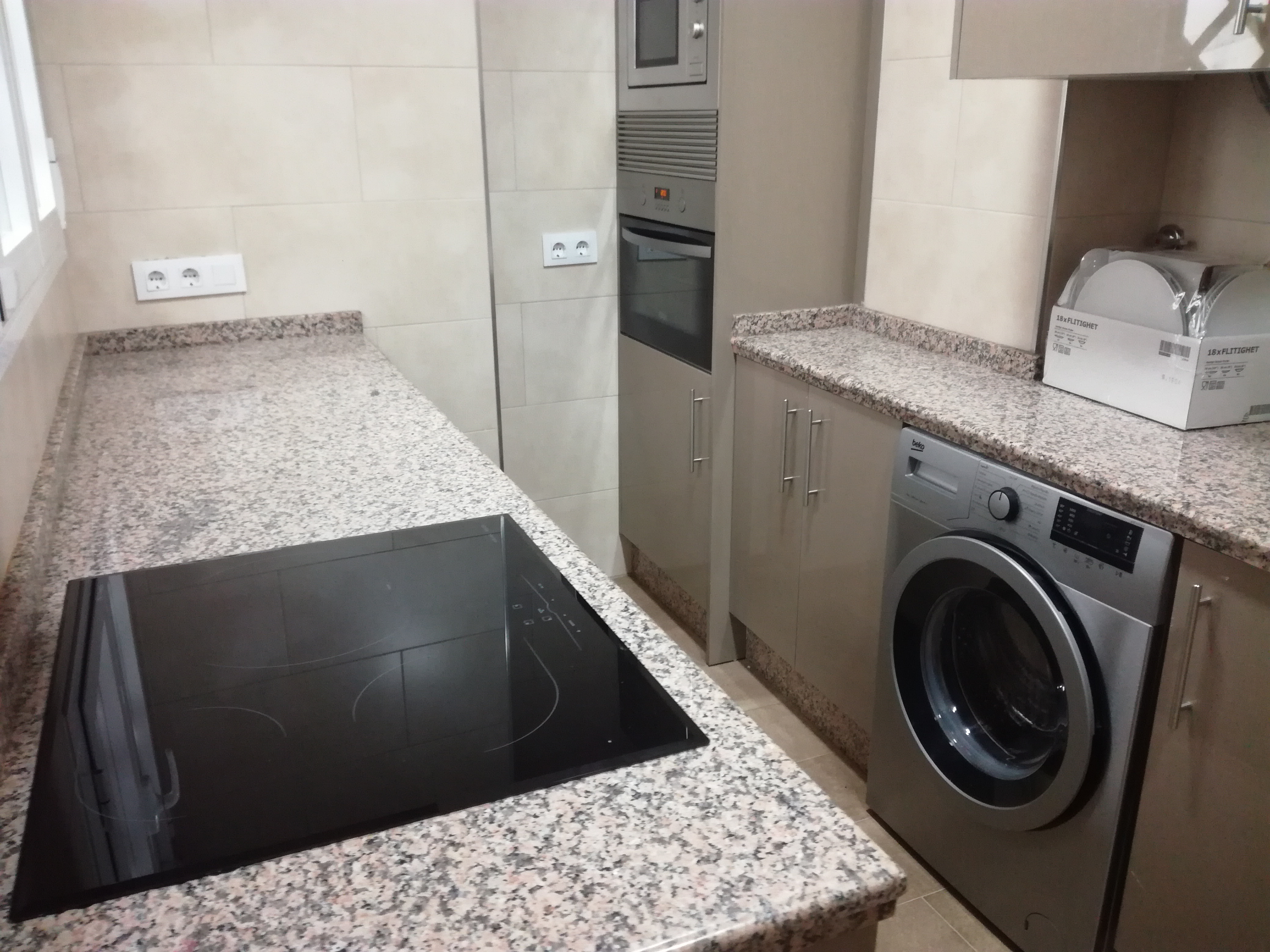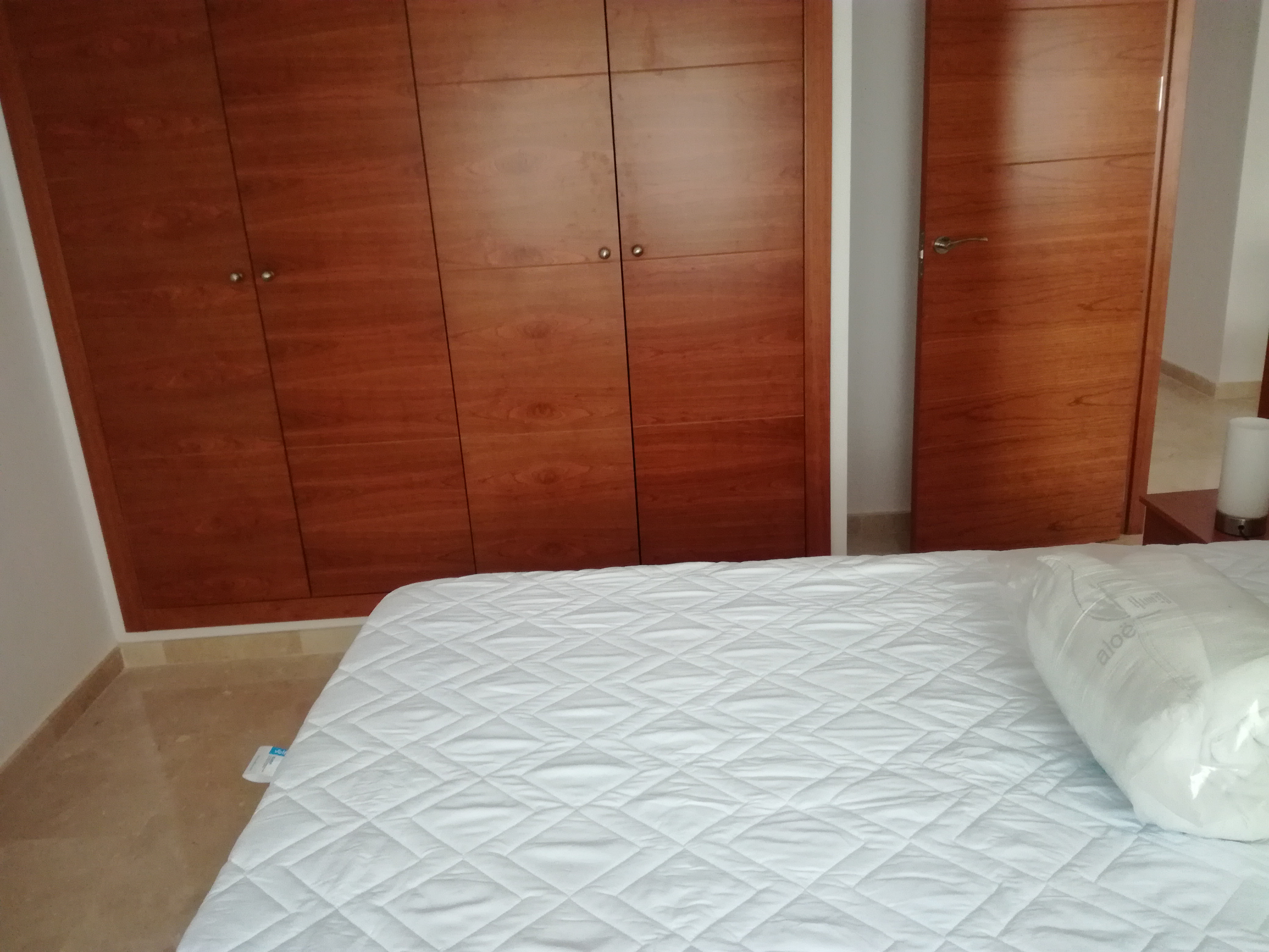 Apartamento de 50 m2, se alquila amueblado, distribuido en salón comedor exterior, cocina independiente, climatizada con vitrocerámica de inducción y electrodomésticos de primeras marcas, baño con plato de ducha, y un dormitorio con armario empotrado, camas de 135 cm. Con conexión de antena TV y teléfono en todas las habitaciones, aire acondicionado centralizado y termo eléctrico. Carpintería de madera en color cerezo, suelo de mármol crema marfil y ventanas de climalit.