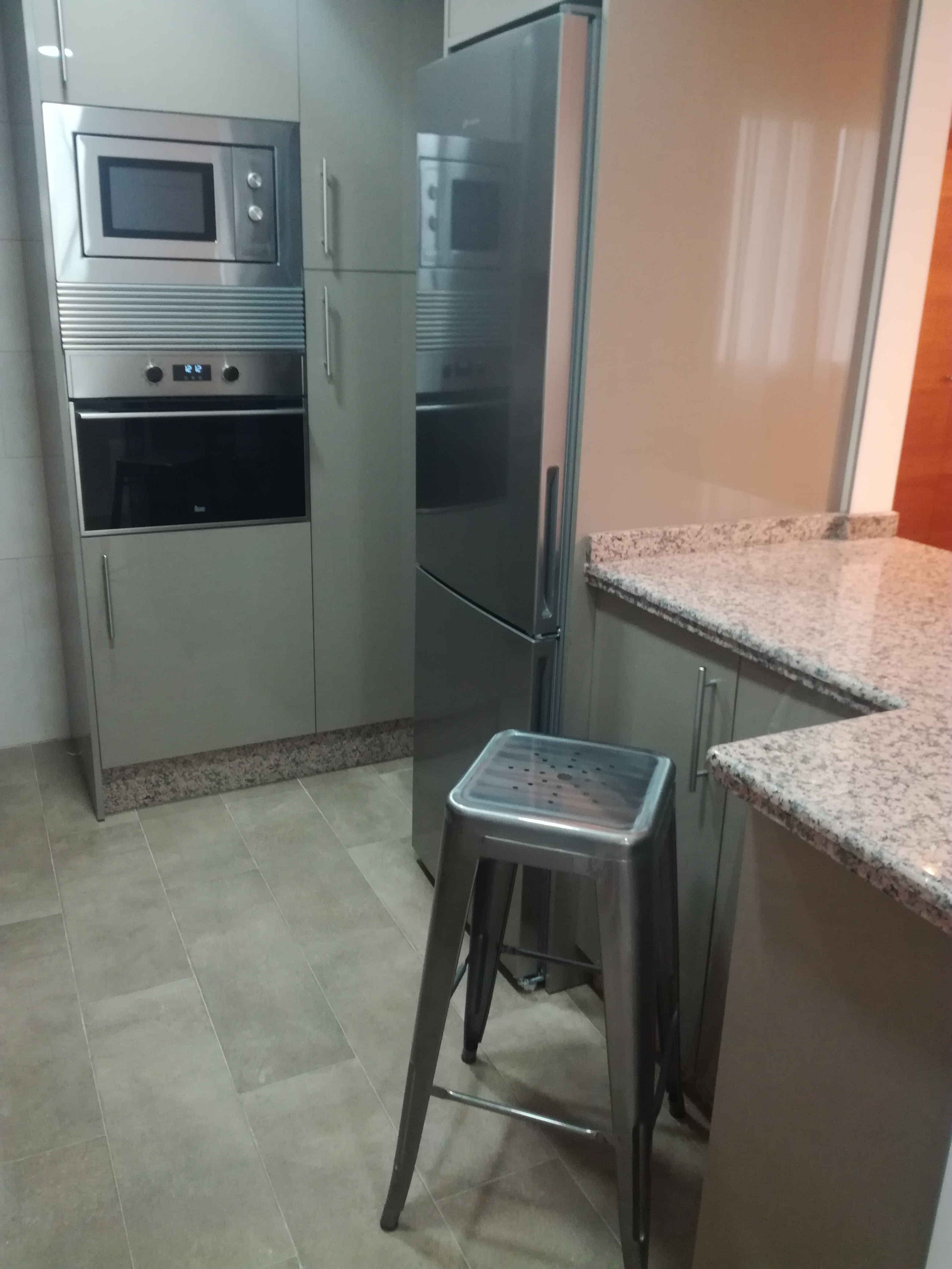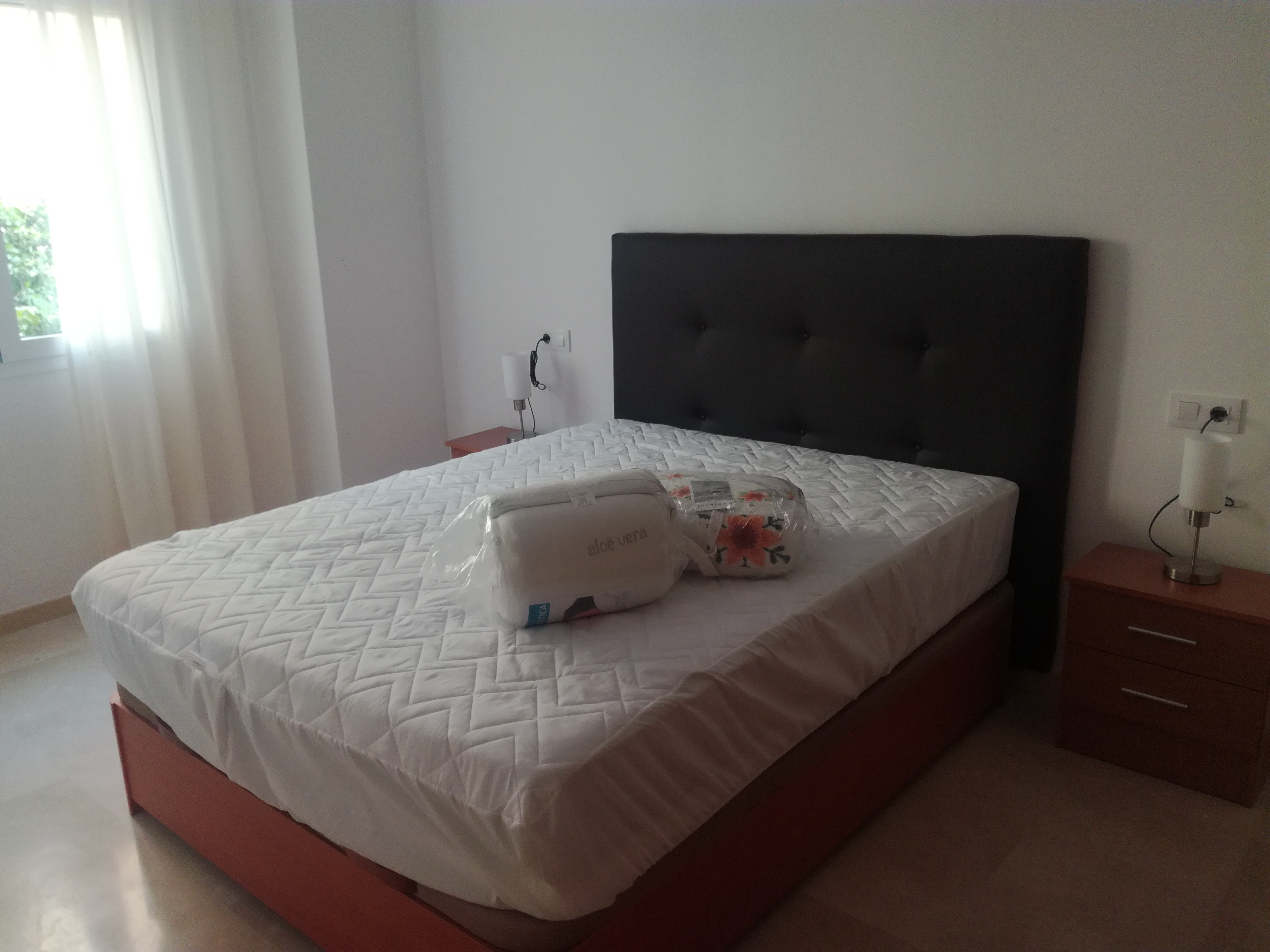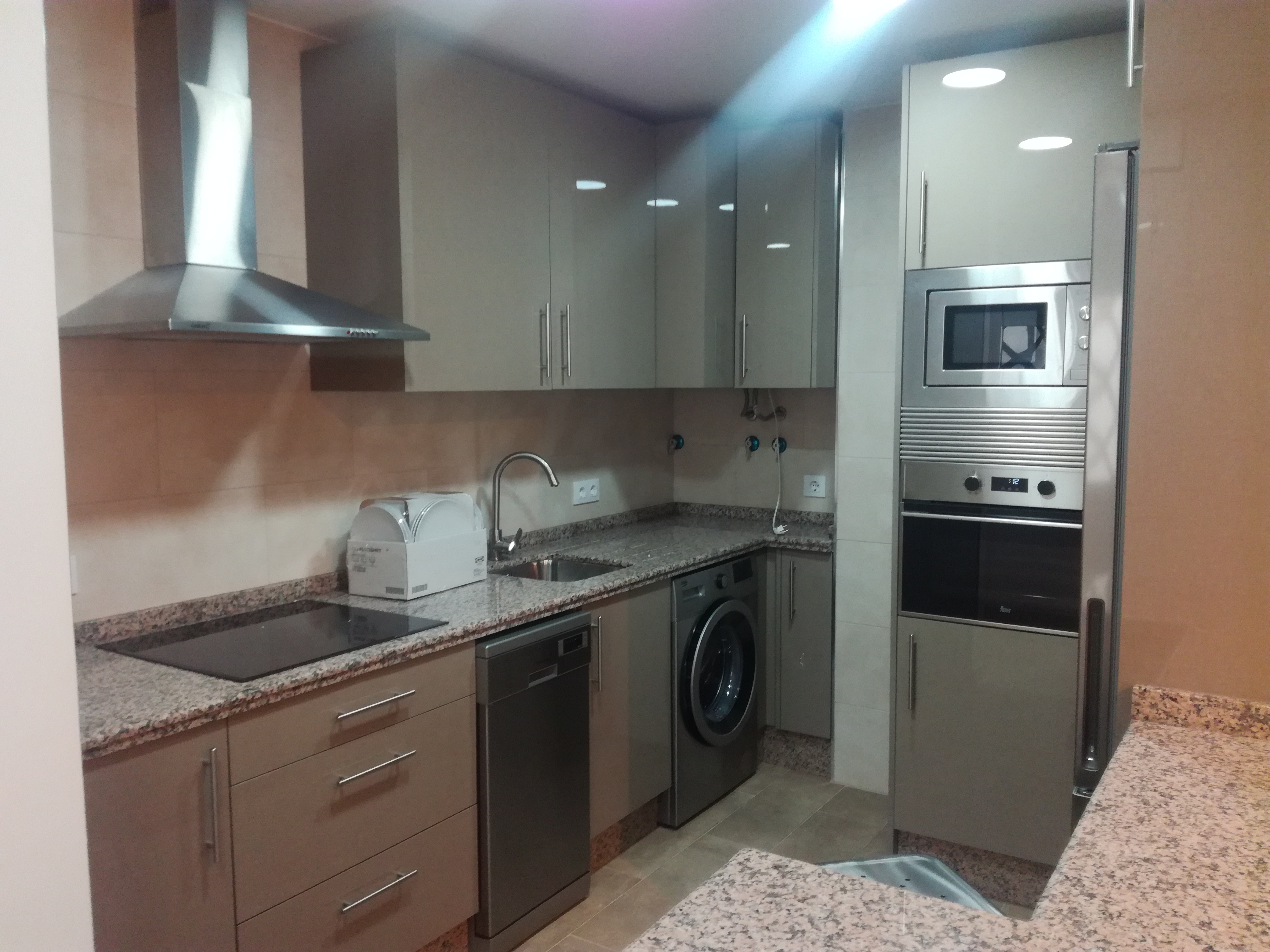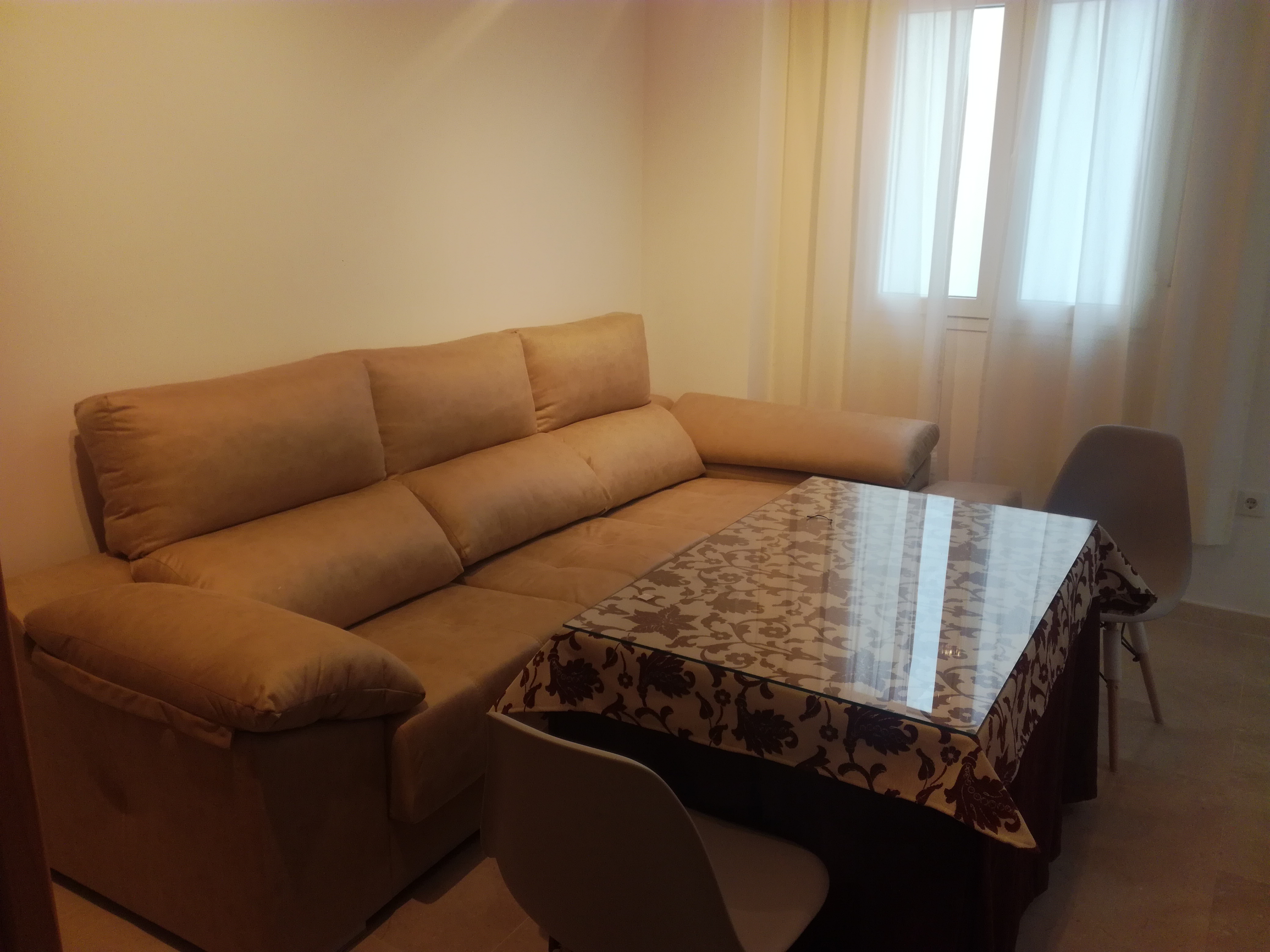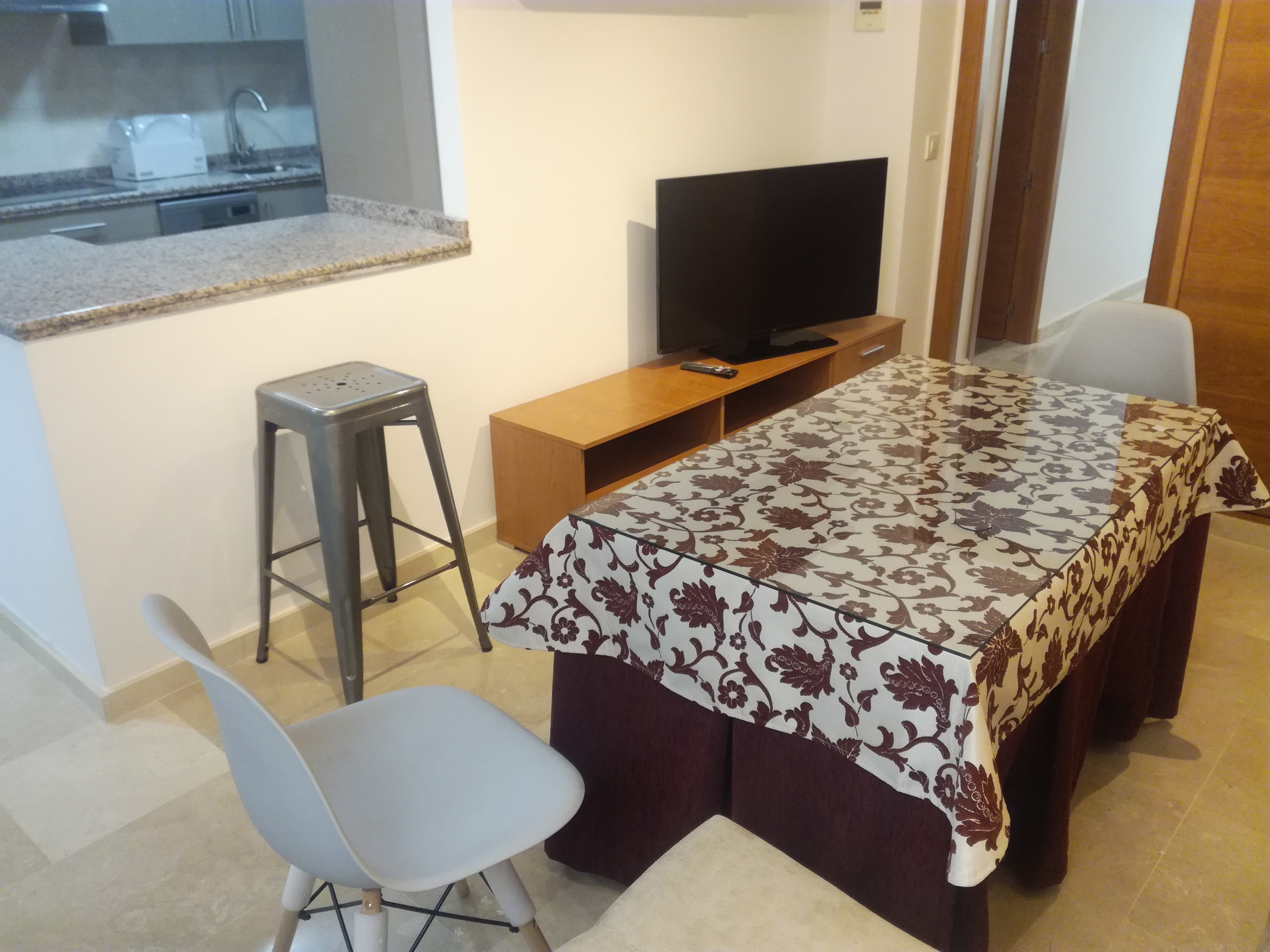 Apartamento de 50 m2, se alquila amueblado, distribuido en salón comedor, cocina americana con barra y taburetes, amplia cocina totalmente equipada con vitrocerámica de inducción y electrodomésticos (lavadora, lavavajillas, frigorífico) de primeras marcas, baño con plato de ducha, y un dormitorio con armario empotrado, cama de 150 cm. Con conexión de antena TV y teléfono en todas las habitaciones, aire acondicionado centralizado, placas solares en azotea transitable y termo eléctrico. Carpintería de madera en color cerezo, suelo de mármol crema marfil y ventanas de climalit.