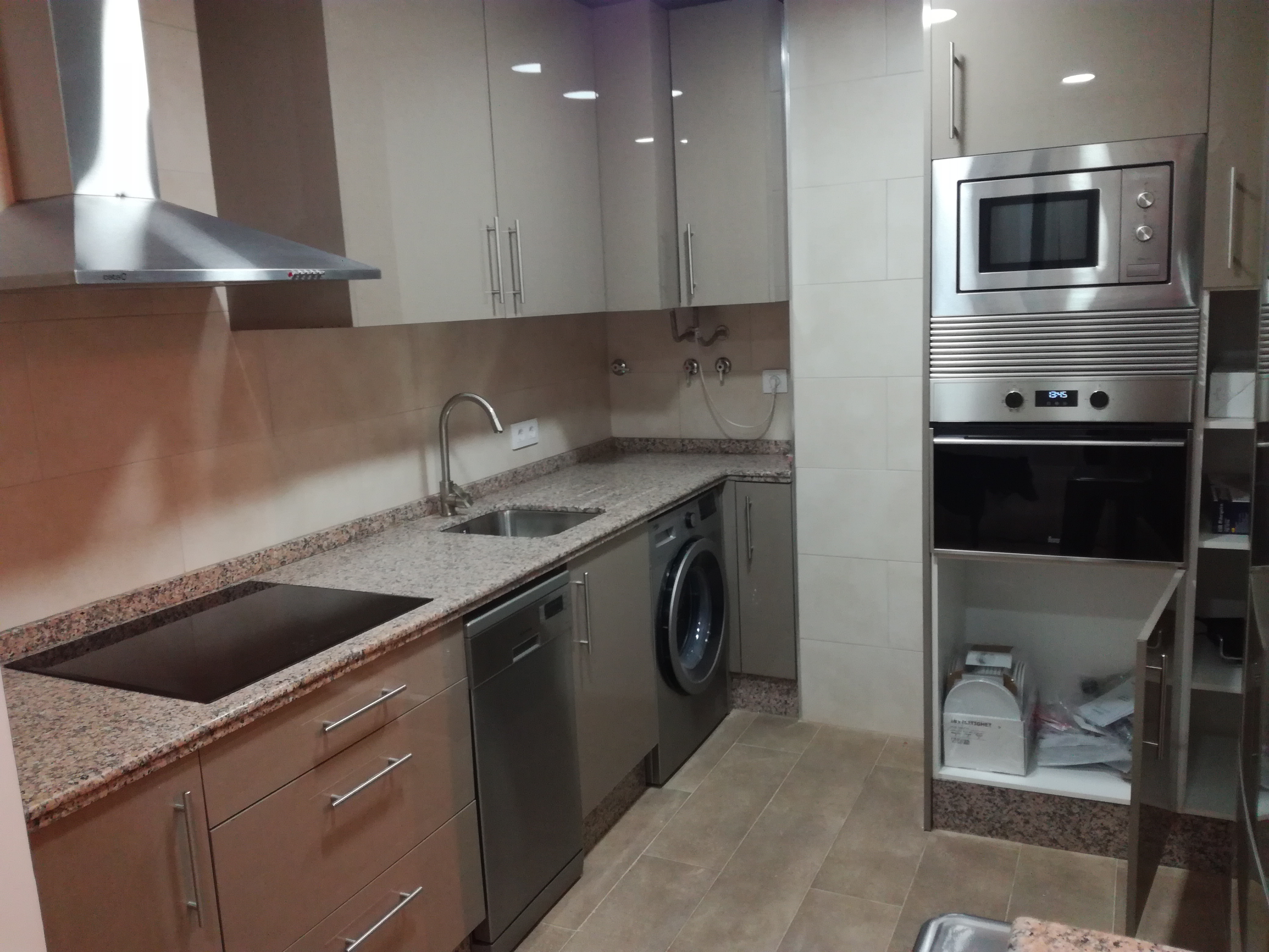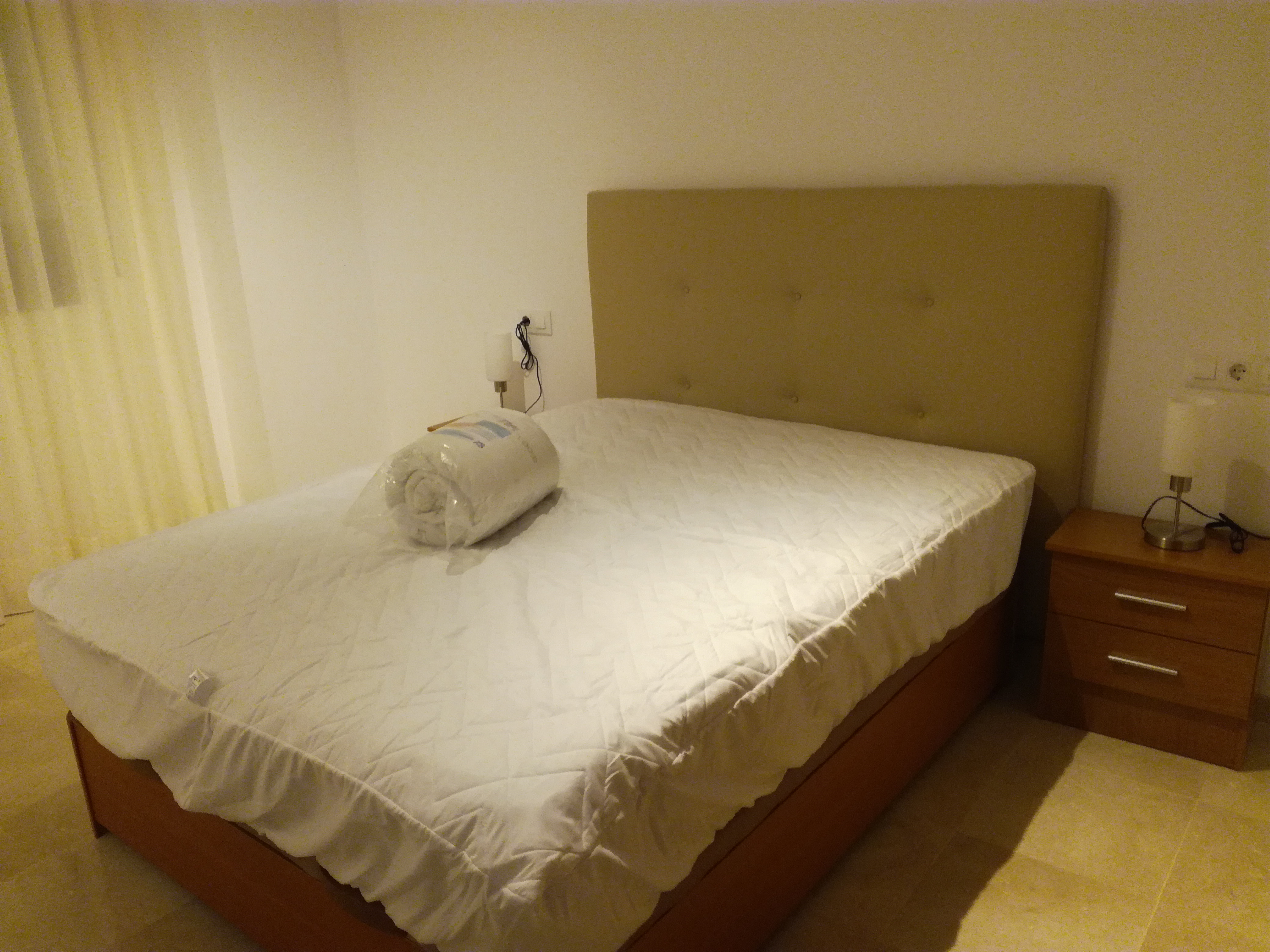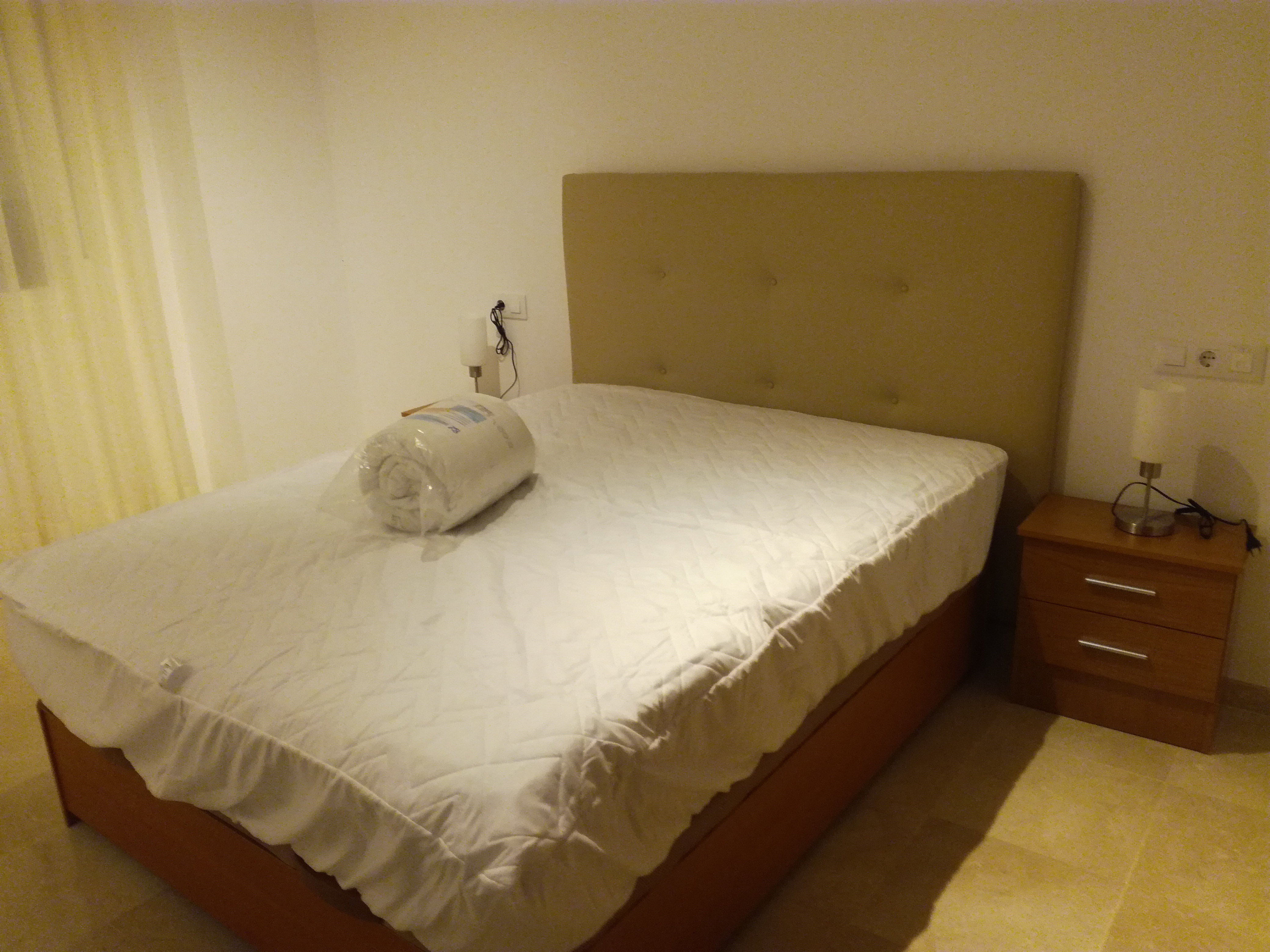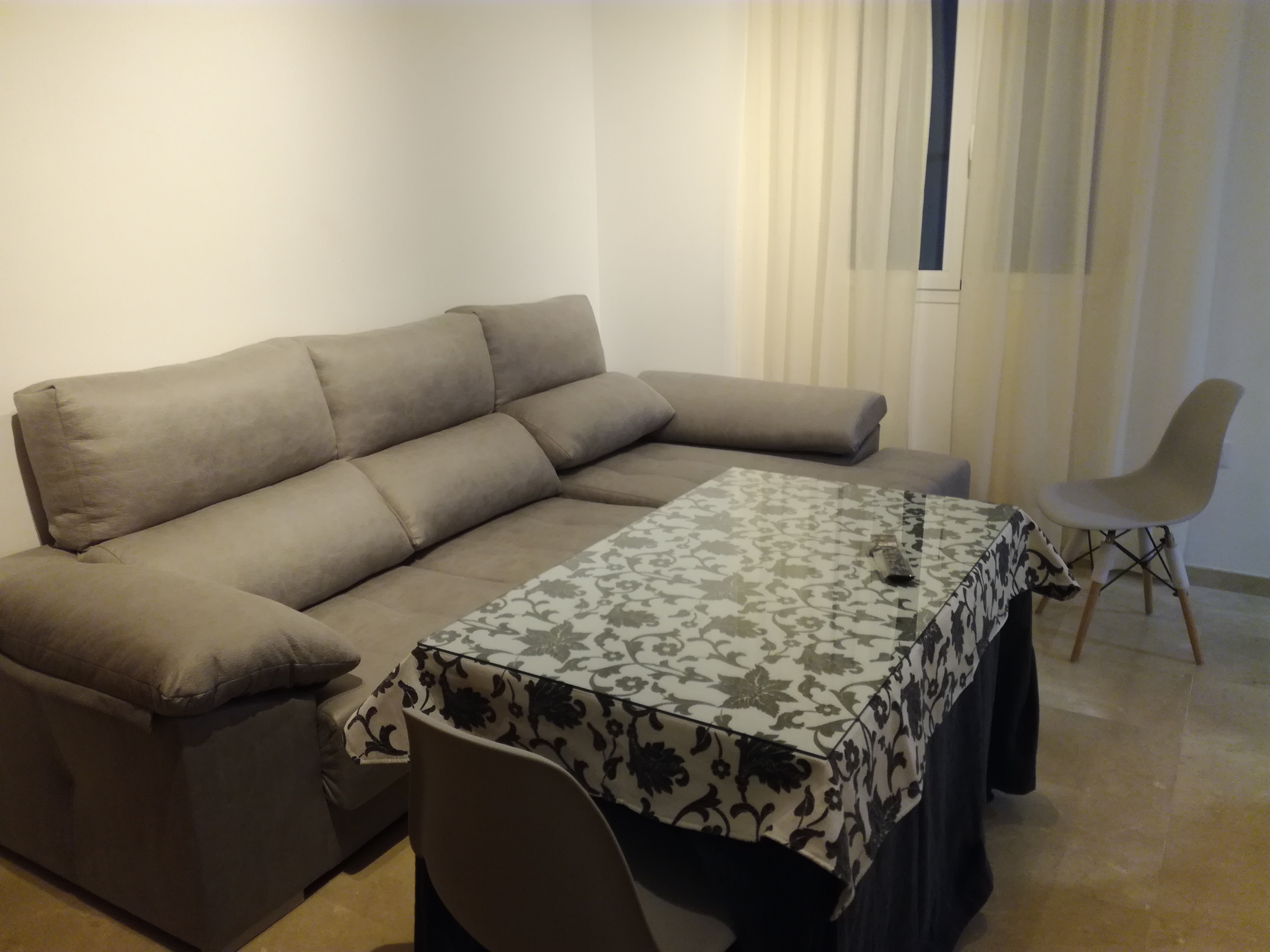 Apartamento de 50 m2, se alquila amueblado, distribuido en salón comedor, cocina americana con barra y taburetes, amplia cocina totalmente equipada con vitrocerámica de inducción y  electrodomésticos (lavadora, lavavajillas, frigorífico) de primeras marcas,  baño con plato de ducha, y un dormitorio con armario empotrado, cama de 150 cm. Con conexión de antena TV y teléfono en todas las habitaciones, aire acondicionado centralizado, placas solares en azotea transitable y termo eléctrico. Carpintería de madera en color cerezo, suelo de mármol crema marfil y ventanas de climalit.