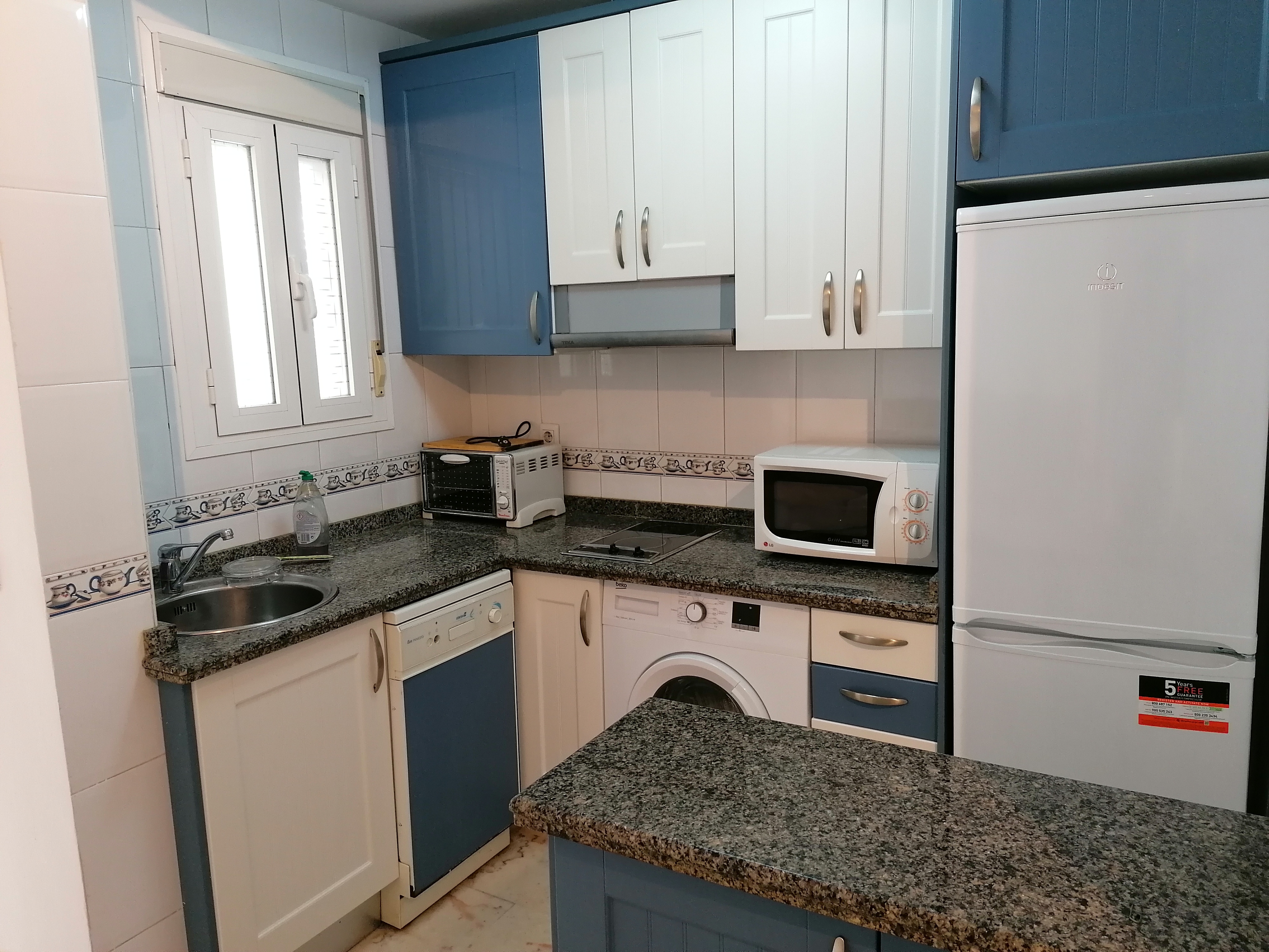 Moderno apartamento con cocina americana completamente equipada (lavadora, lavavajillas, vitrocerámica, horno, microondas ,frigorífico, campana extractora).