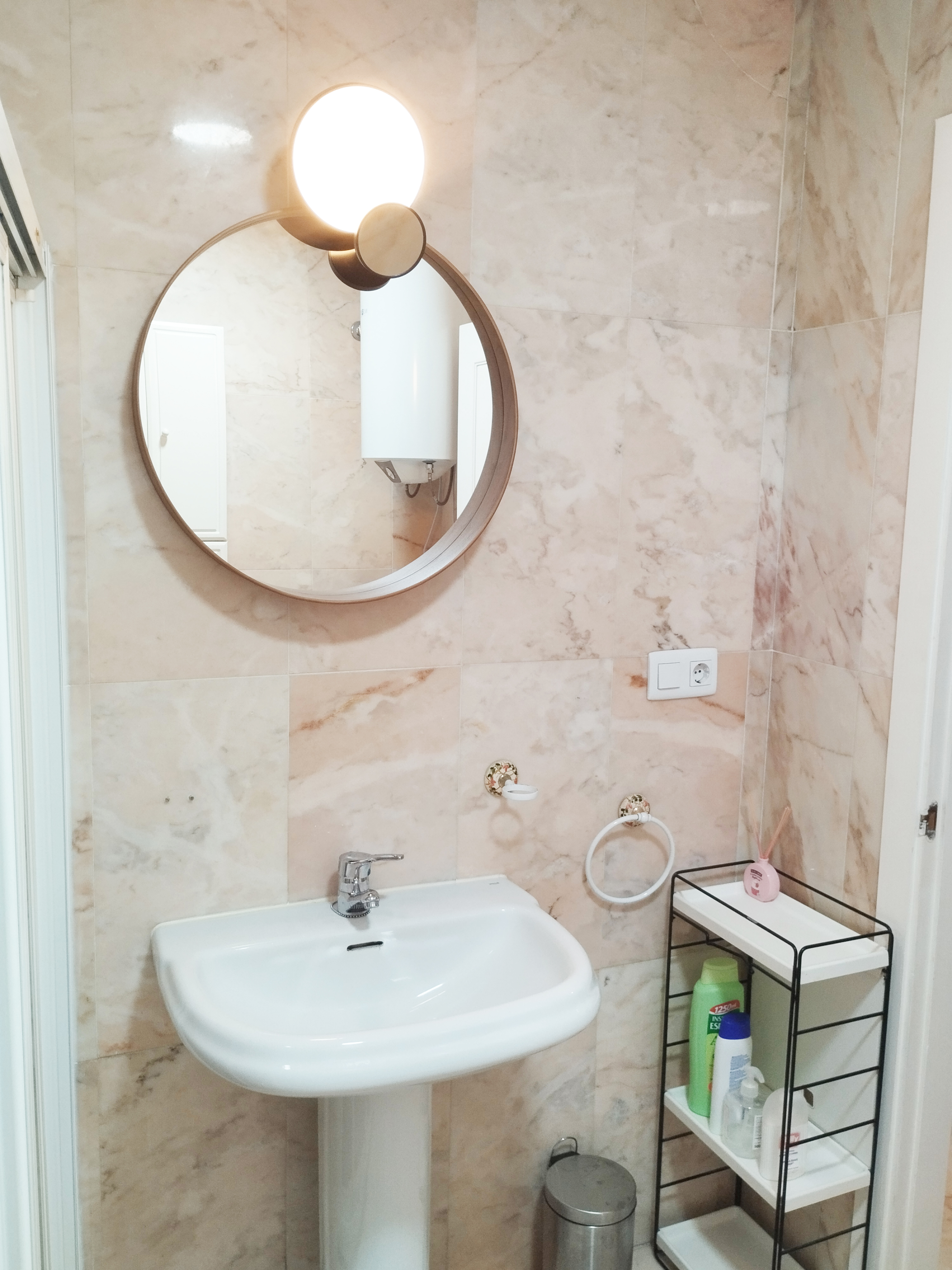 Mármol en suelos y baño, tiene armario empotrado en dormitorio y distribuidor, cama con canapé abatible para almacenaje. Termo eléctrico, aire acondicionado centralizado y balcón.