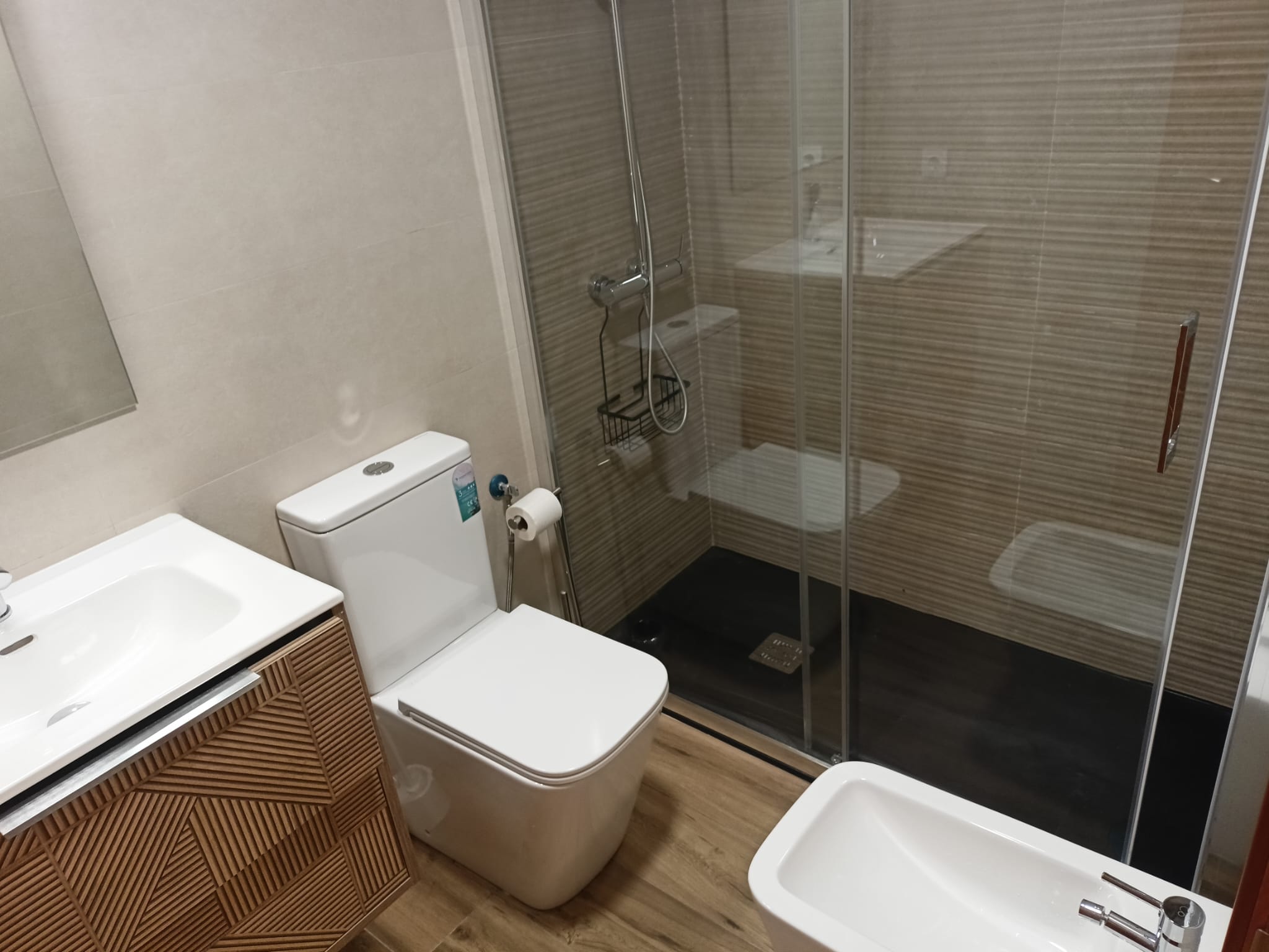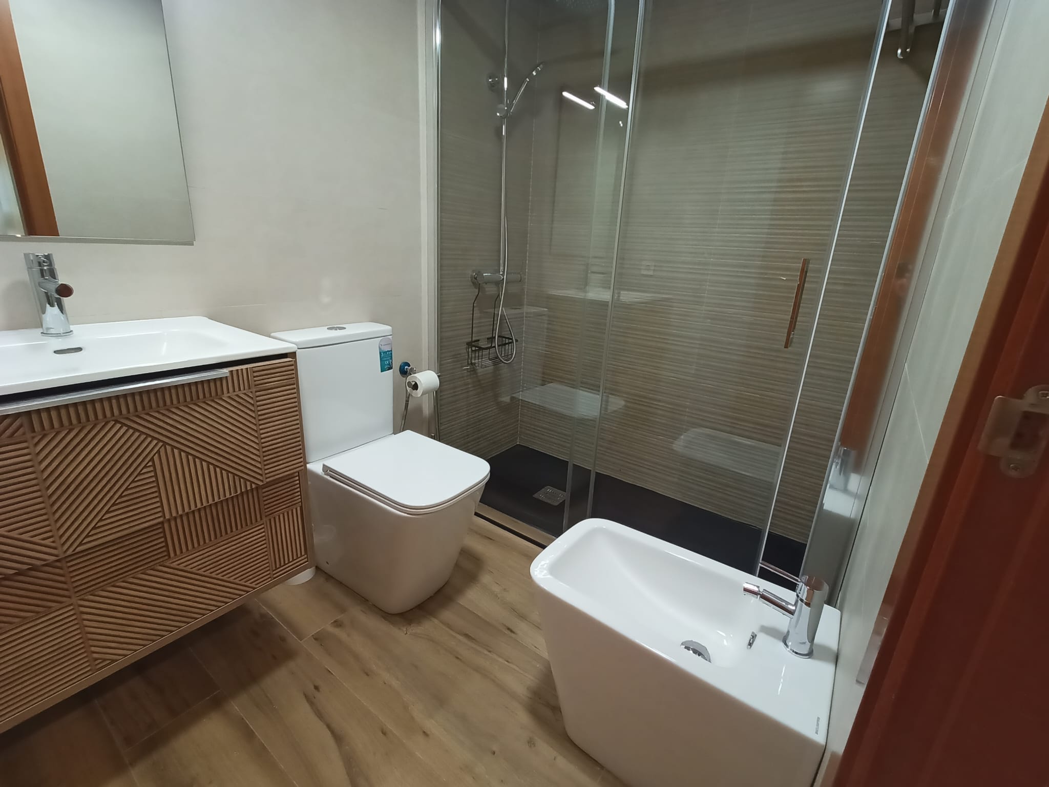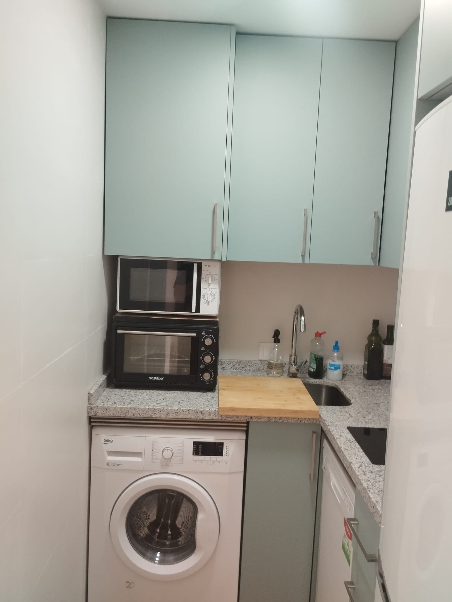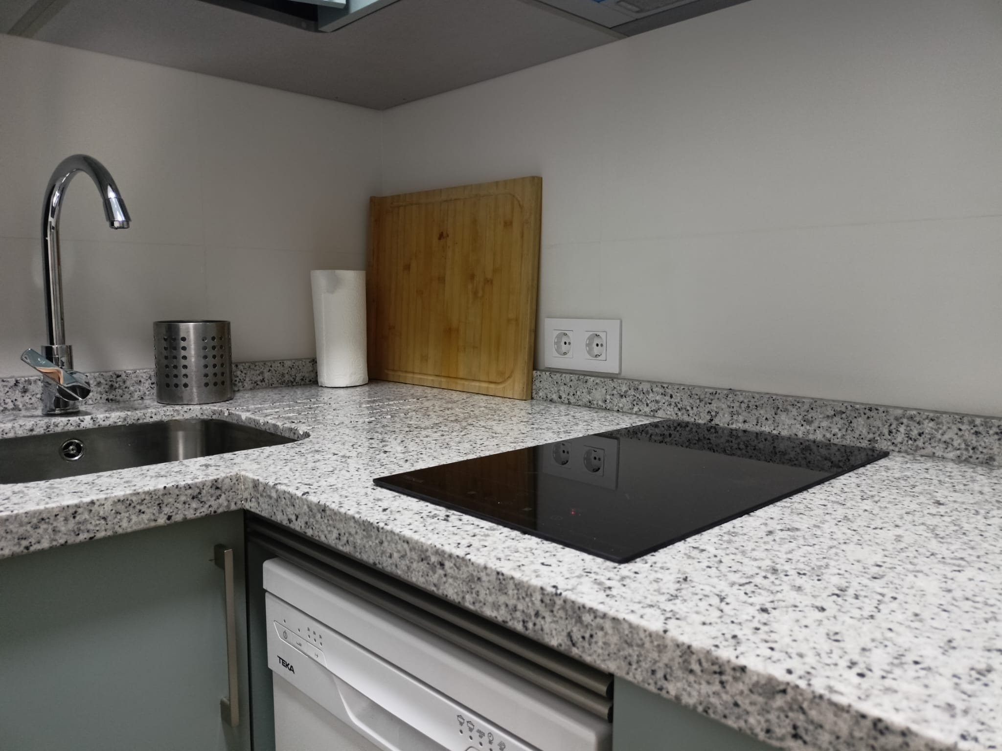 Apartamento de 50 m2 en primera planta con ascensor, muy luminoso, bien distribuido en salón comedor exterior, cocina, vitrocerámica, lavavajillas, lavadora, frigorífico, un cuarto de baño con bañera, dormitorio con armario empotrado, cama de 135 cm, aire acondicionado centralizado y termo eléctrico. Carpintería de madera en color cerezo, suelo de mármol y ventanas de climalit.