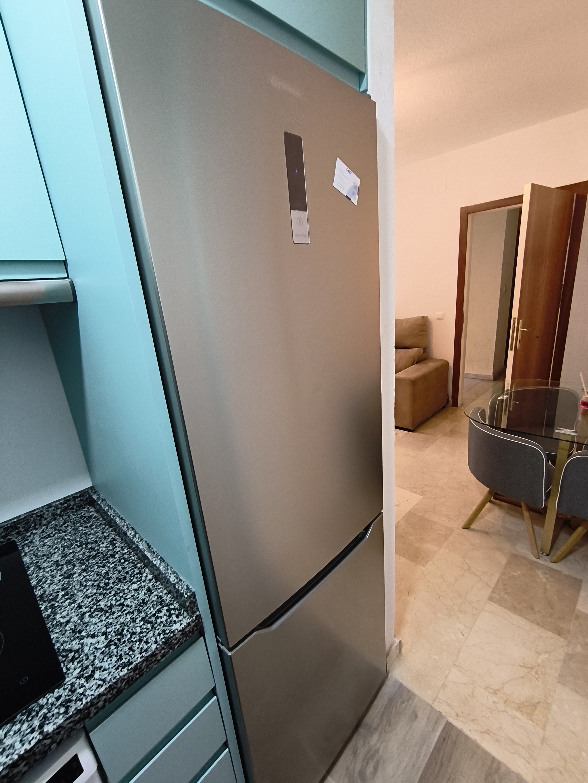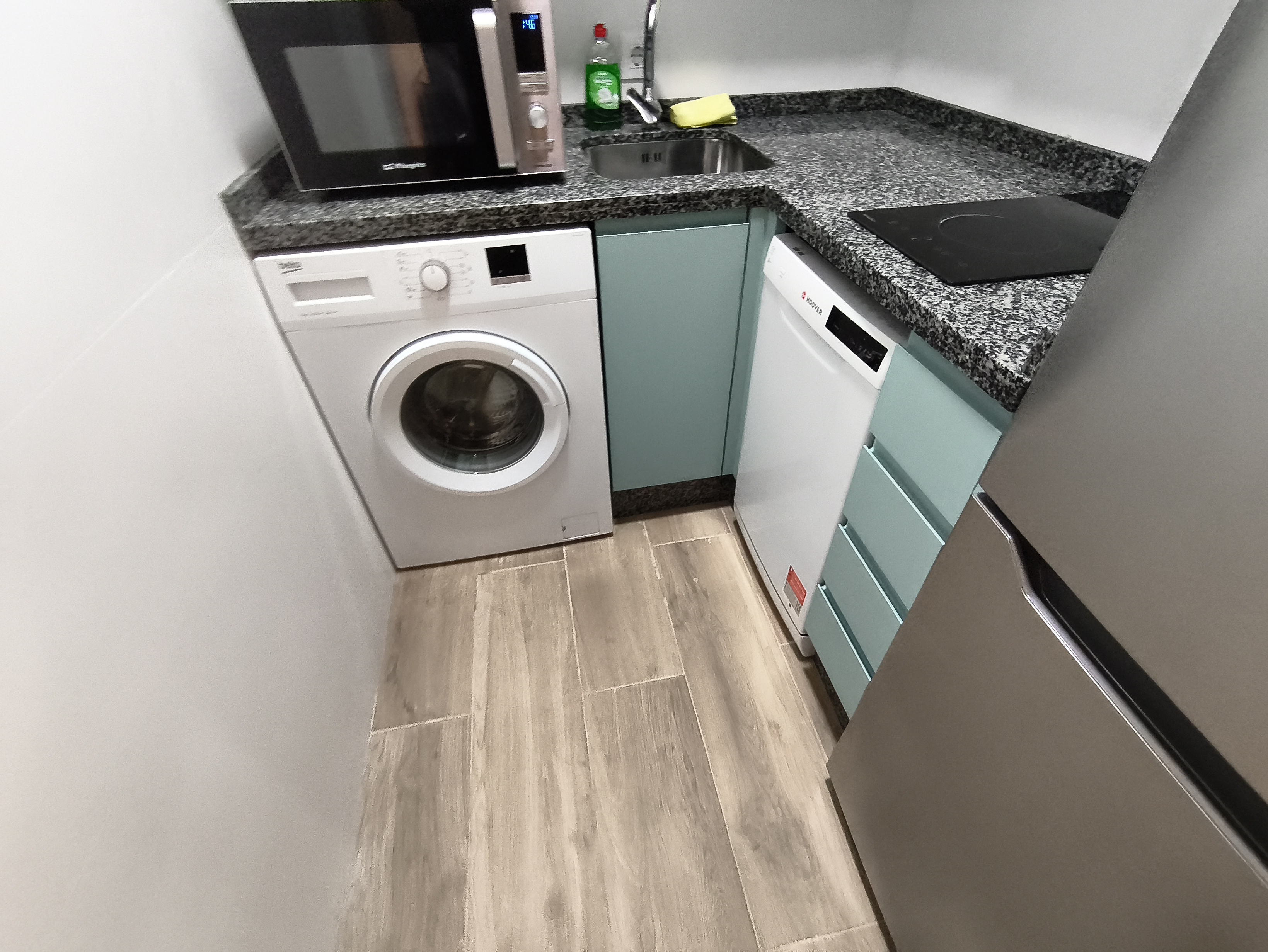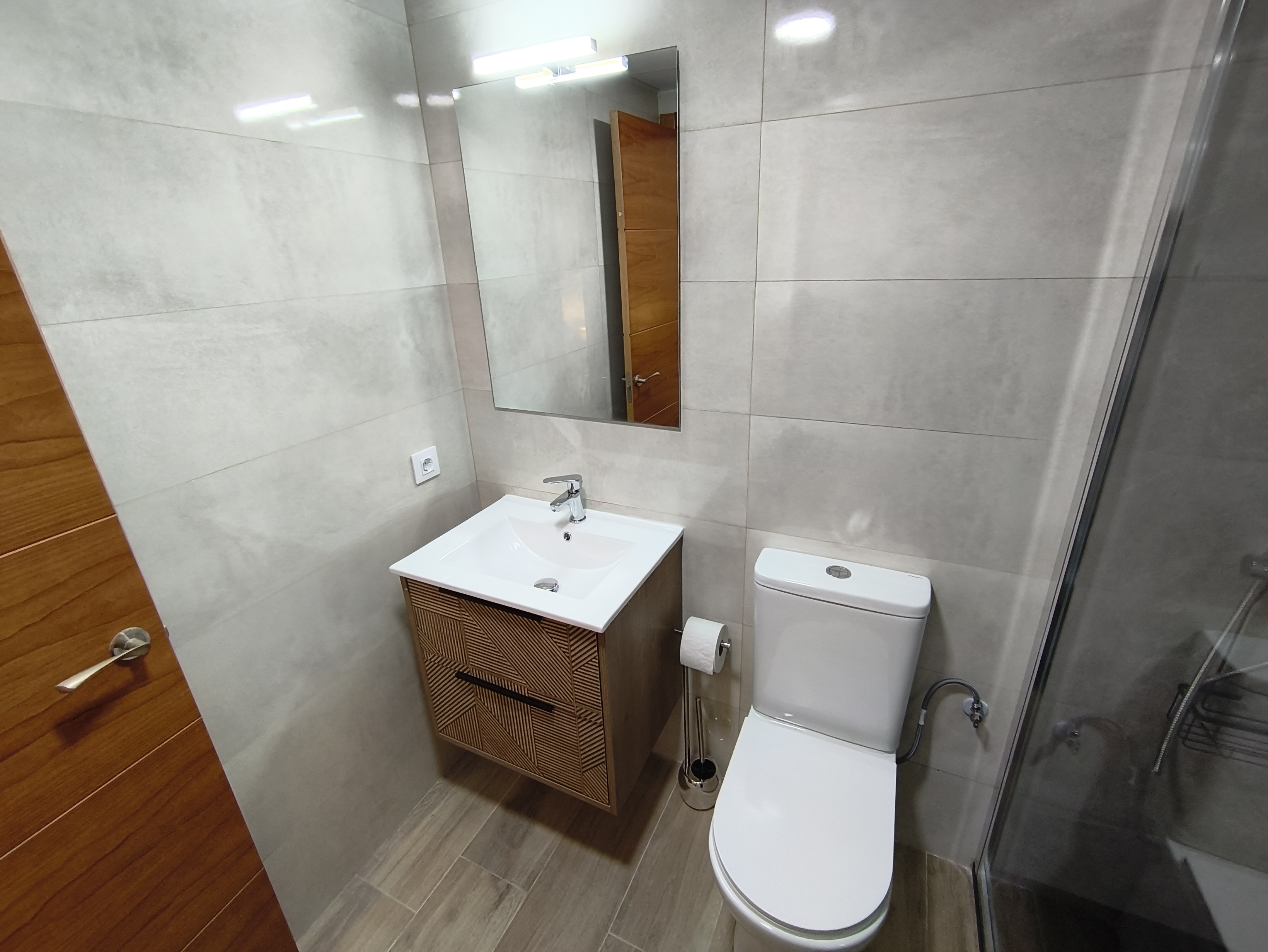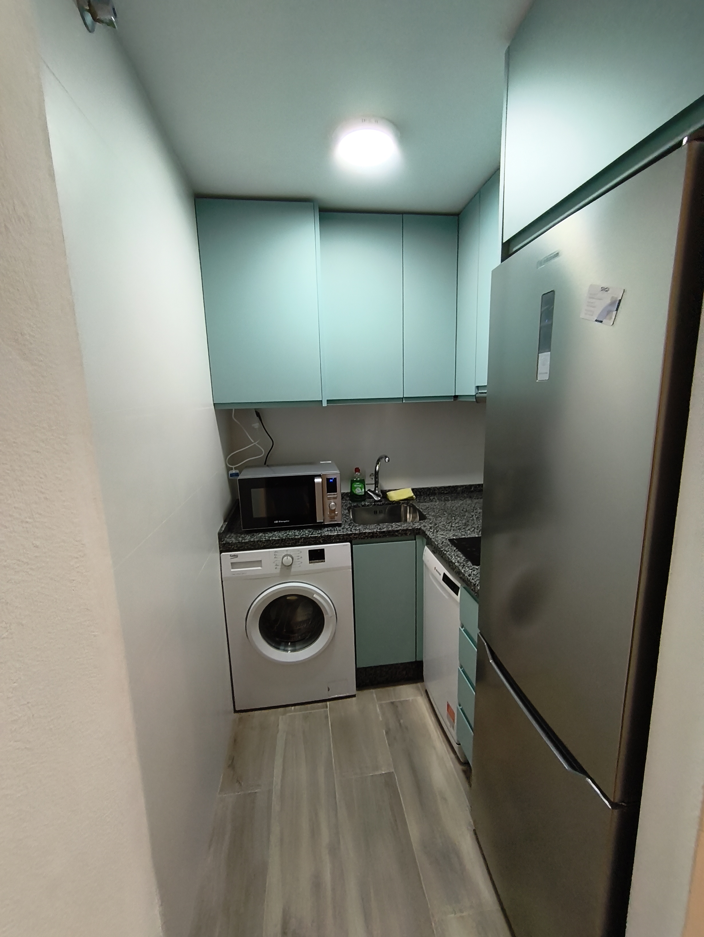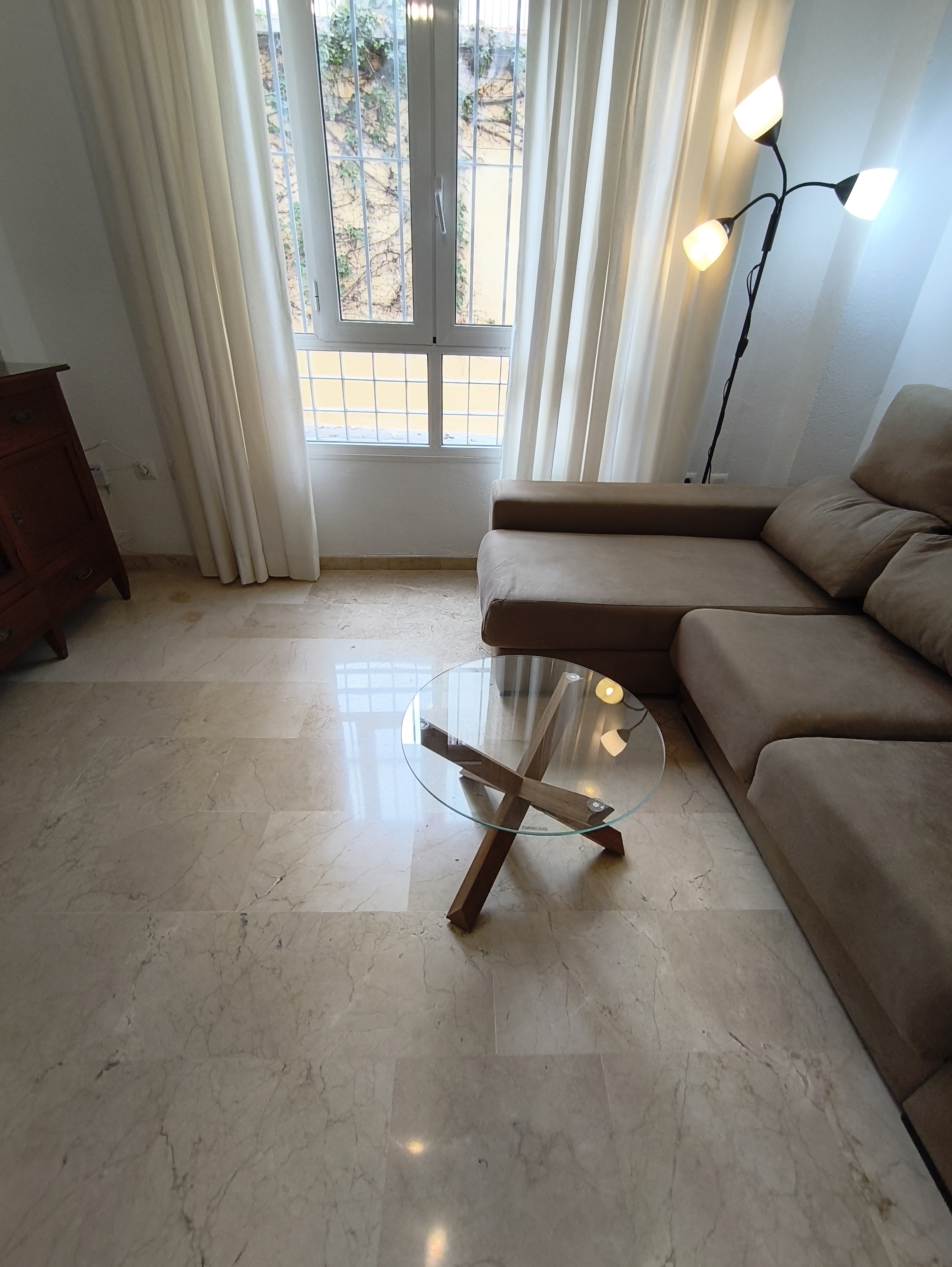 Apartamento de 50 m2 en planta baja, muy luminoso, bien distribuido en salón comedor exterior, cocina, vitrocerámica, lavavajillas, lavadora, frigorífico, un cuarto de baño con bañera, dormitorio con armario empotrado, cama de 135 cm, aire acondicionado centralizado y termo eléctrico. Carpintería de madera en color cerezo, suelo de mármol y ventanas de climalit.