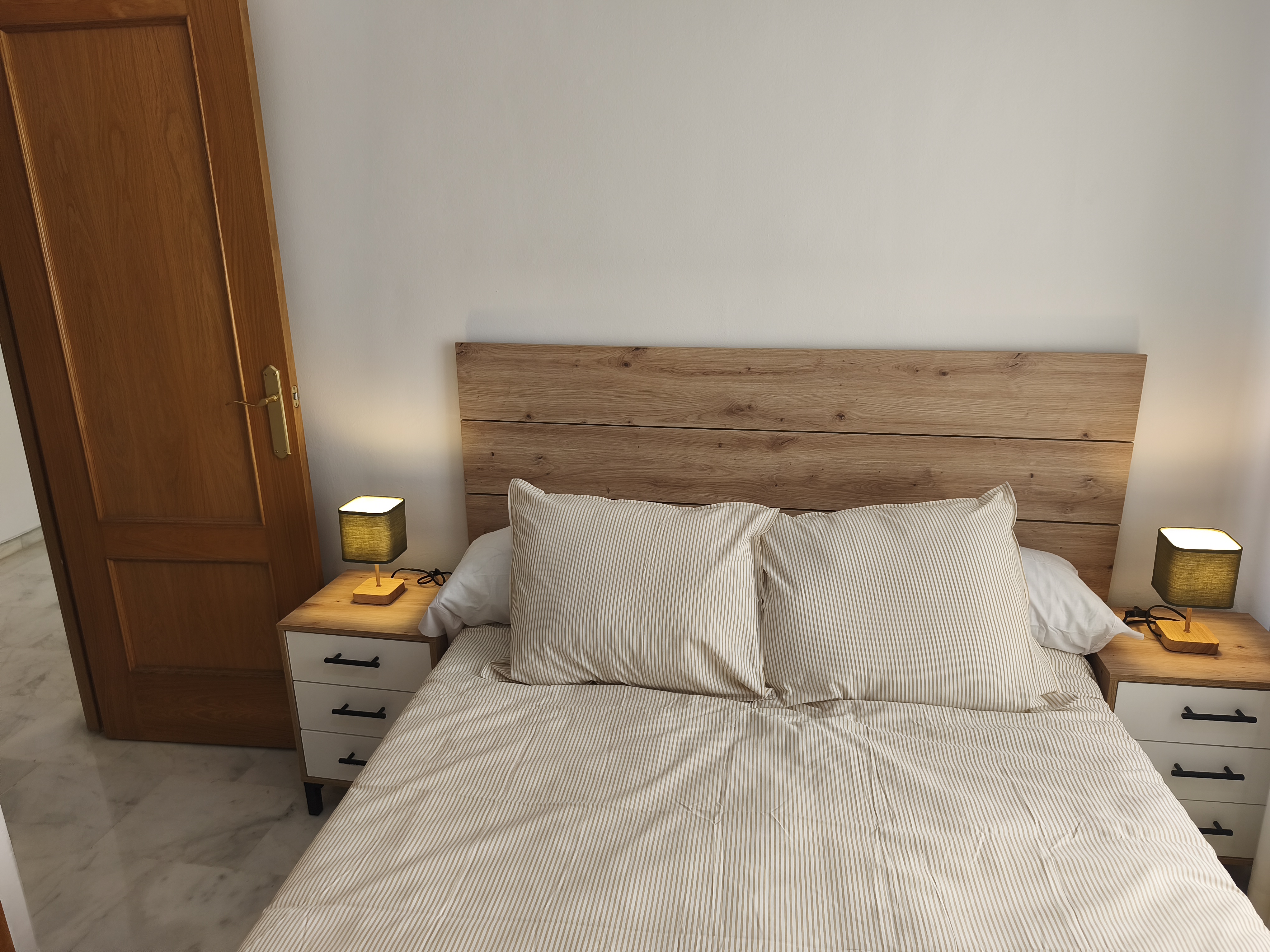 Piso de dos dormitorios y 65 m2 con calidades de primera, suelos de mármol , cocina completamente equipada y salón, baño y dos dormitorios con armarios empotrados.