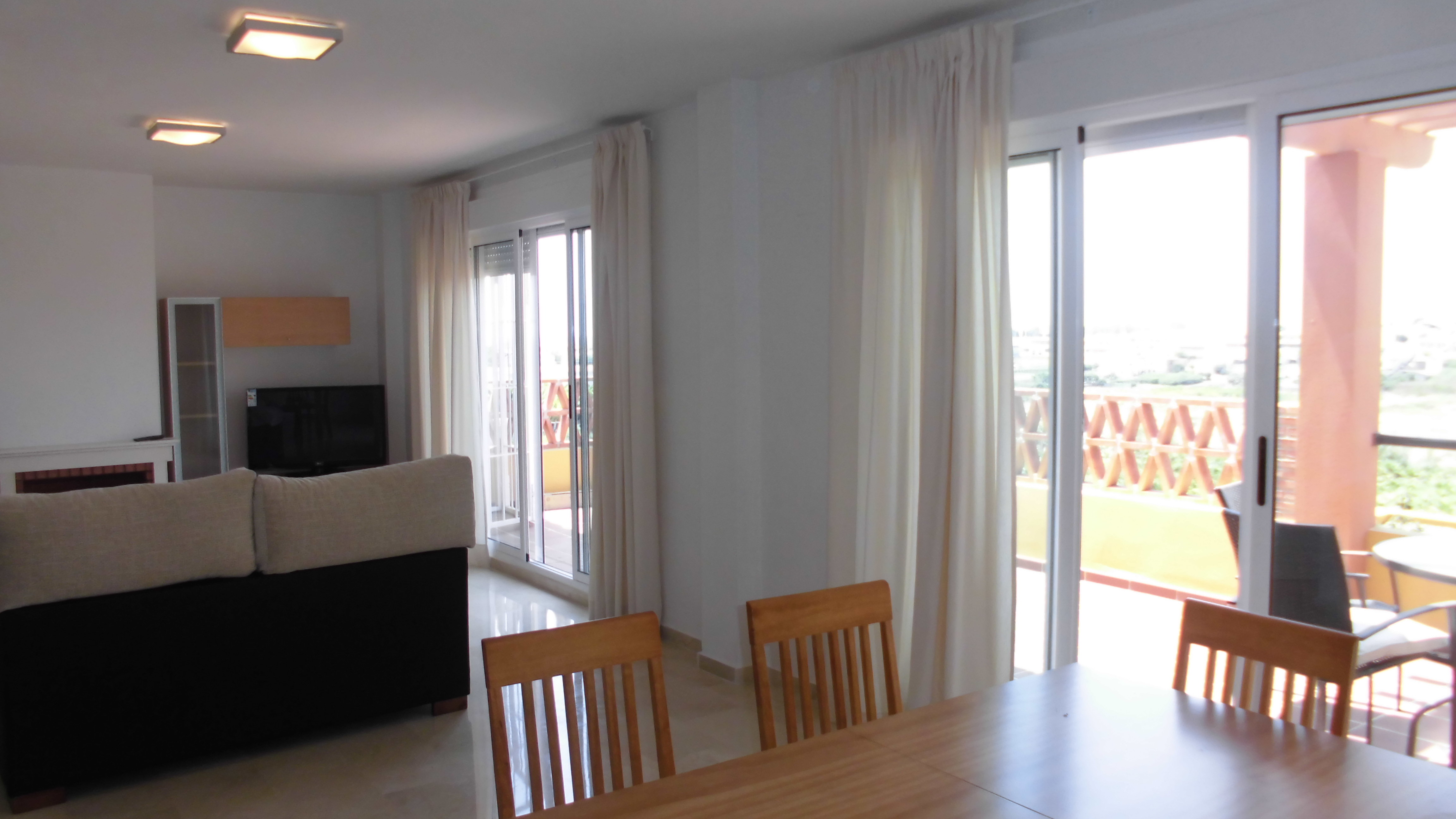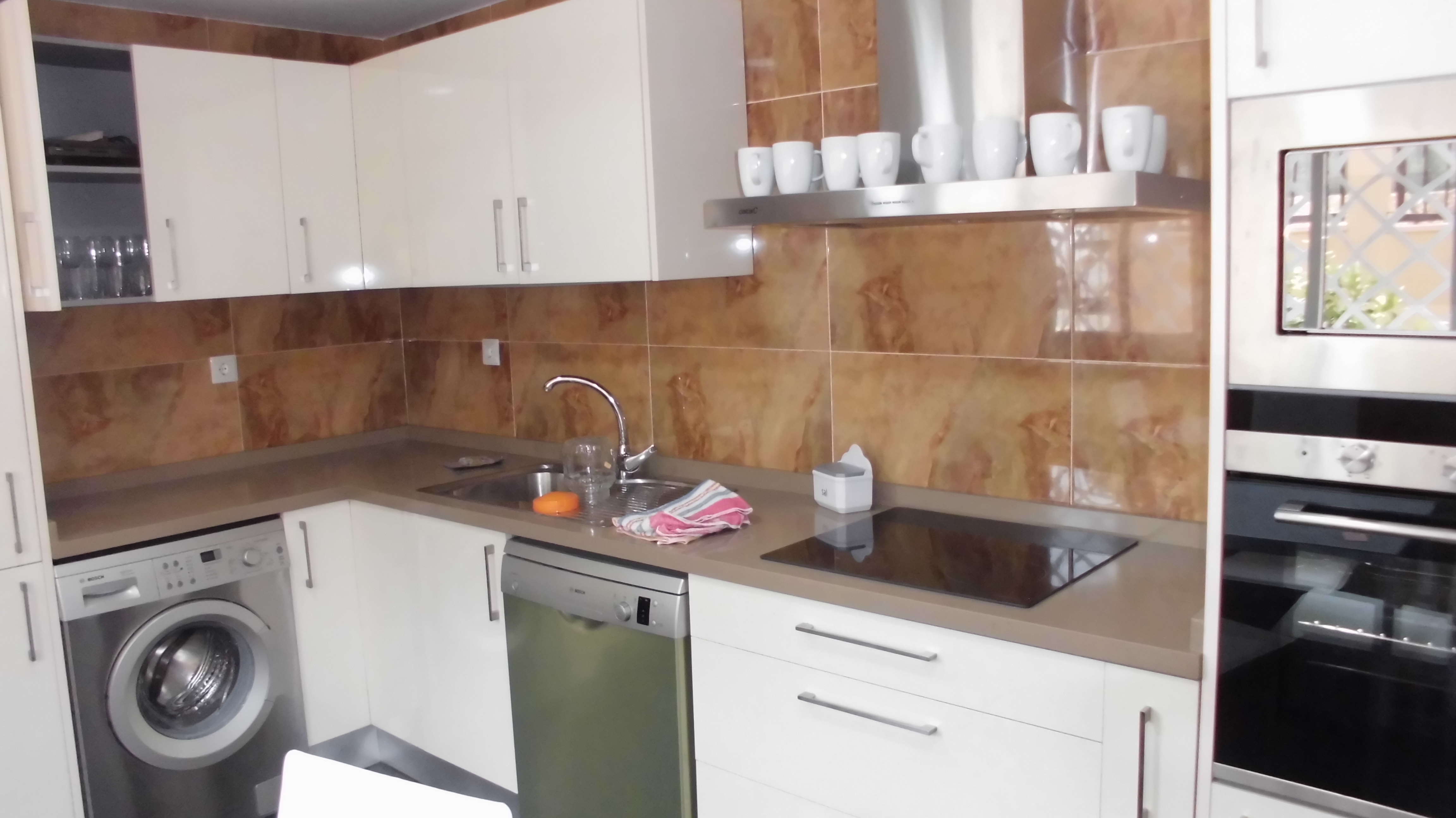 Gran terraza con vistas panorámicas, cocina completamente equipada con lavadora, lavavajillas, frigorífico, horno, microondas y vitrocerámica.