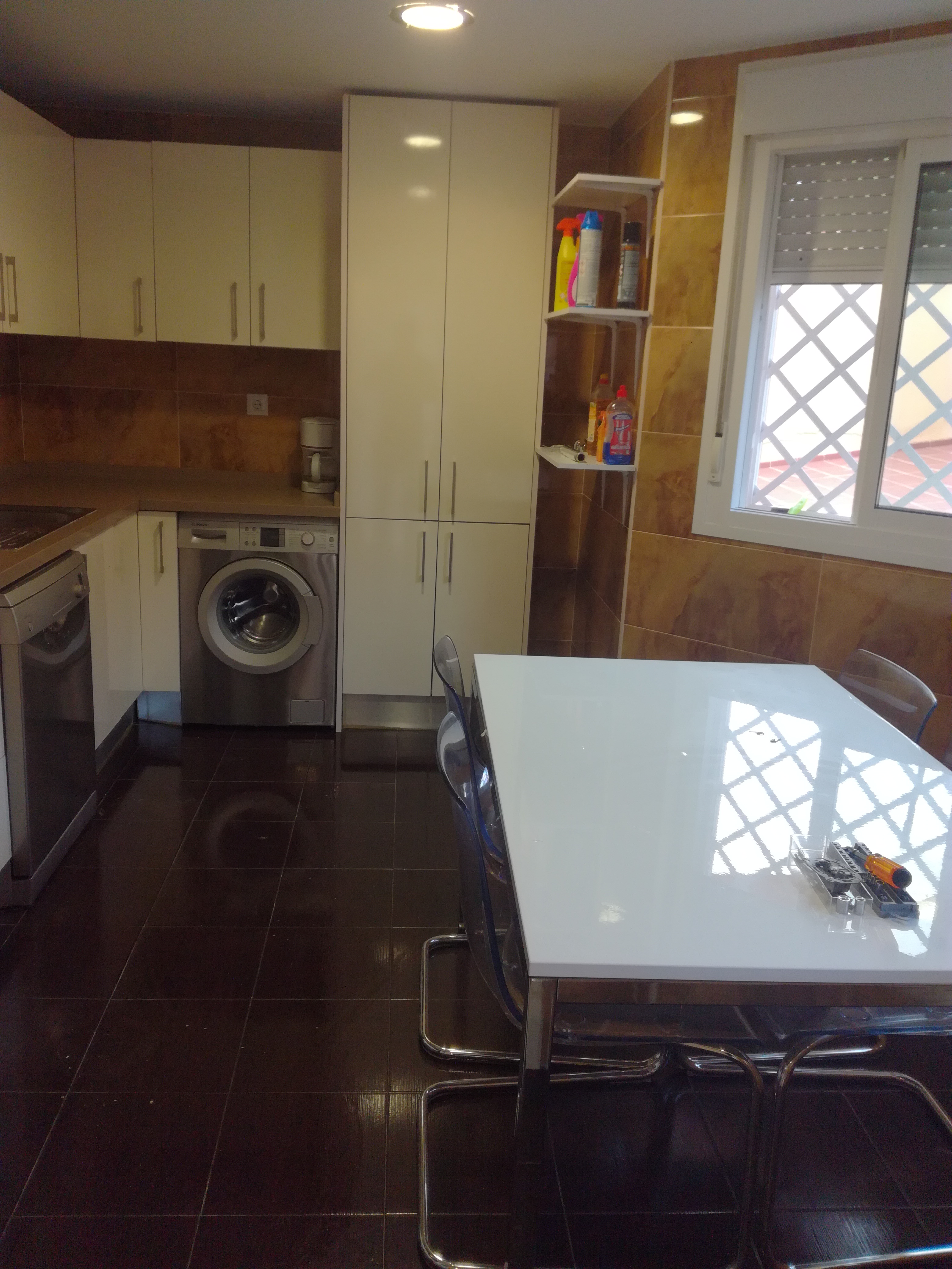 Gran terraza con vistas panorámicas, cocina completamente equipada con lavadora, lavavajillas, frigorífico, horno, microondas y vitrocerámica.